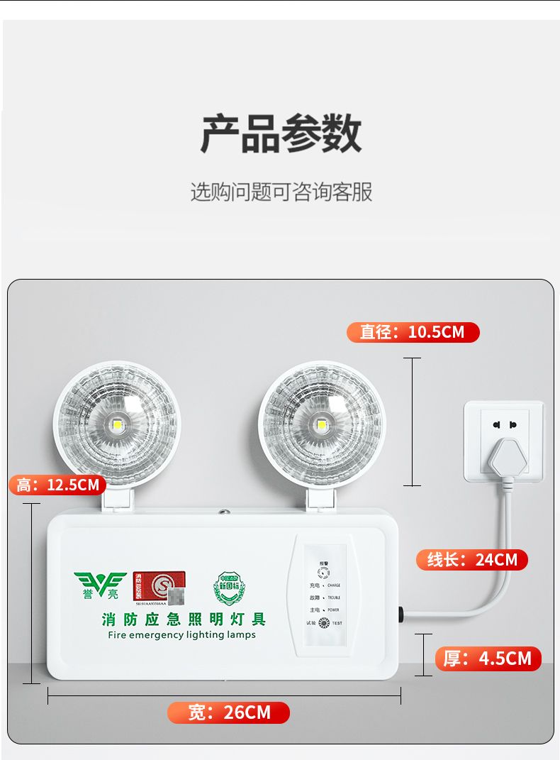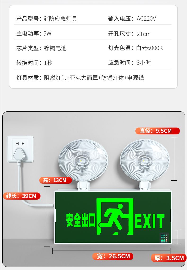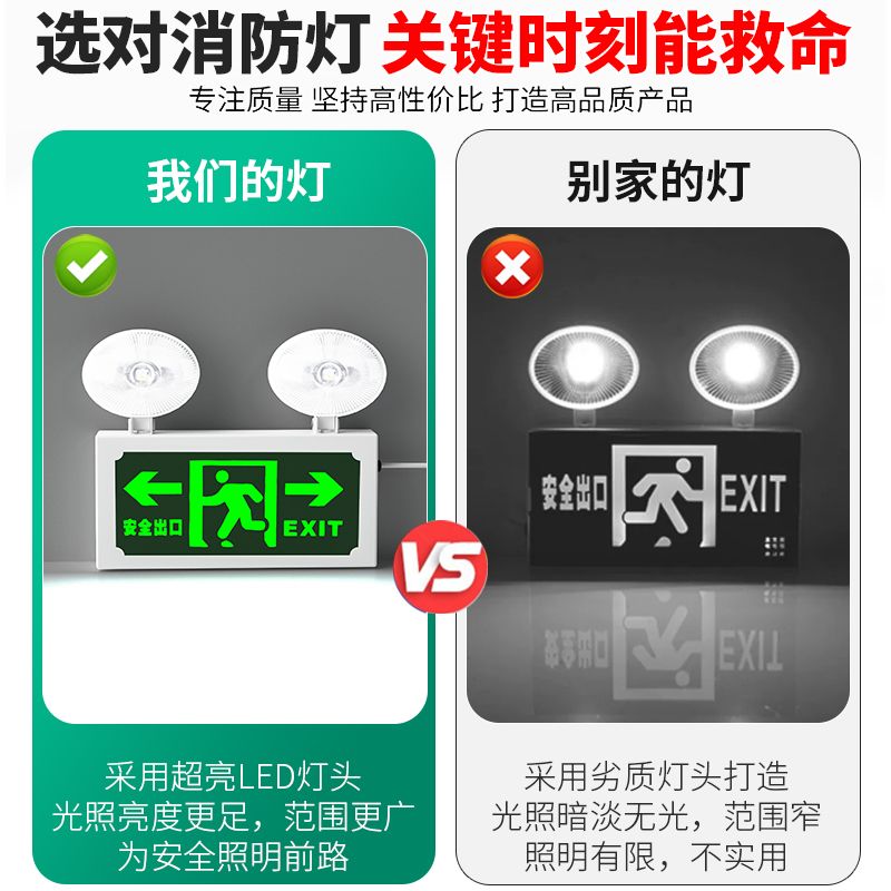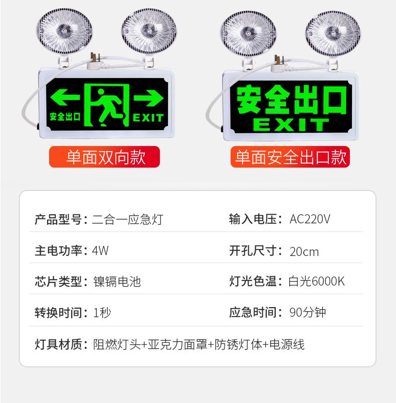 消防多功能应急灯新国标双头LED照明安全出口指示灯疏散一体灯