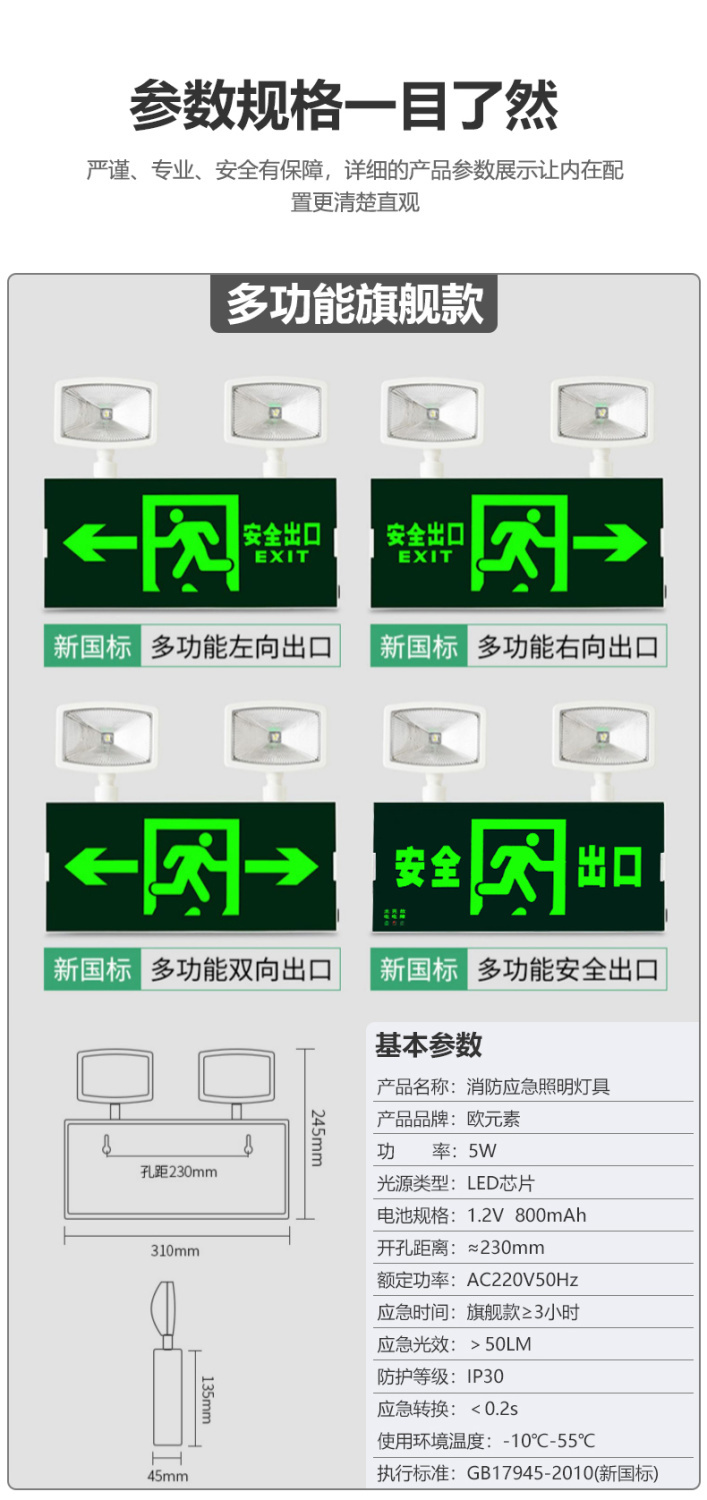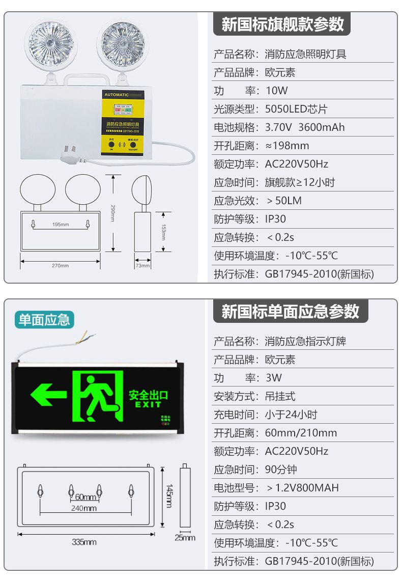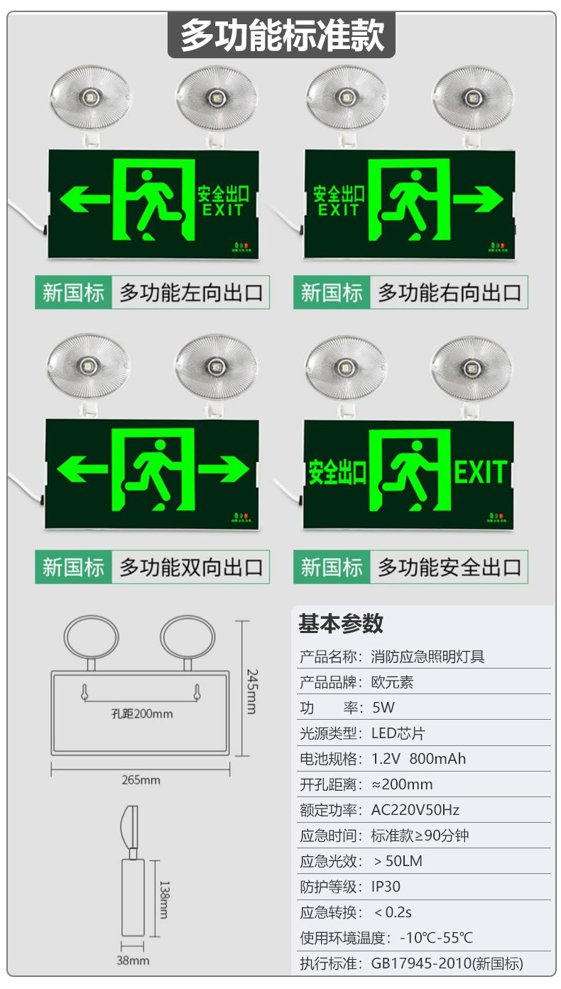 欧元素新国标LED消防应急照明灯充电式安全出口二合一疏散指示牌