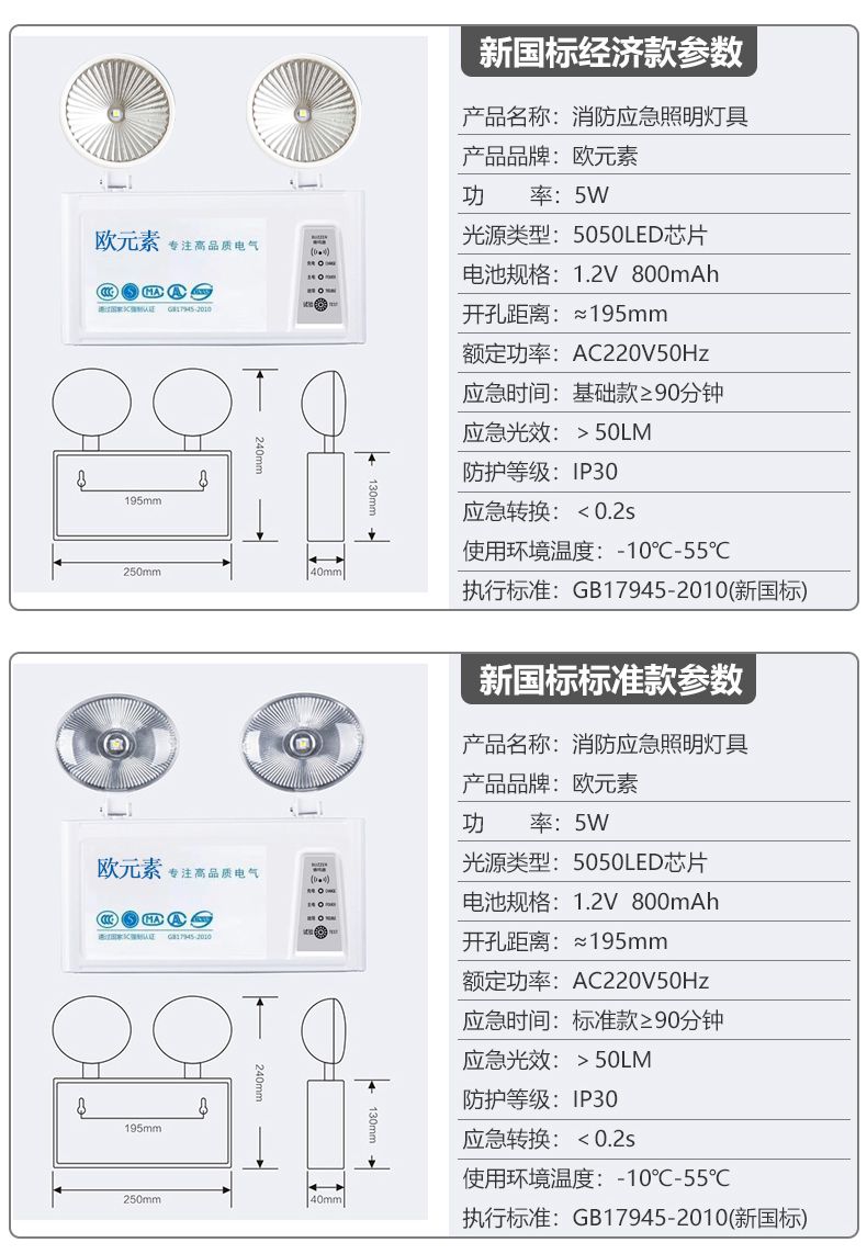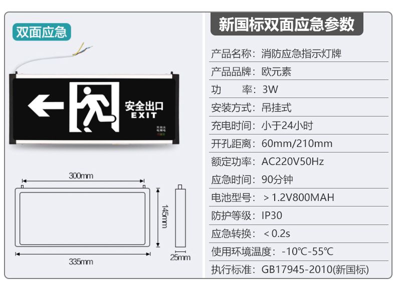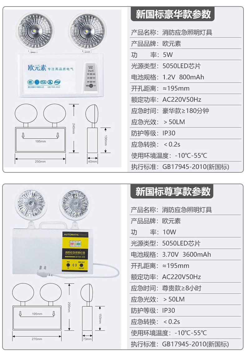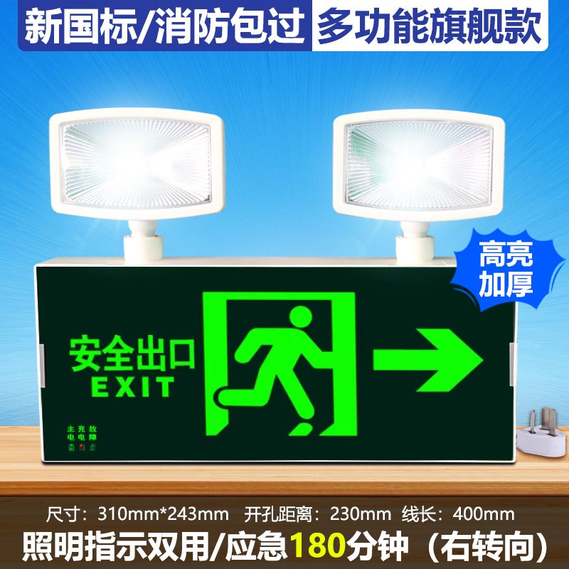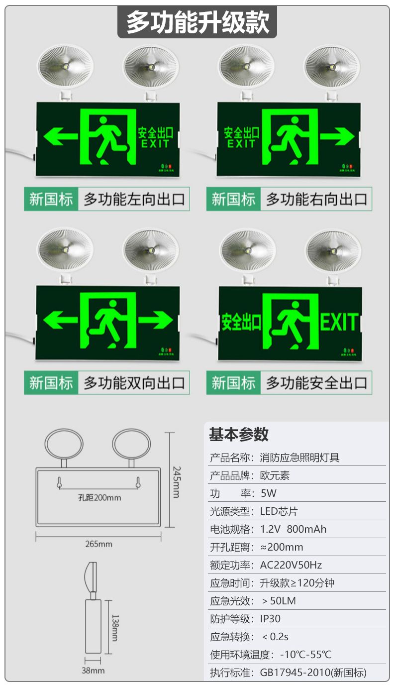 欧元素新国标LED消防应急照明灯充电式安全出口二合一疏散指示牌