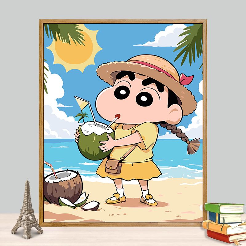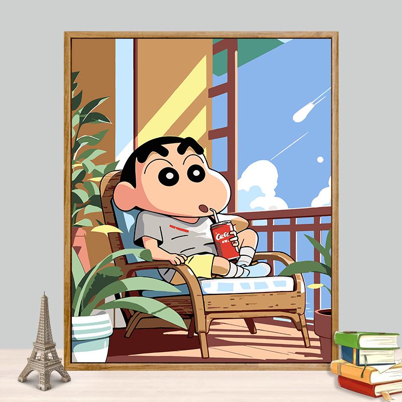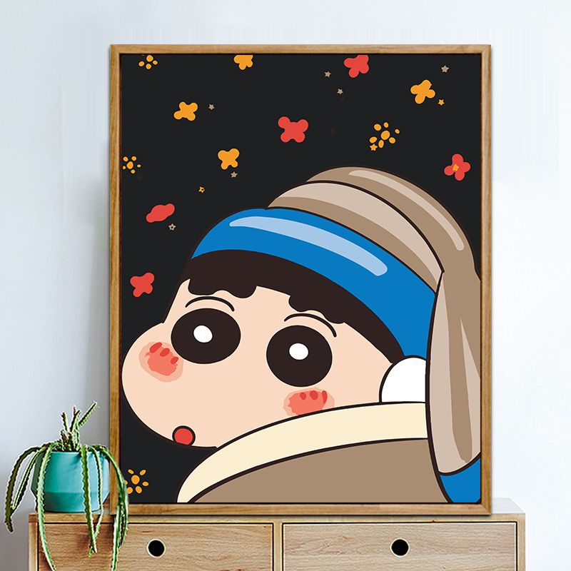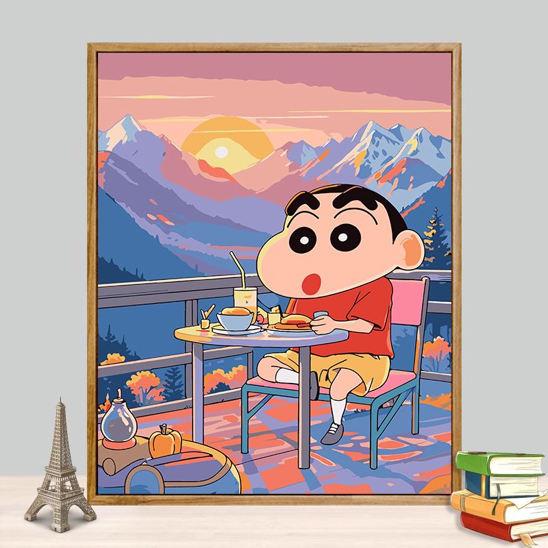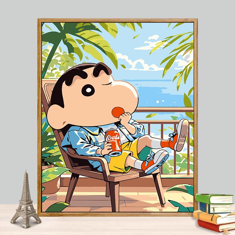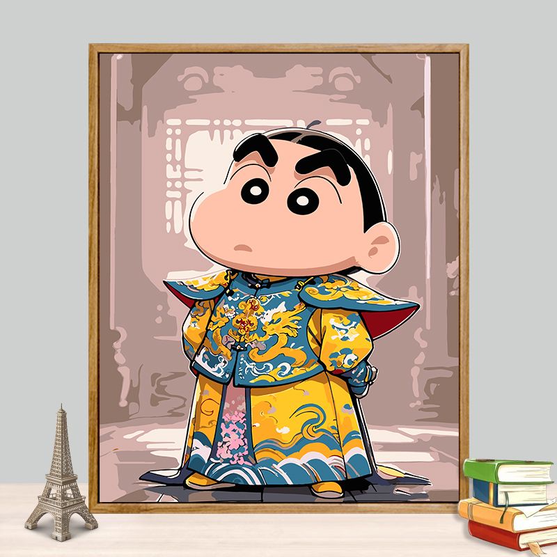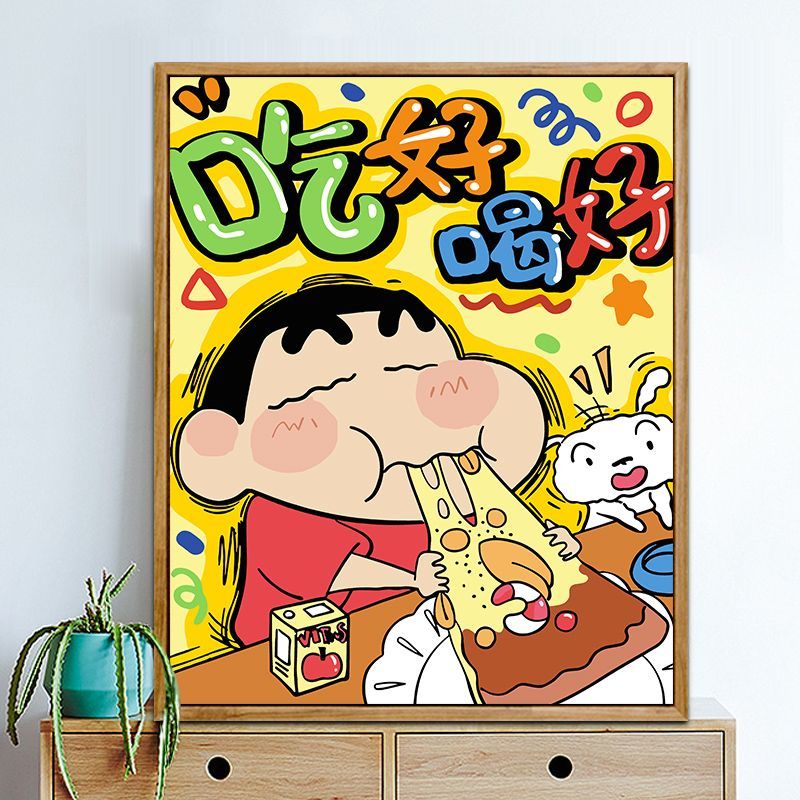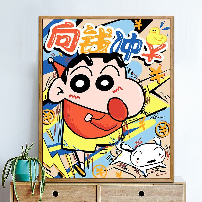 新款数字油彩画diy蜡笔小新卡通填色可爱手工减压涂色填充装饰画