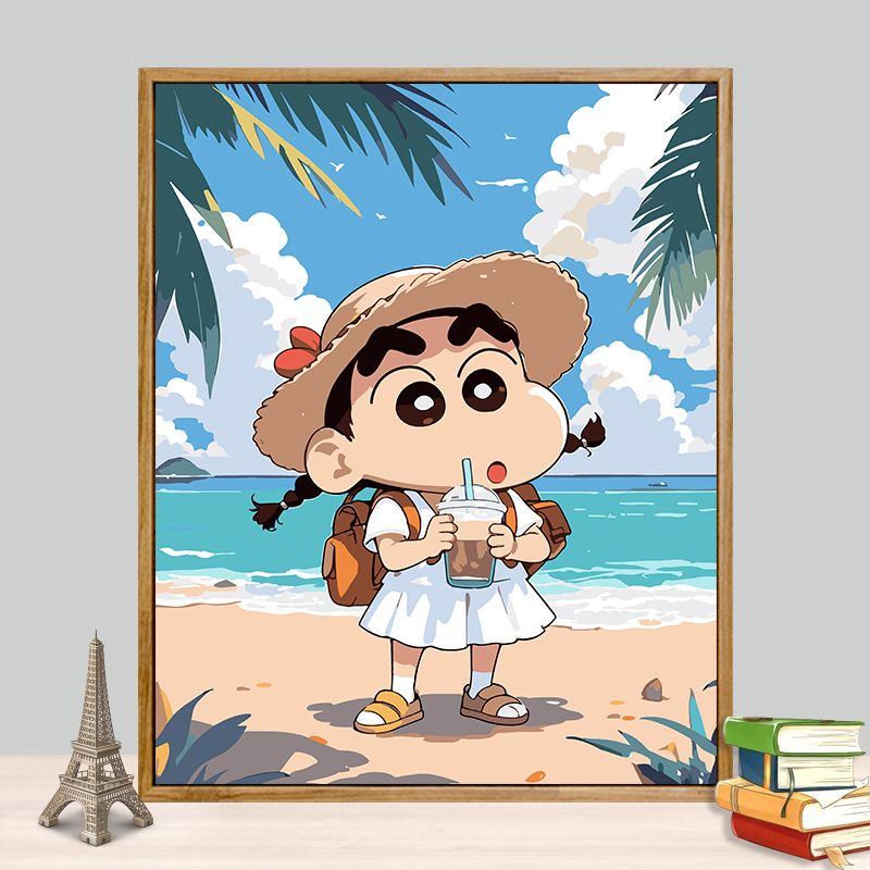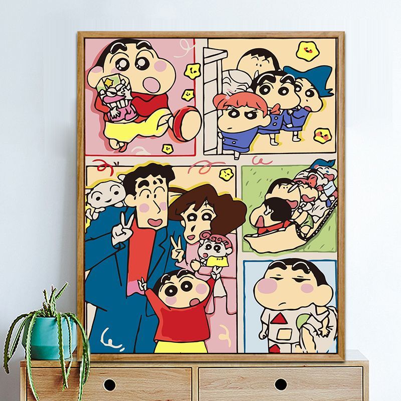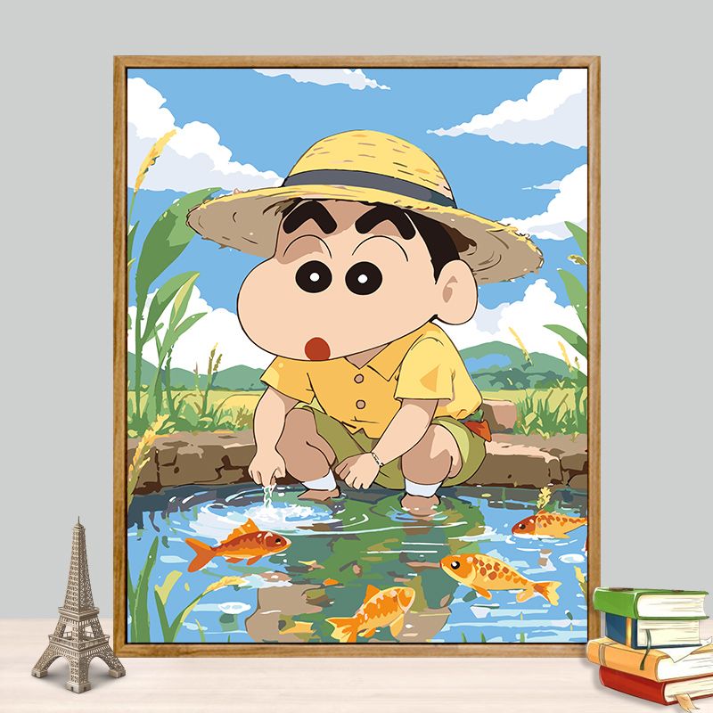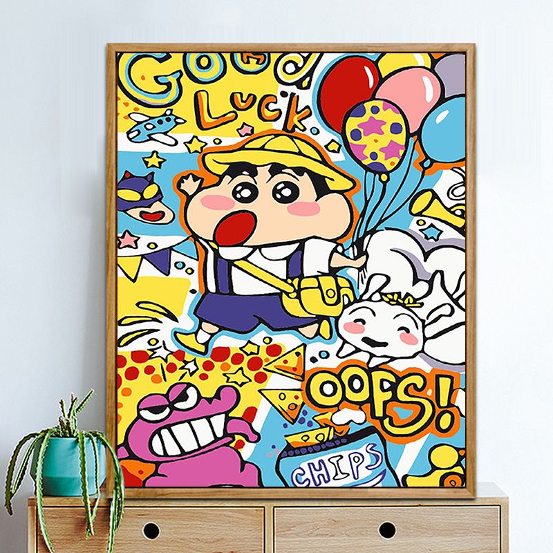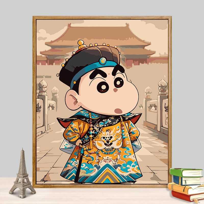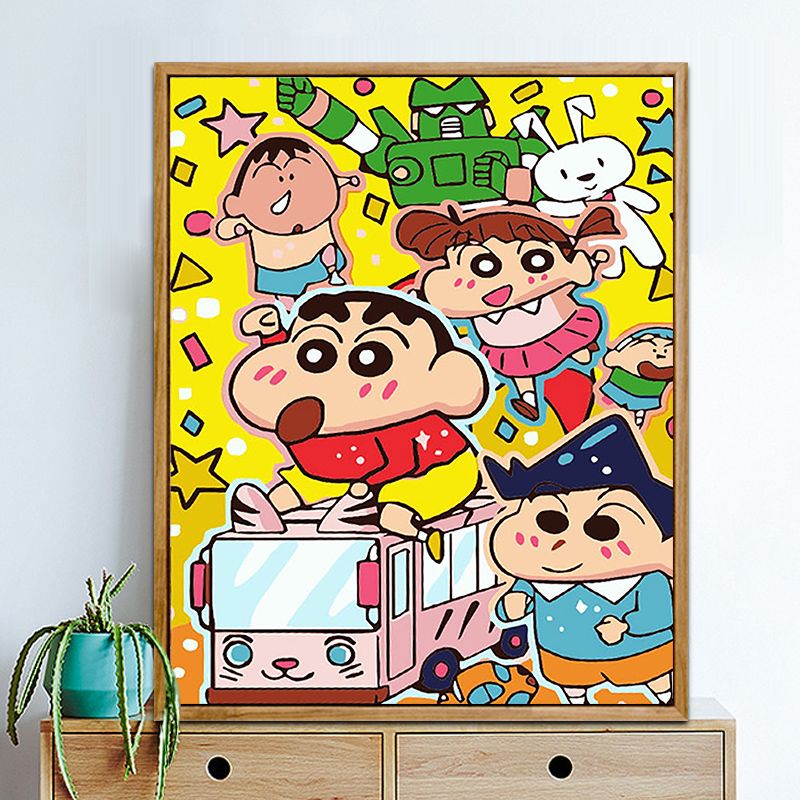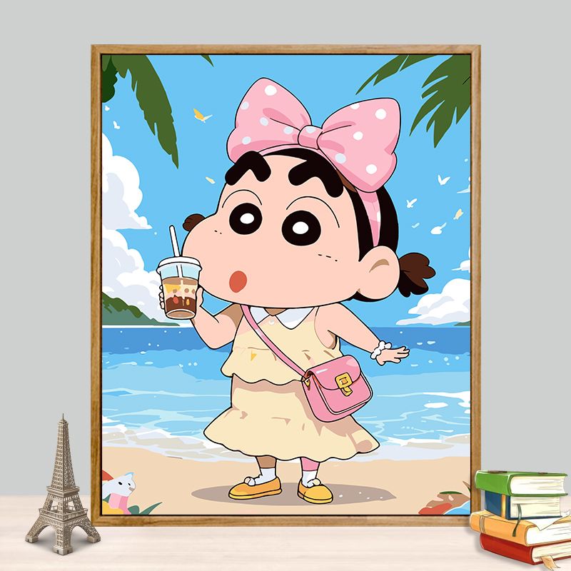 新款数字油彩画diy蜡笔小新卡通填色可爱手工减压涂色填充装饰画