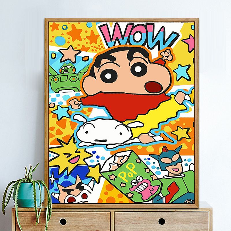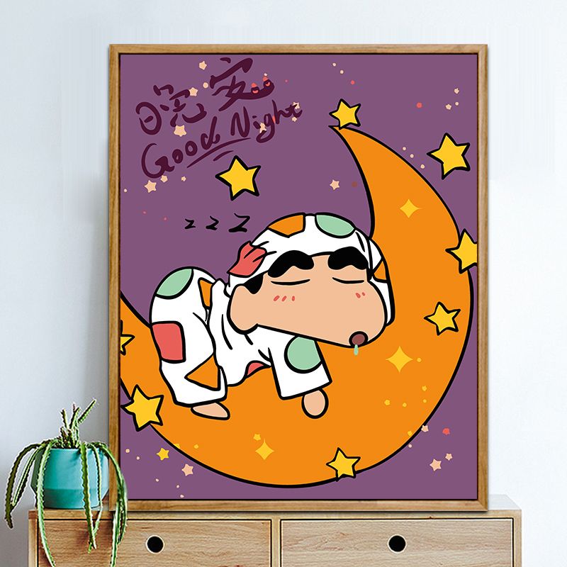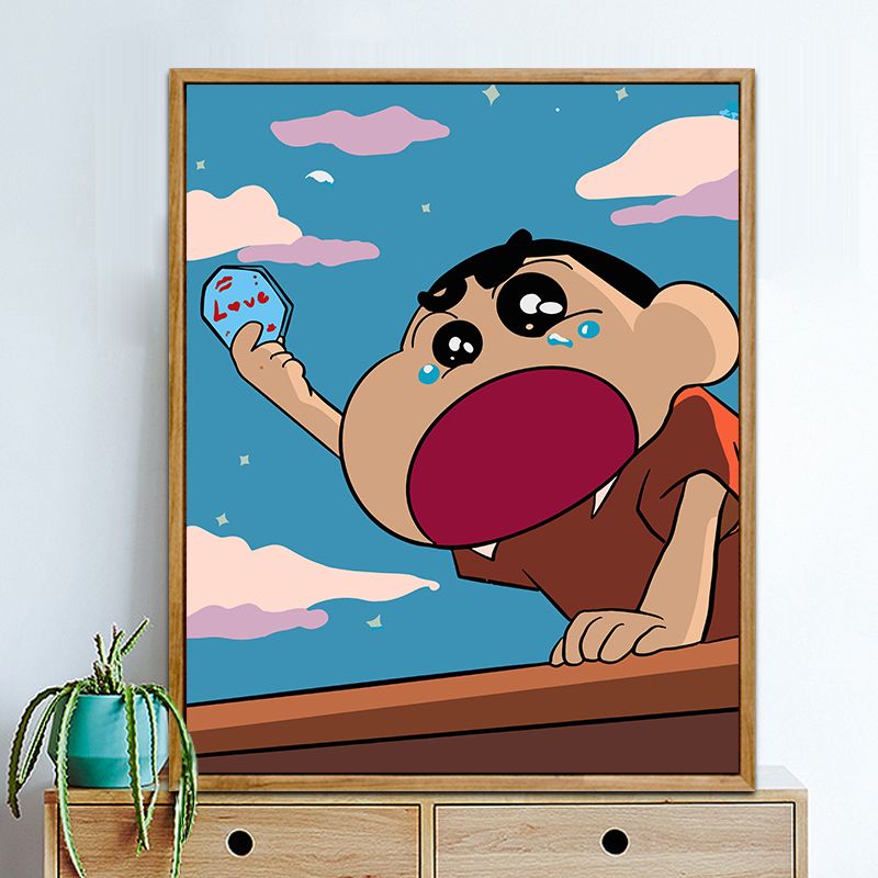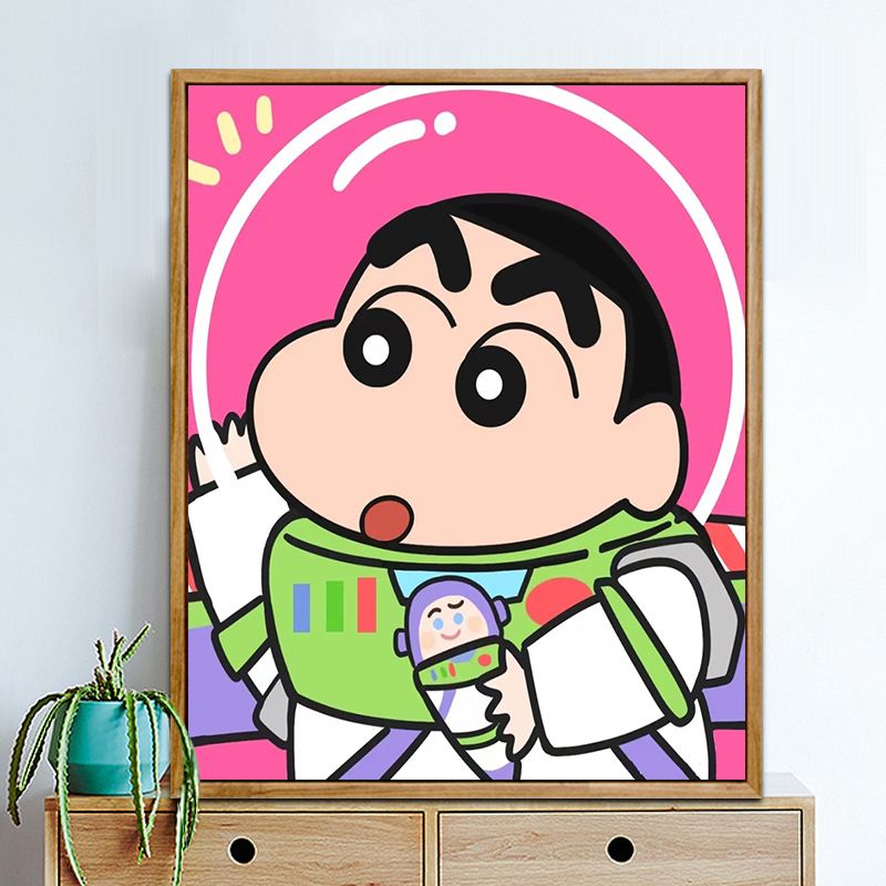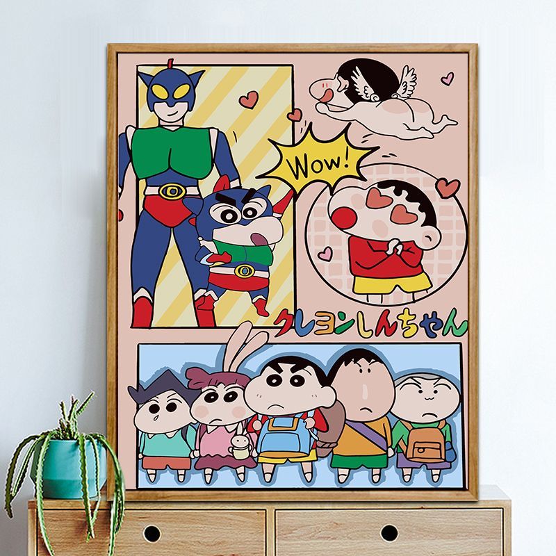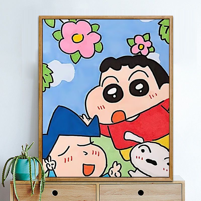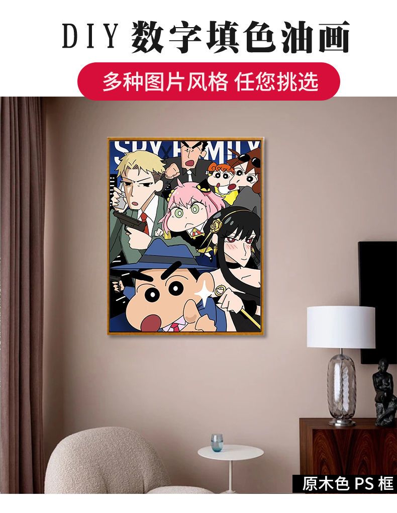 新款数字油彩画diy蜡笔小新卡通填色可爱手工减压涂色填充装饰画