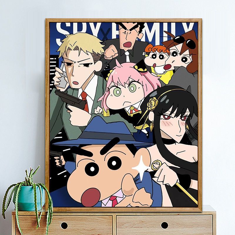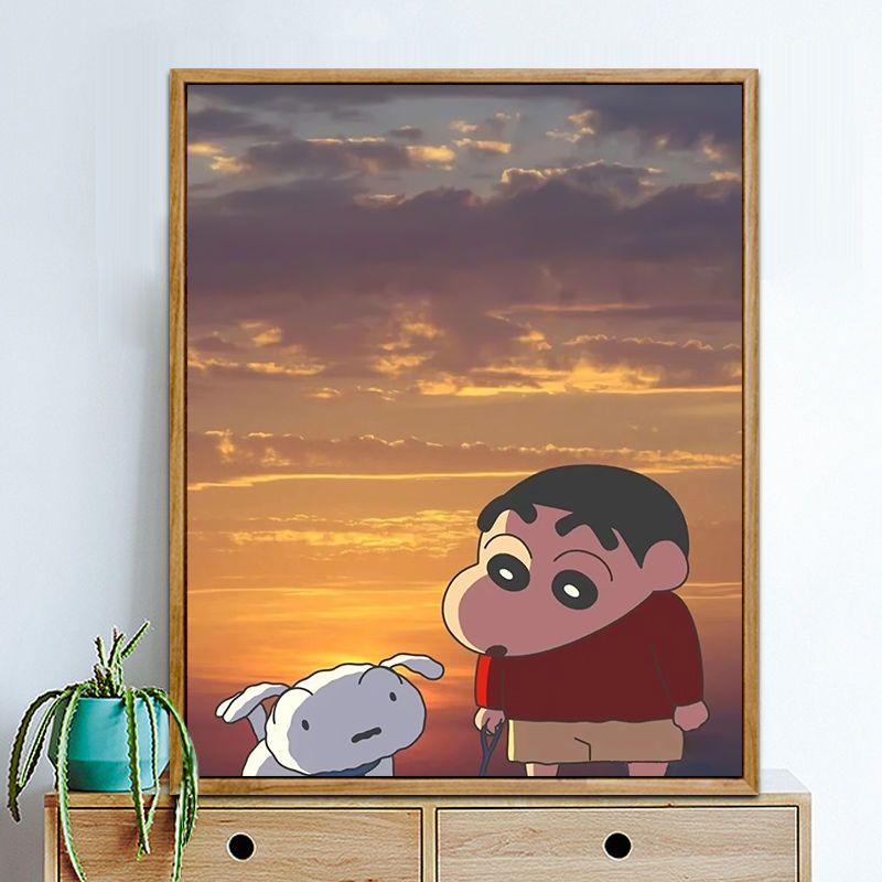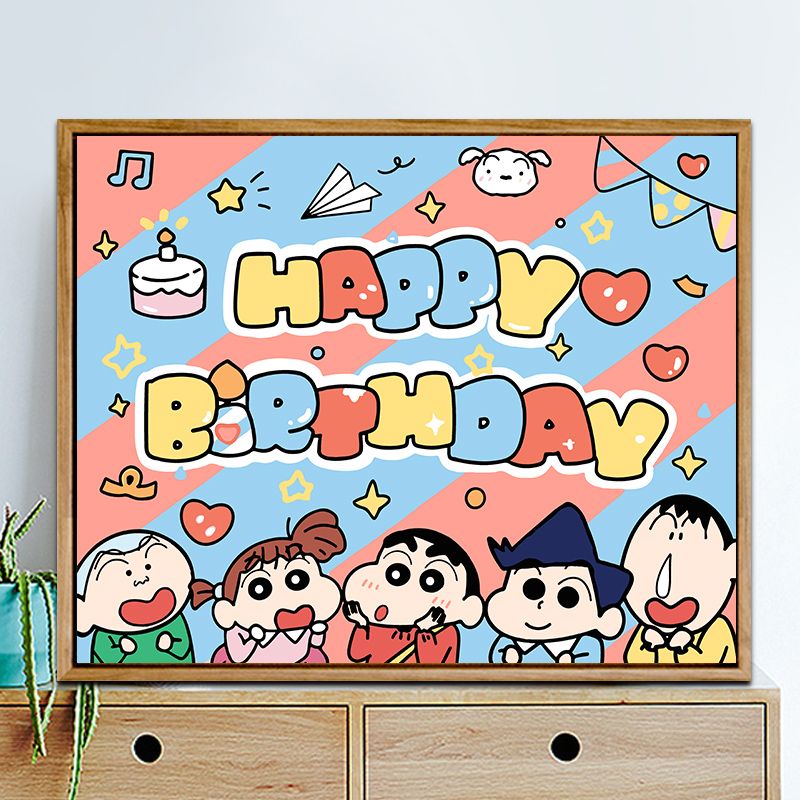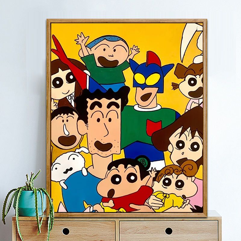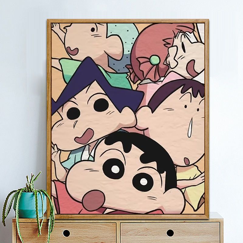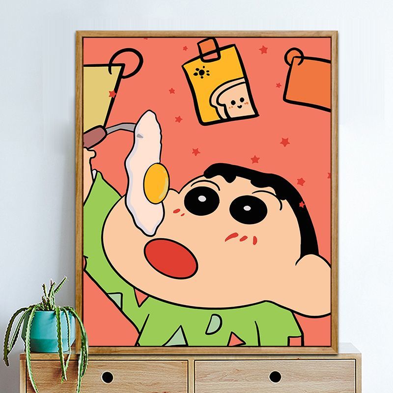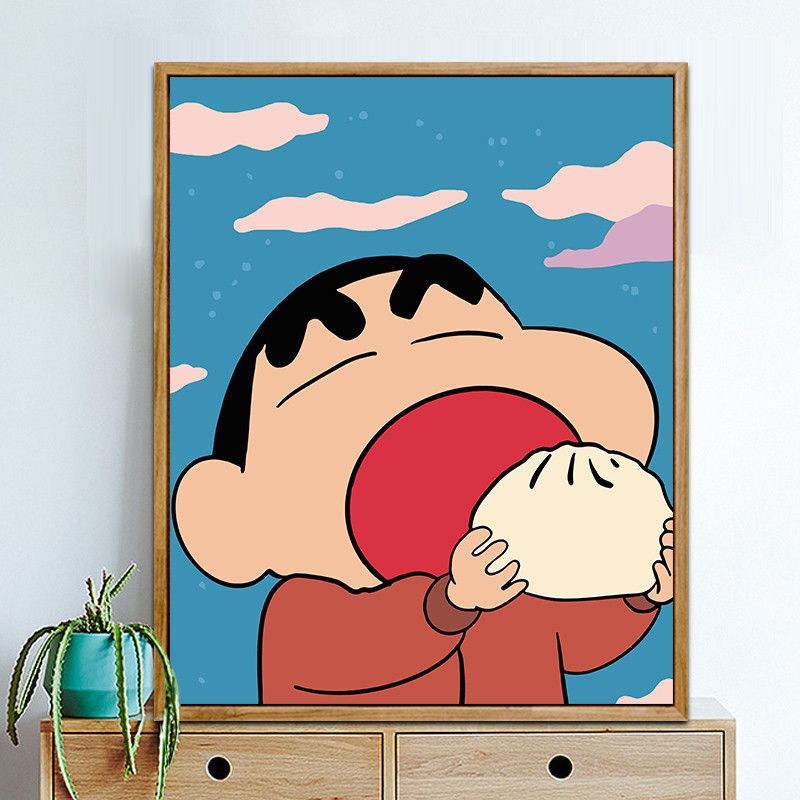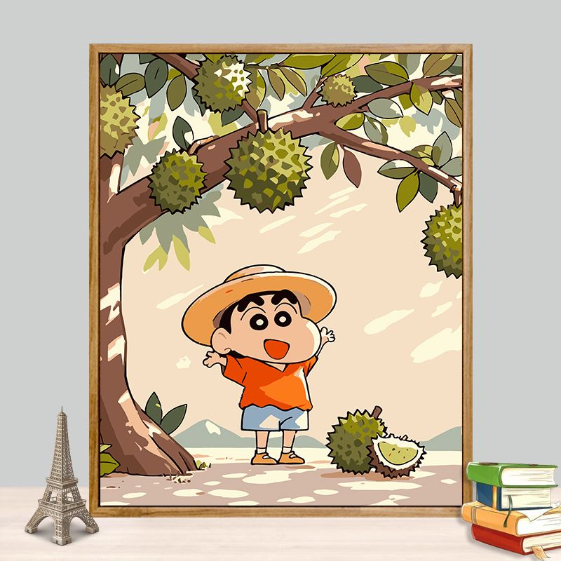 新款数字油彩画diy蜡笔小新卡通填色可爱手工减压涂色填充装饰画