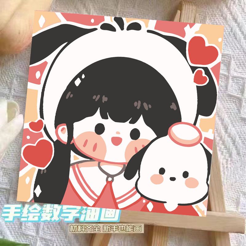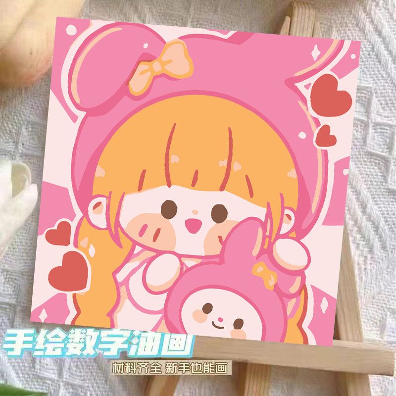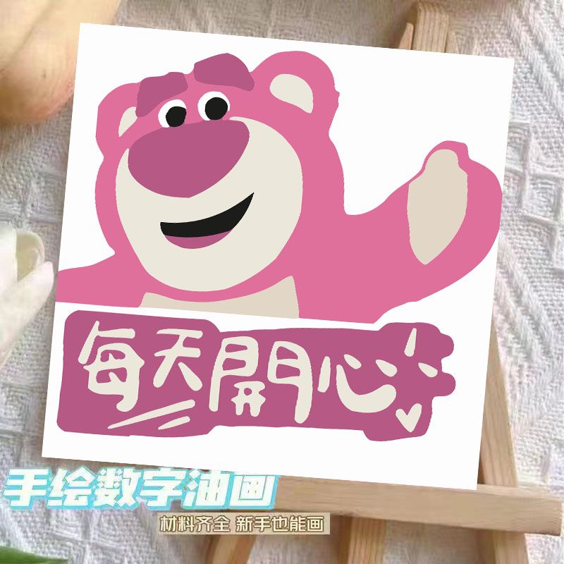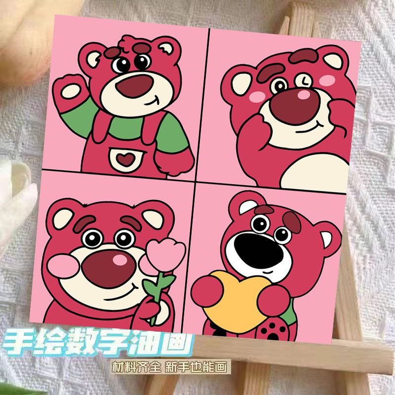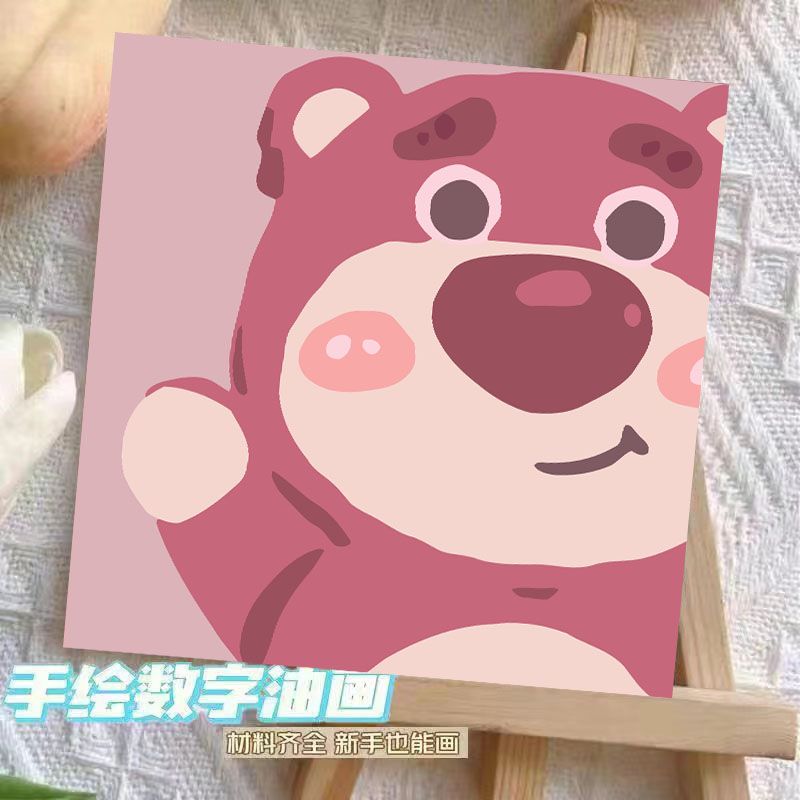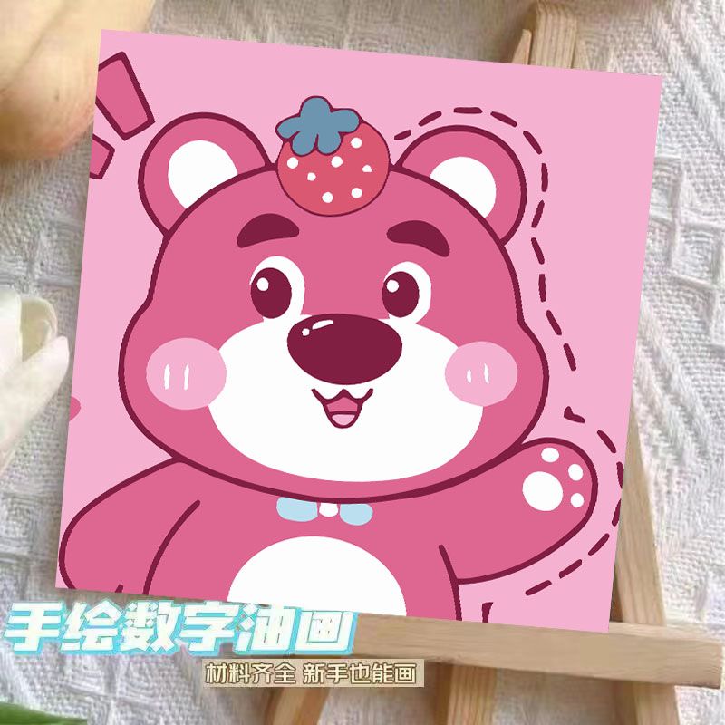 草莓熊数字油画diy充填油彩画动漫手绘解压填色卡通挂画学生礼物