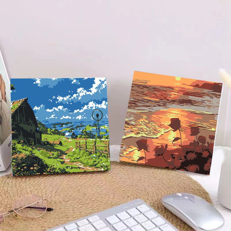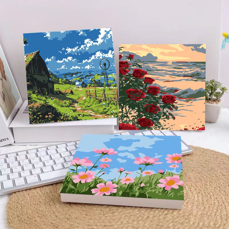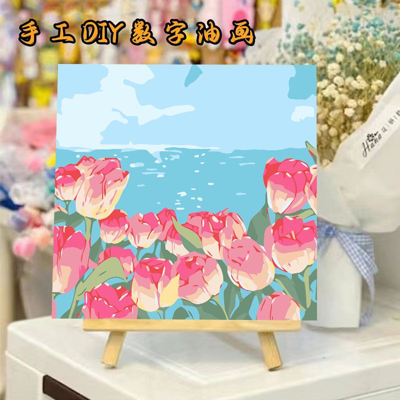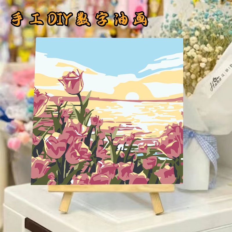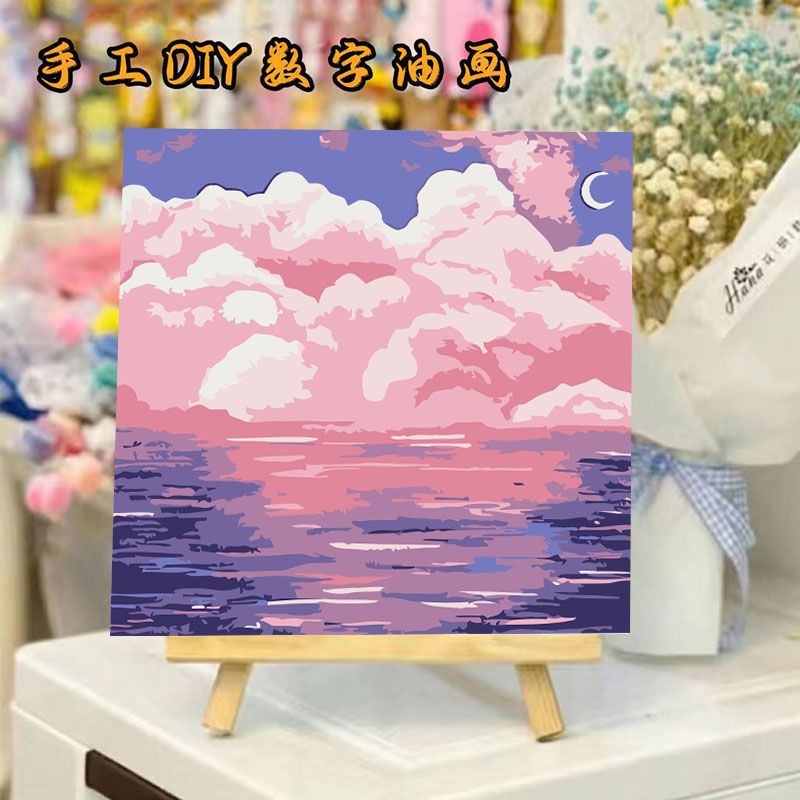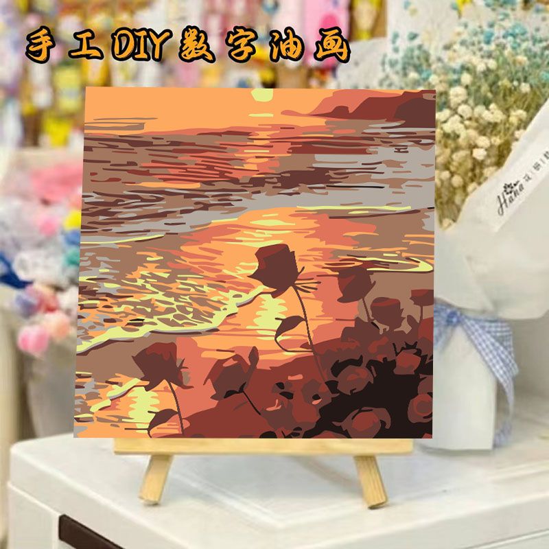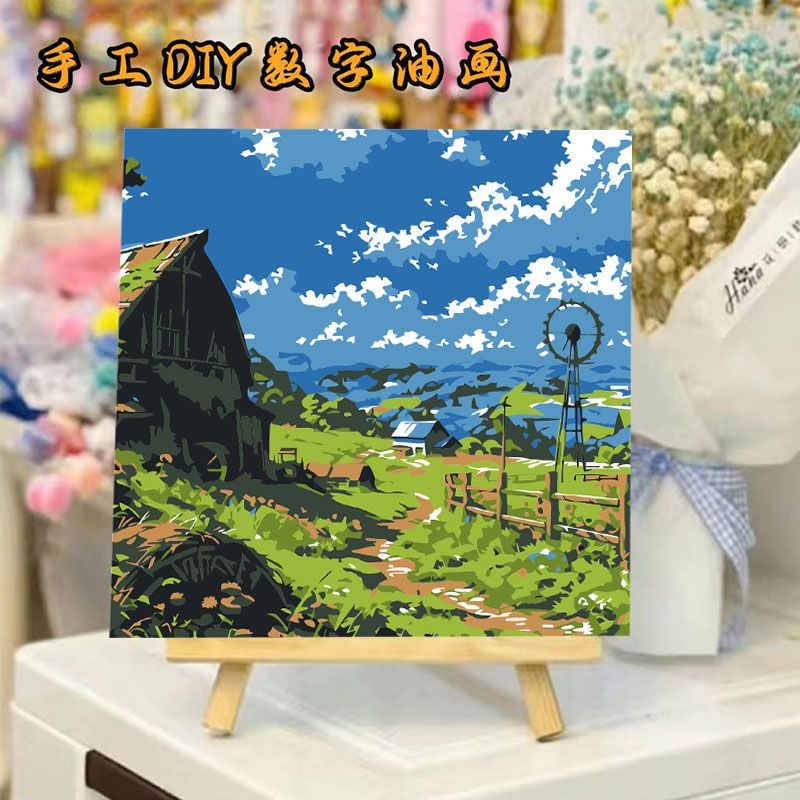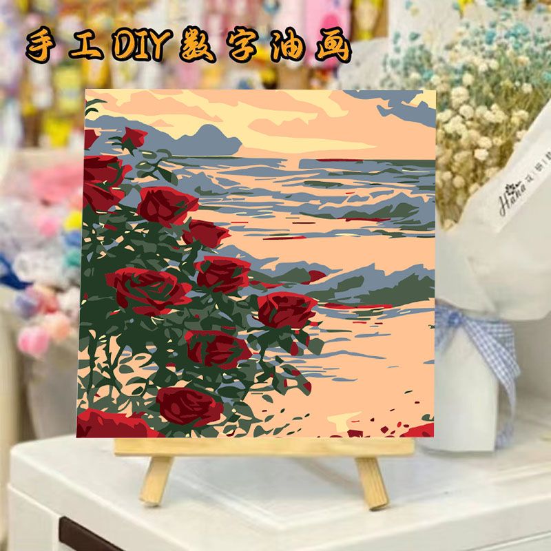 数字油画diy宫崎骏夏天填色手绘油彩画卡通动漫装饰画海上玫瑰
