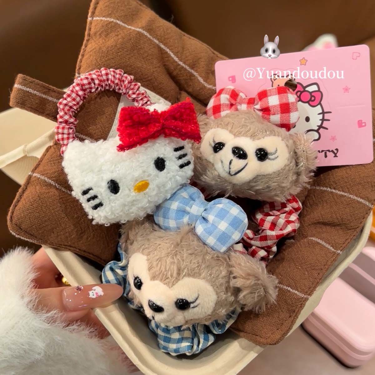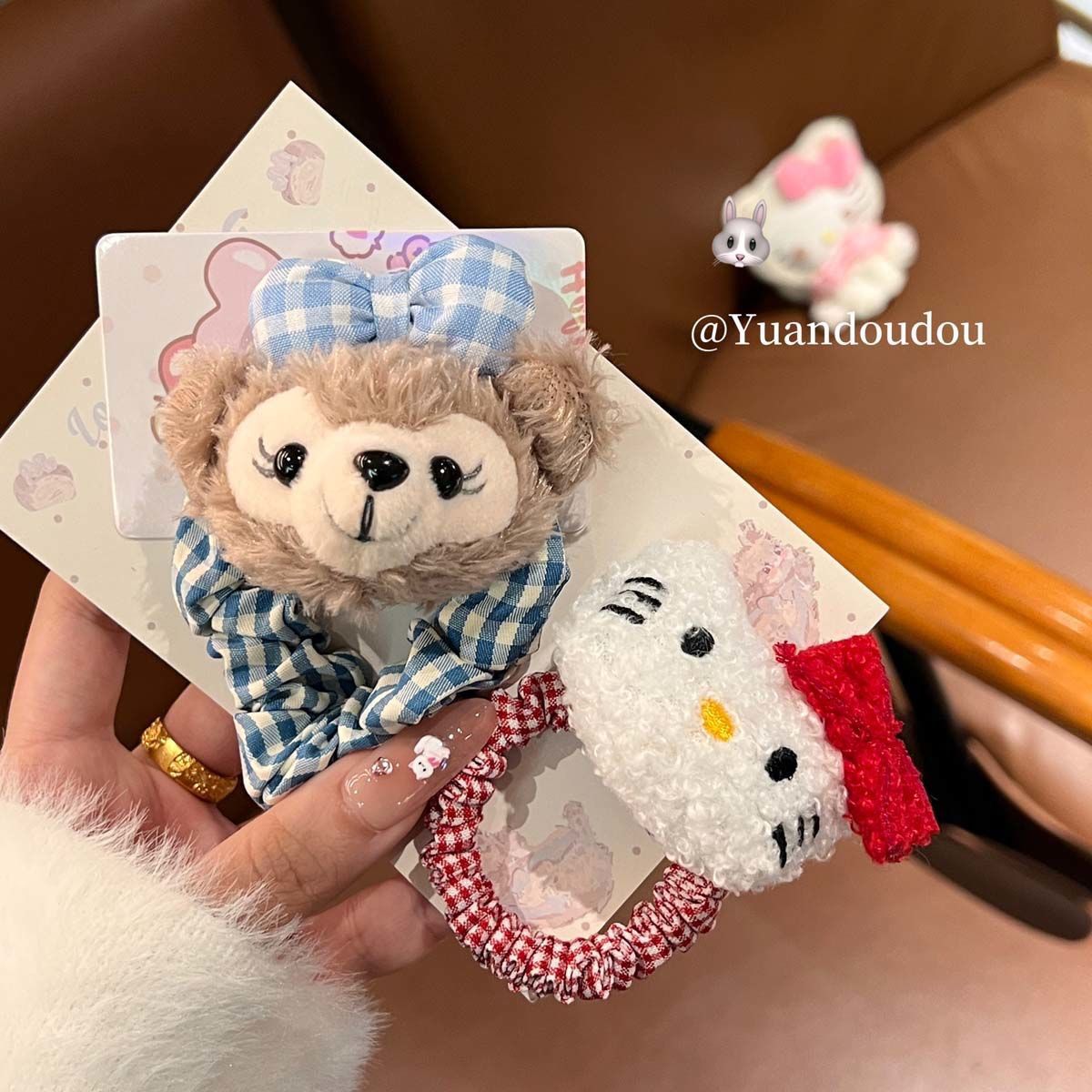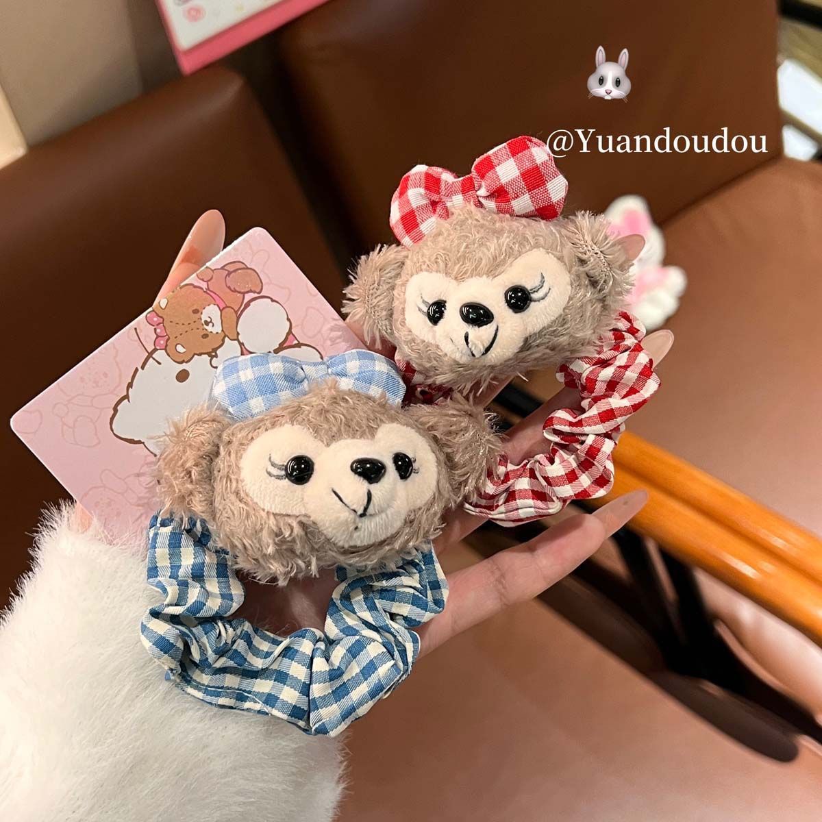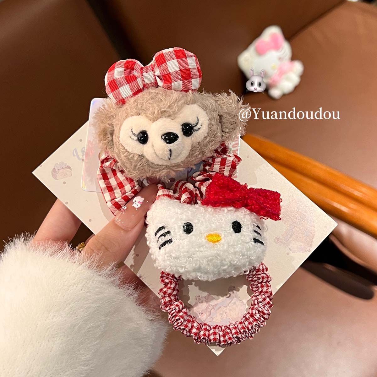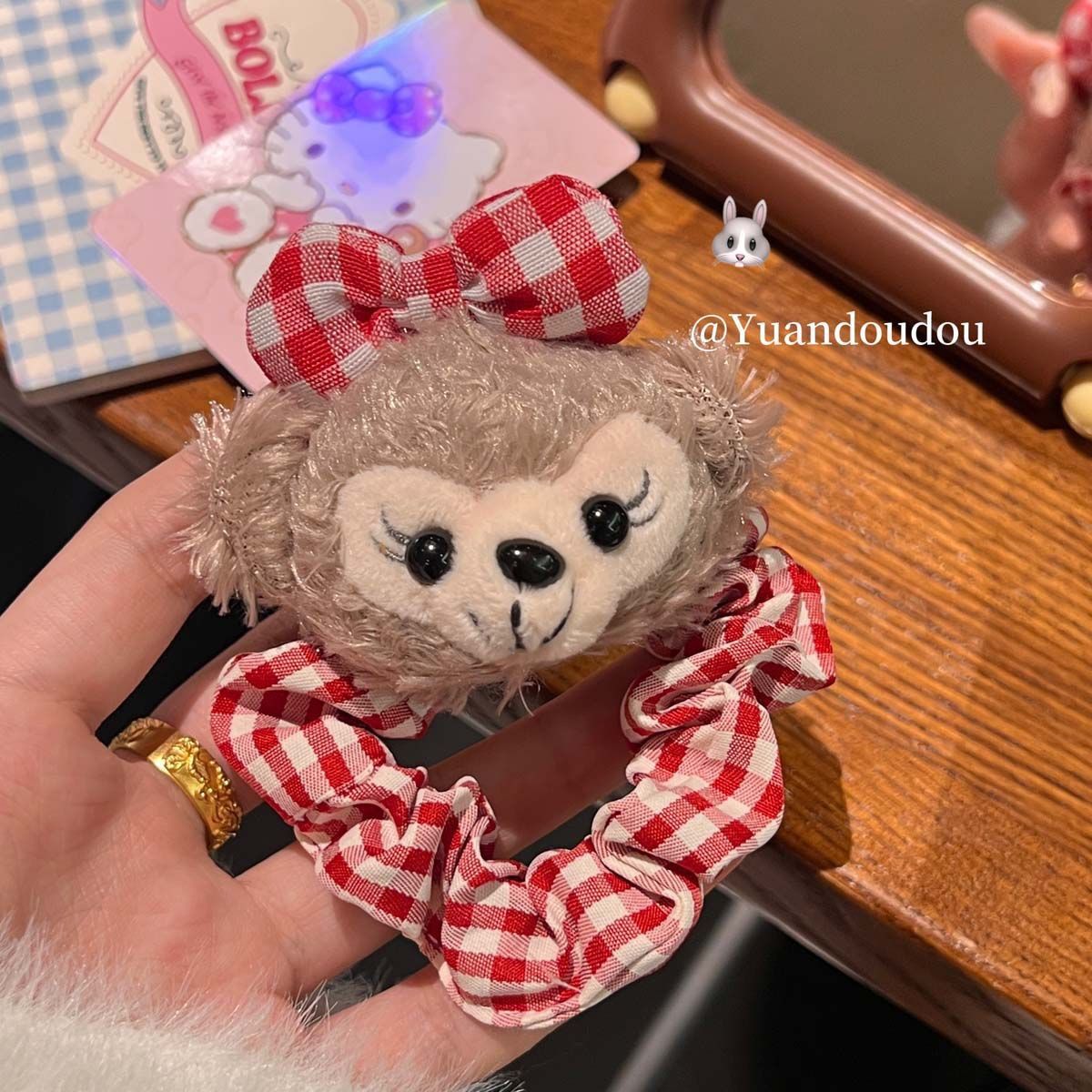 可爱雪莉玫格子发圈发绳学院JK风红格子公仔刘海鸭嘴夹日系发饰
