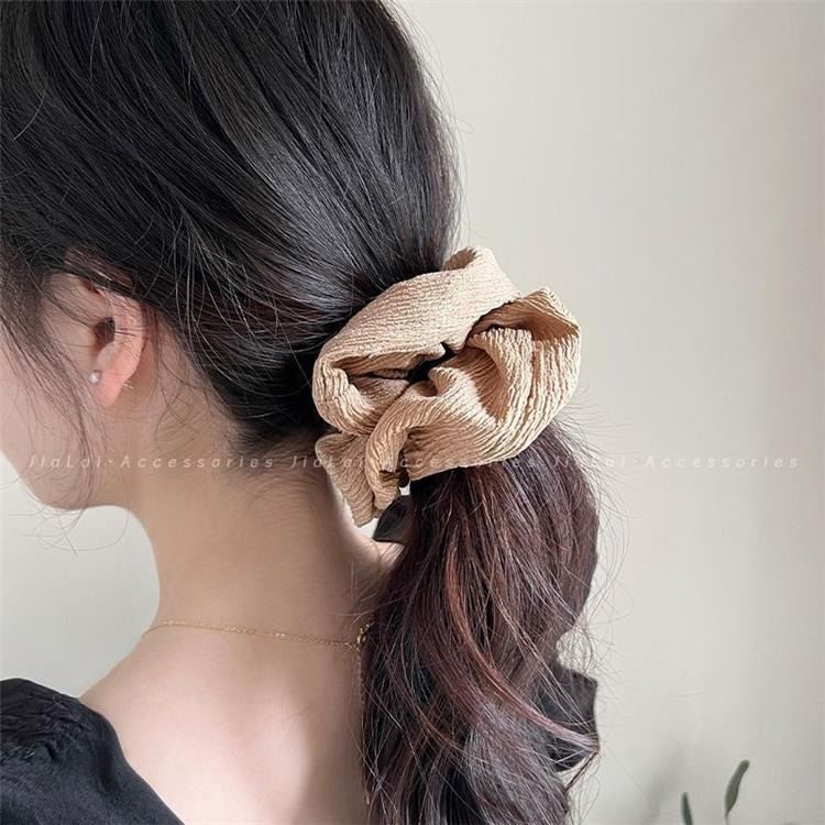 复古咖色褶皱大肠发圈ins法式百搭纯色简约发绳发饰头绳皮套头饰