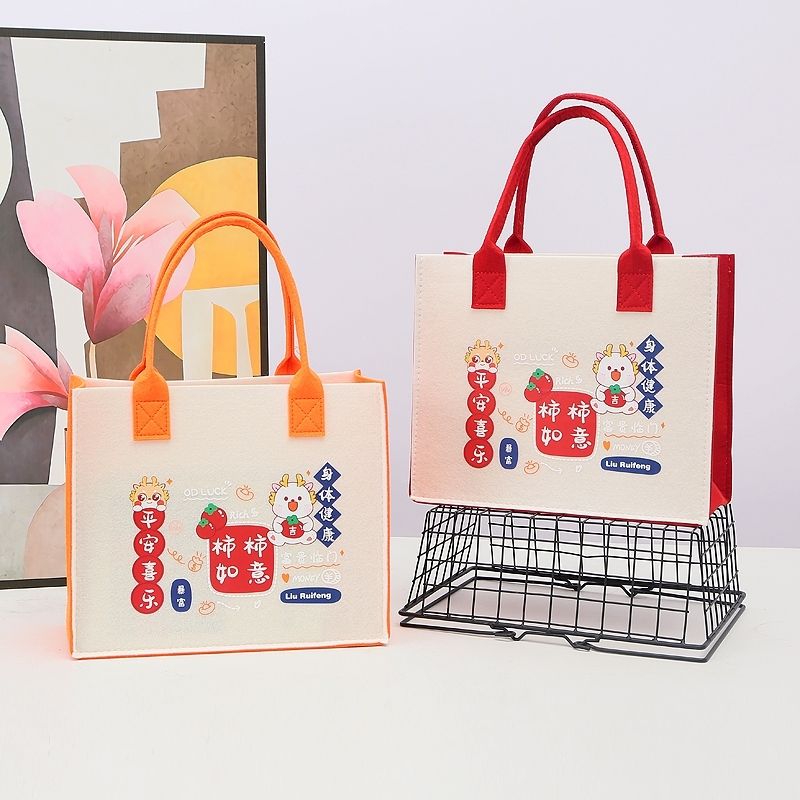 毛毡包定制女生外出小号时尚卡通可爱手提包日式清新便当网红包