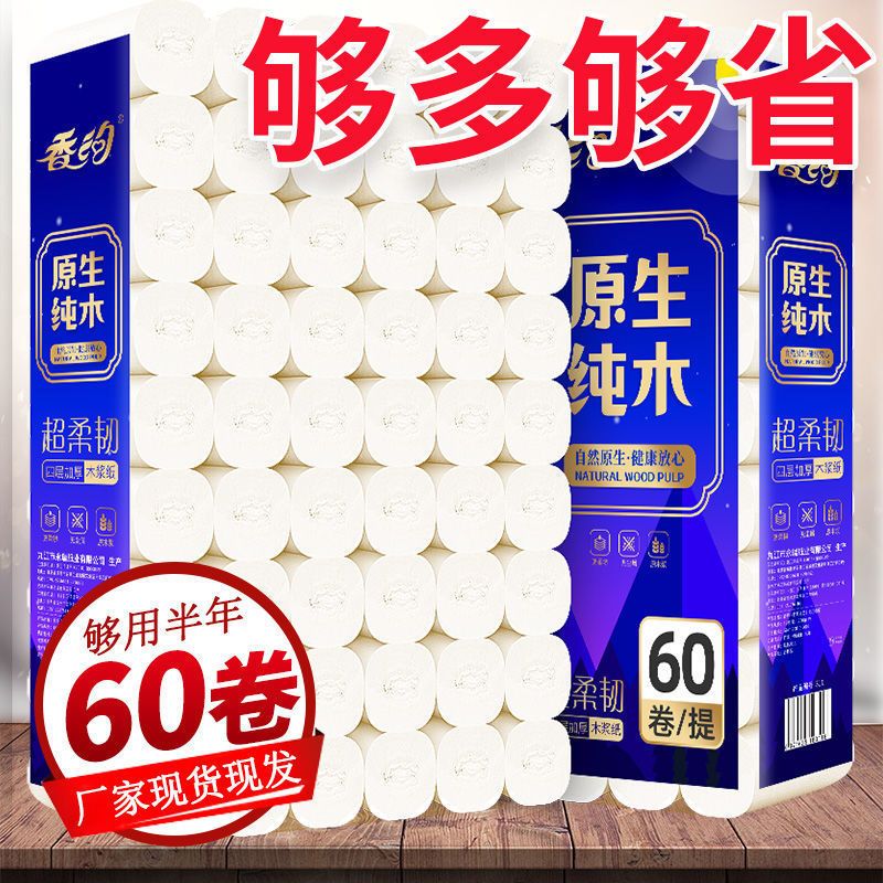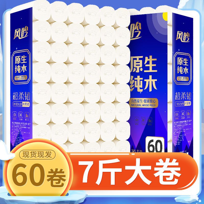 【7斤60卷够用1年】原木卫生纸家用纸巾批发厕纸12卷纸无芯手纸卷