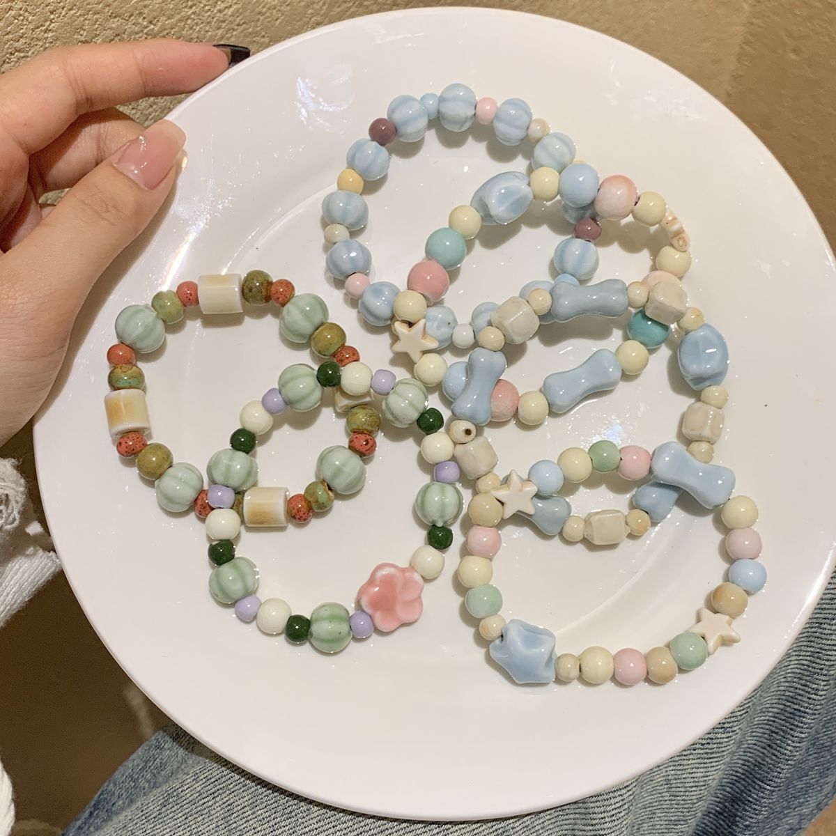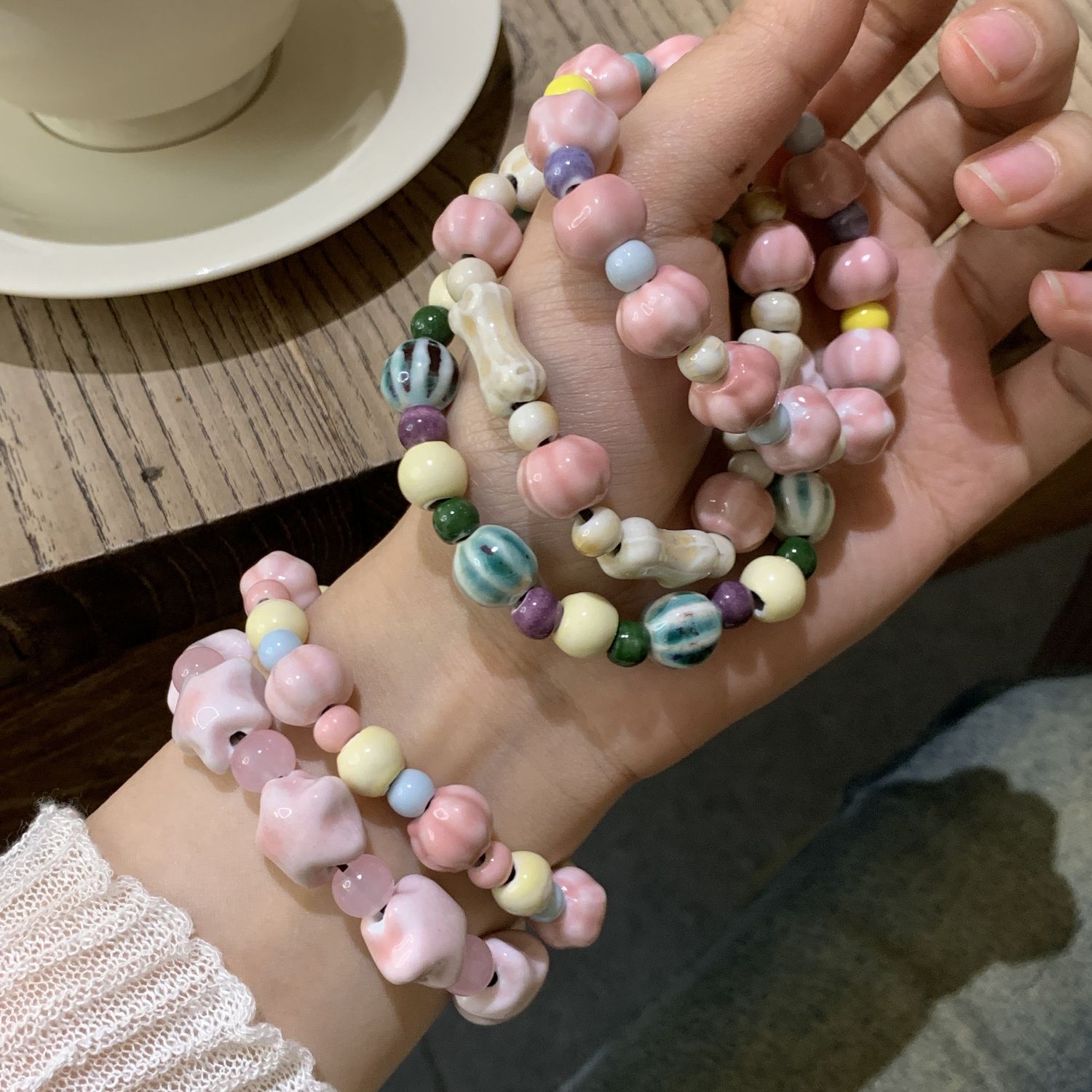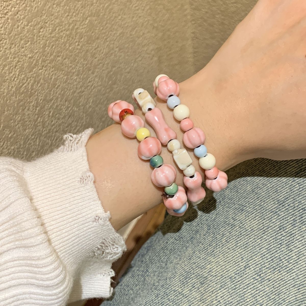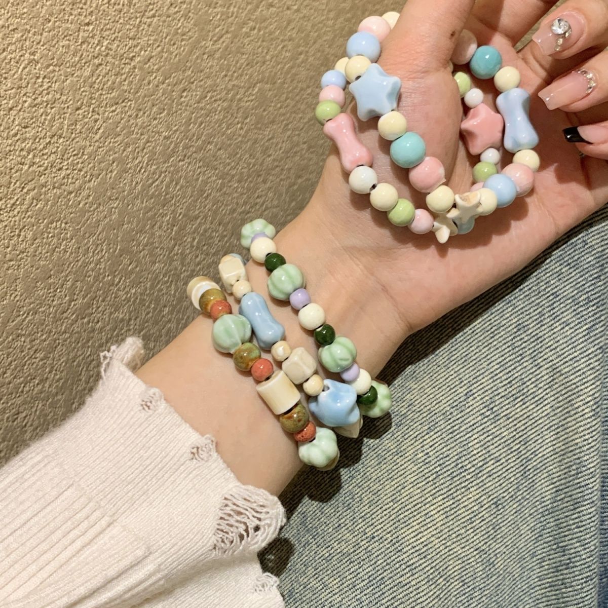 新款多巴胺彩色陶瓷手链女新中式民族风马卡龙色串珠手串送闺蜜