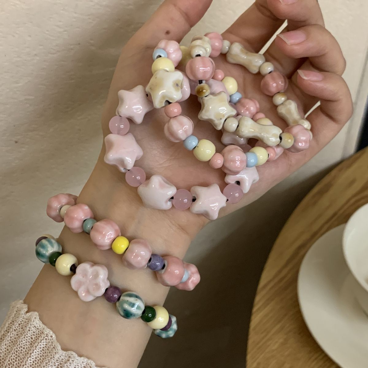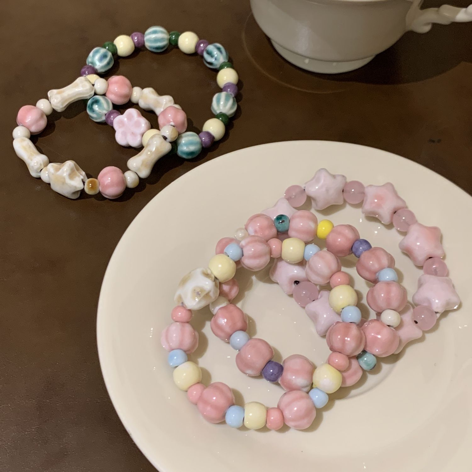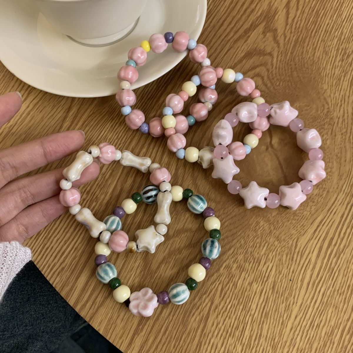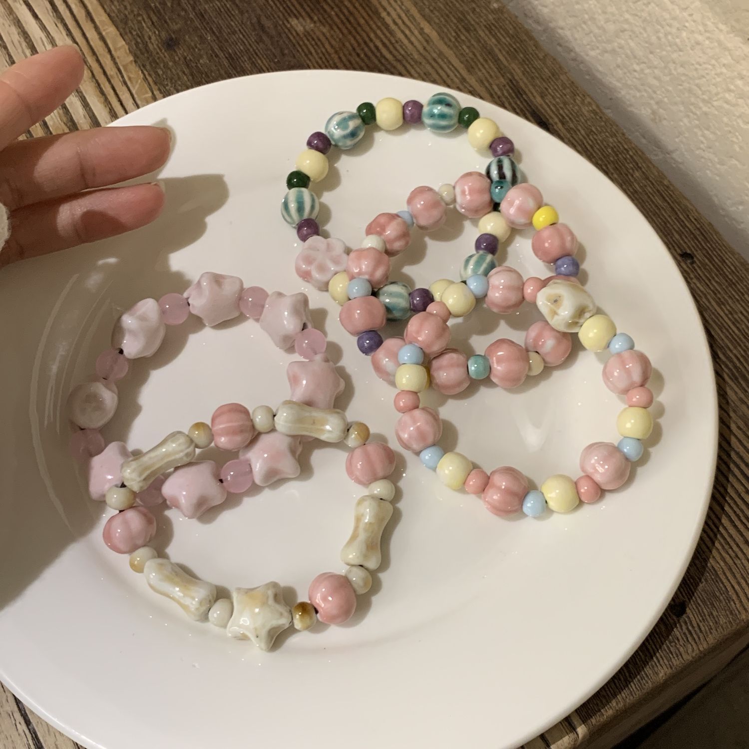 新款多巴胺彩色陶瓷手链女新中式民族风马卡龙色串珠手串送闺蜜