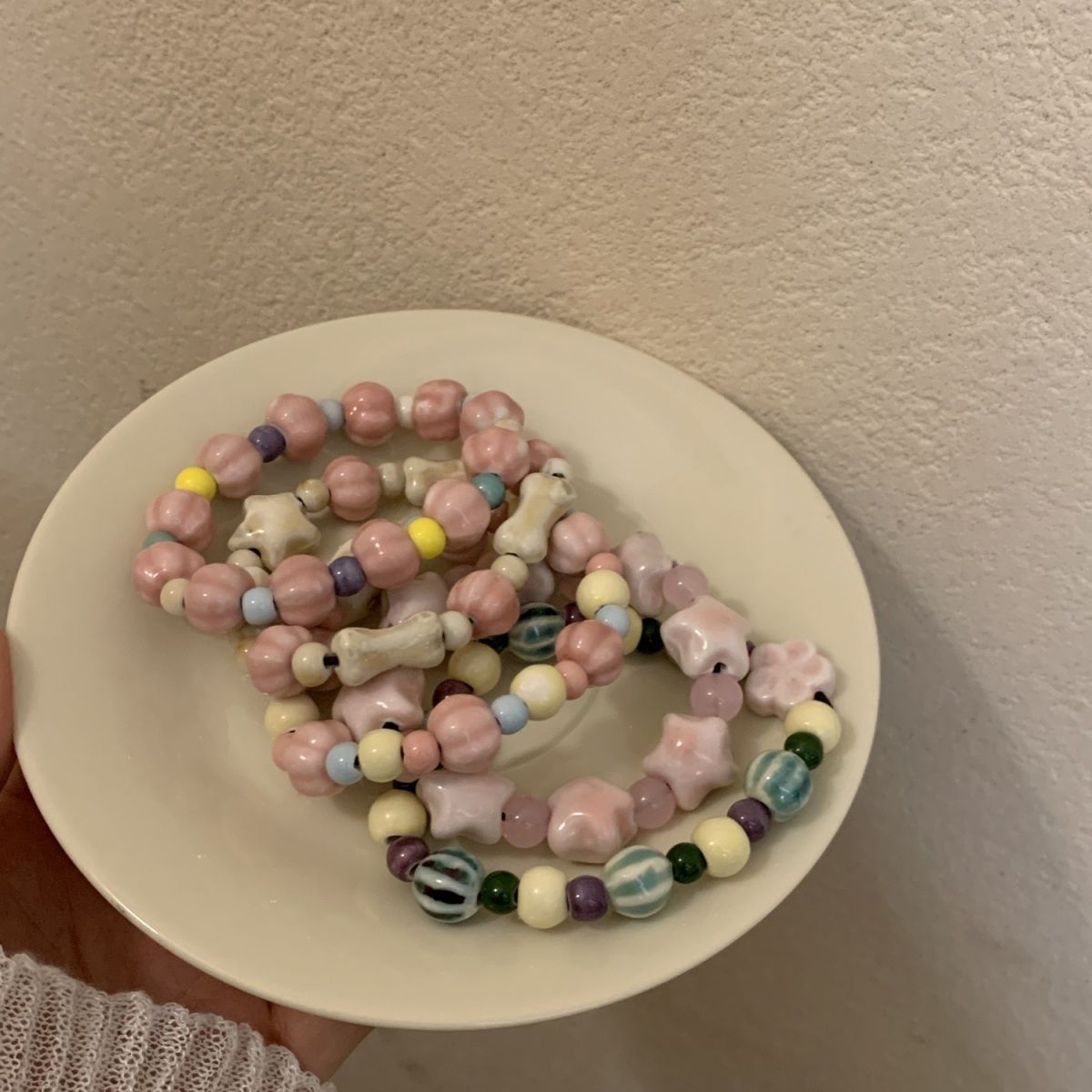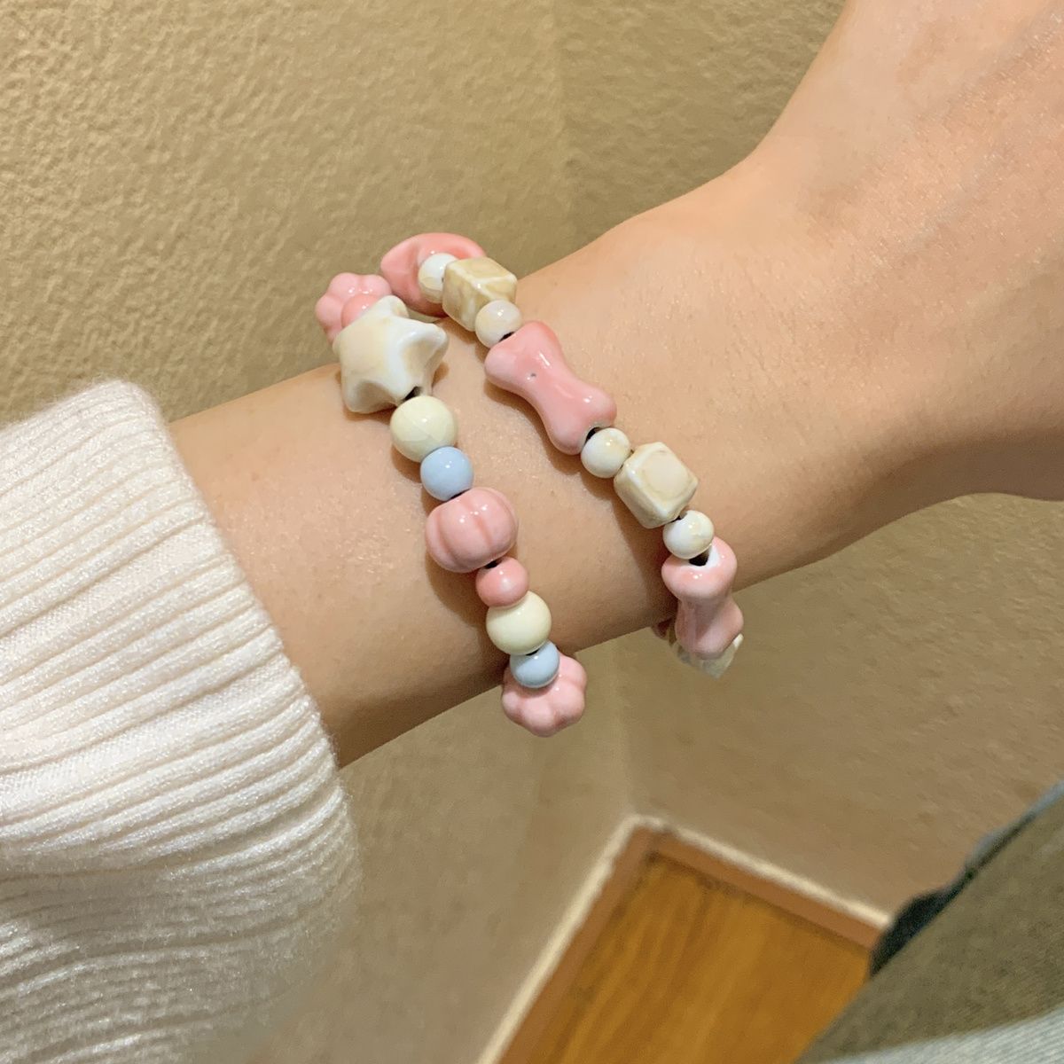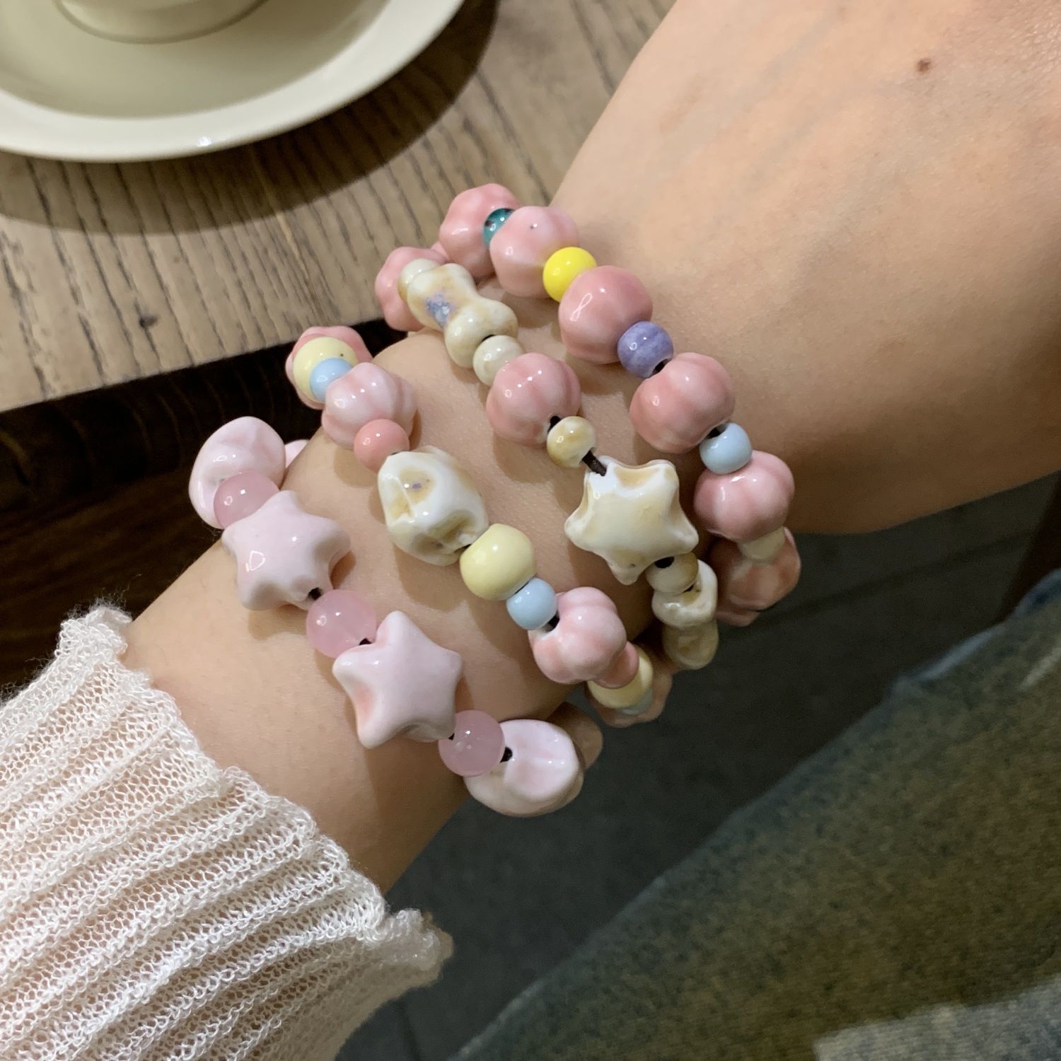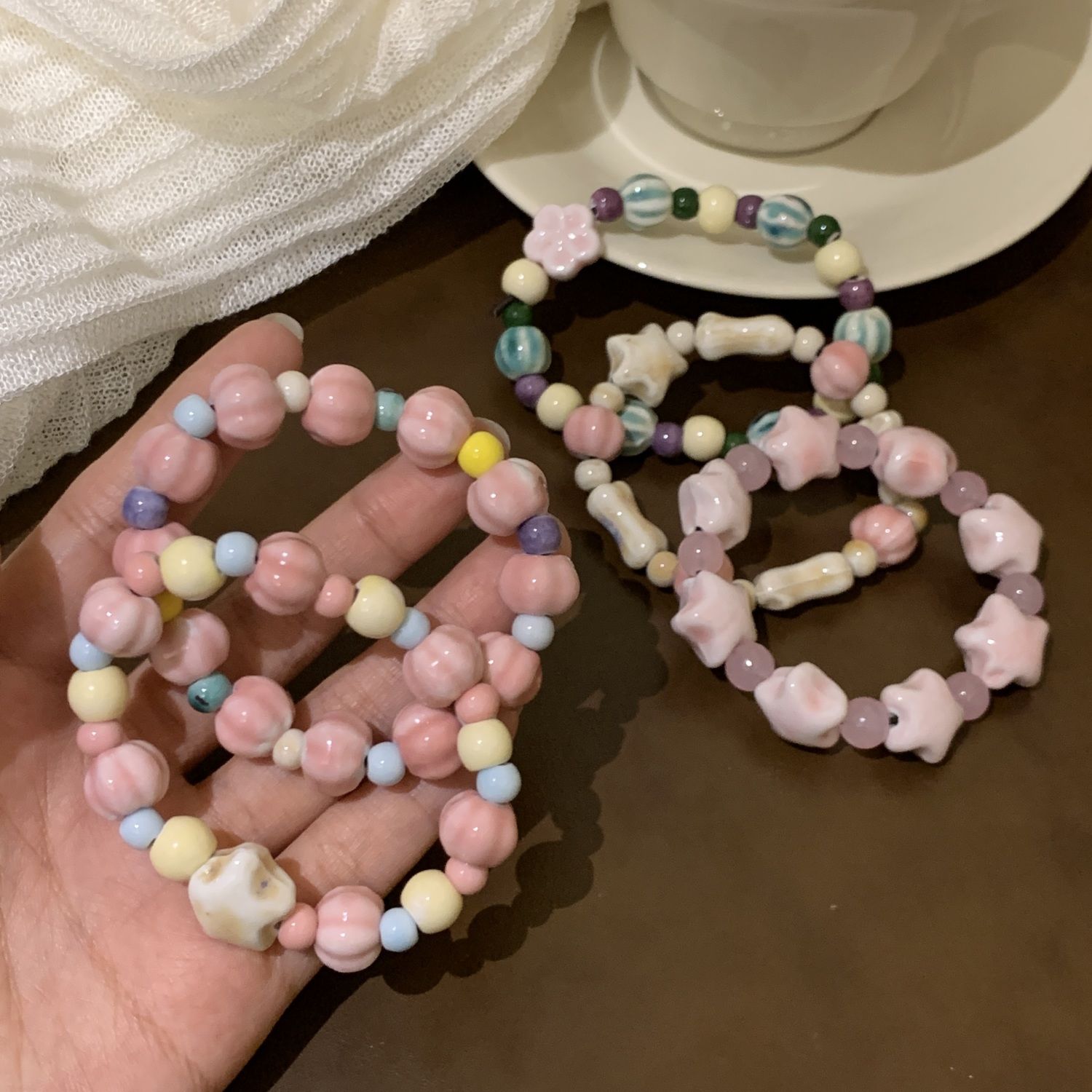 新款多巴胺彩色陶瓷手链女新中式民族风马卡龙色串珠手串送闺蜜