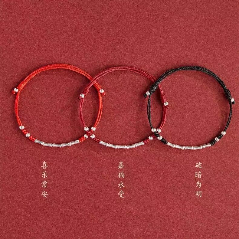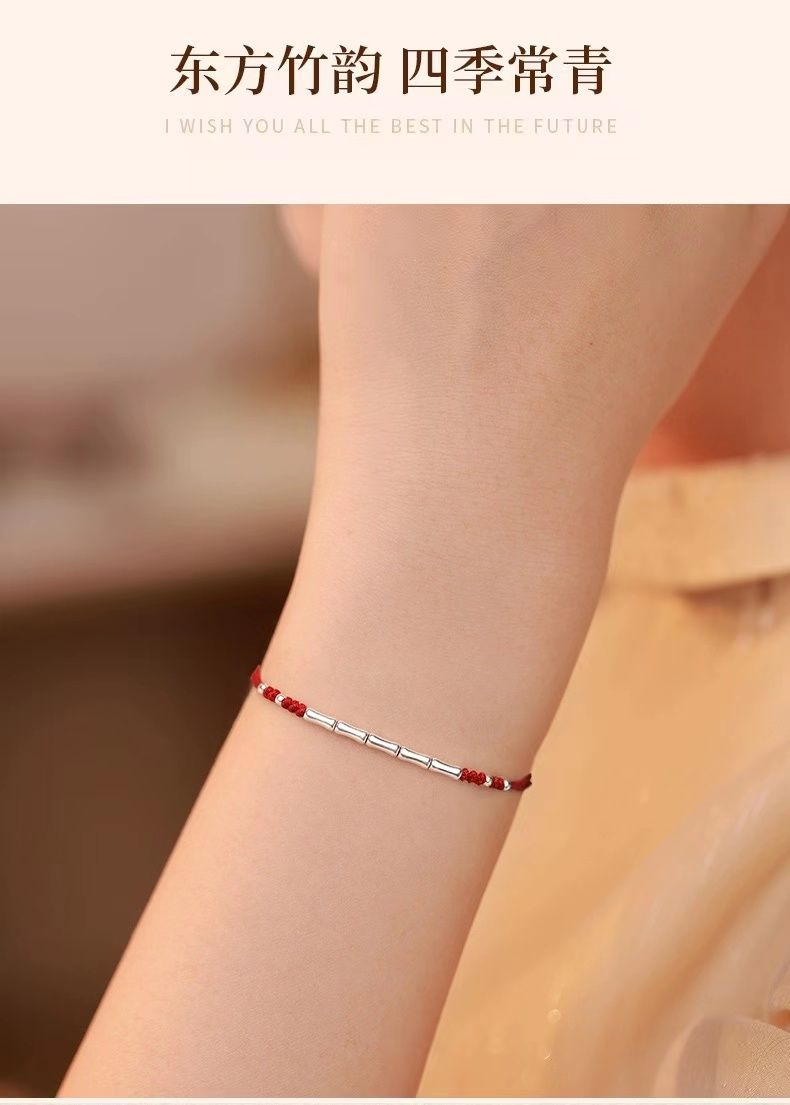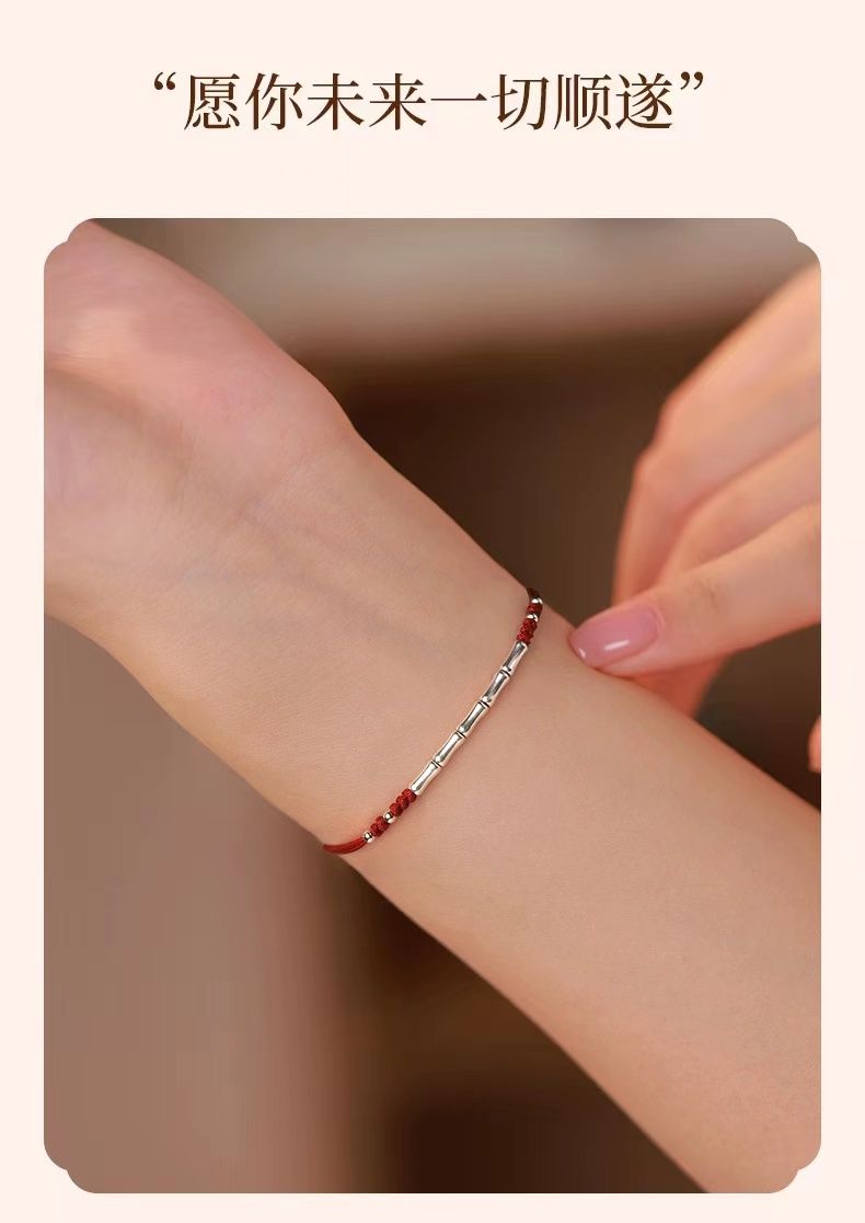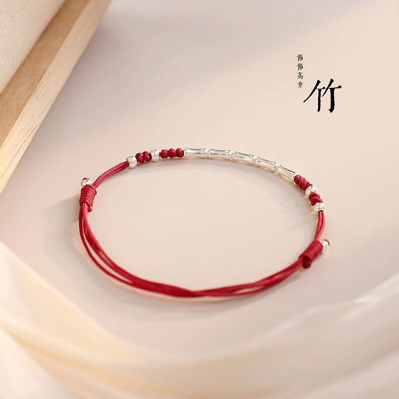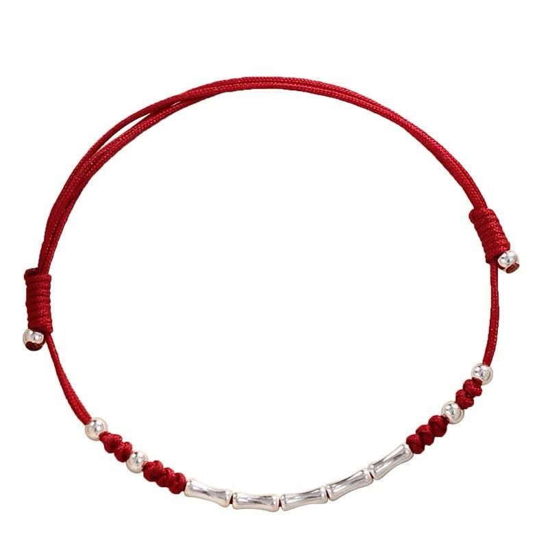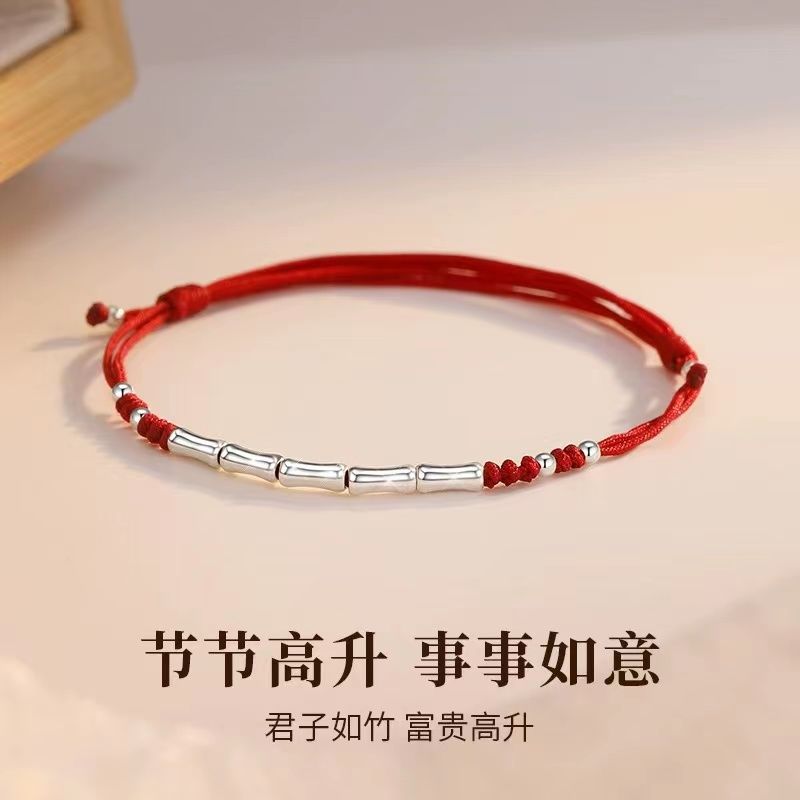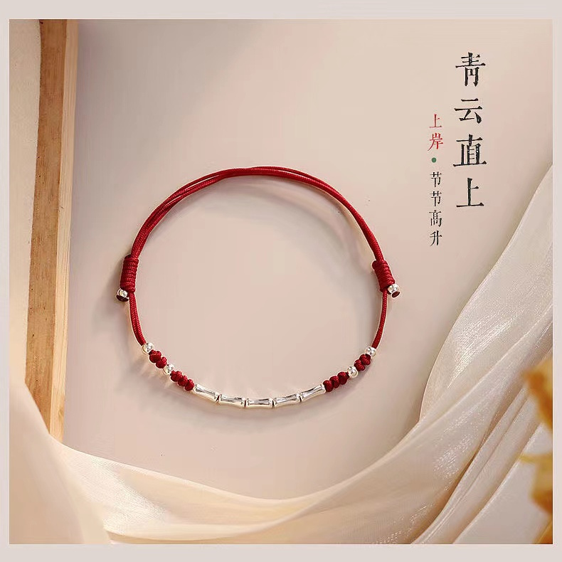 上岸S925纯银手链红绳银竹节编织脚链节节高考研手绳可调节礼物