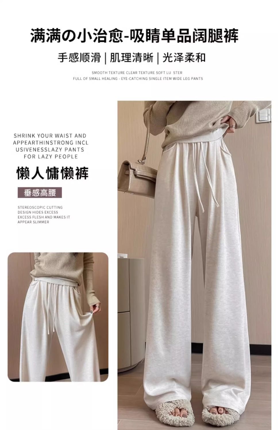 TADANNU软糯慵懒阔腿裤女秋冬高腰垂感宽松直筒休闲拖地糯米裤子