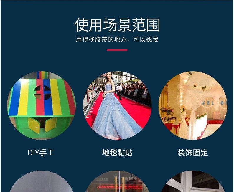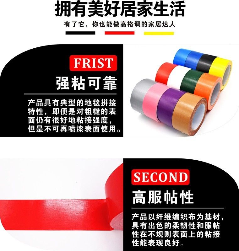 高粘红色绿色银灰彩色布基胶带装饰婚庆酒店地毯无痕防水自粘胶布
