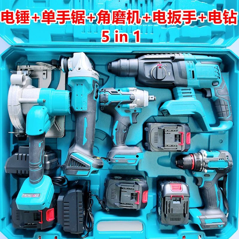 【出口外贸牧田款组合套装】锂电电锤角磨机电动扳手电钻电锯切割