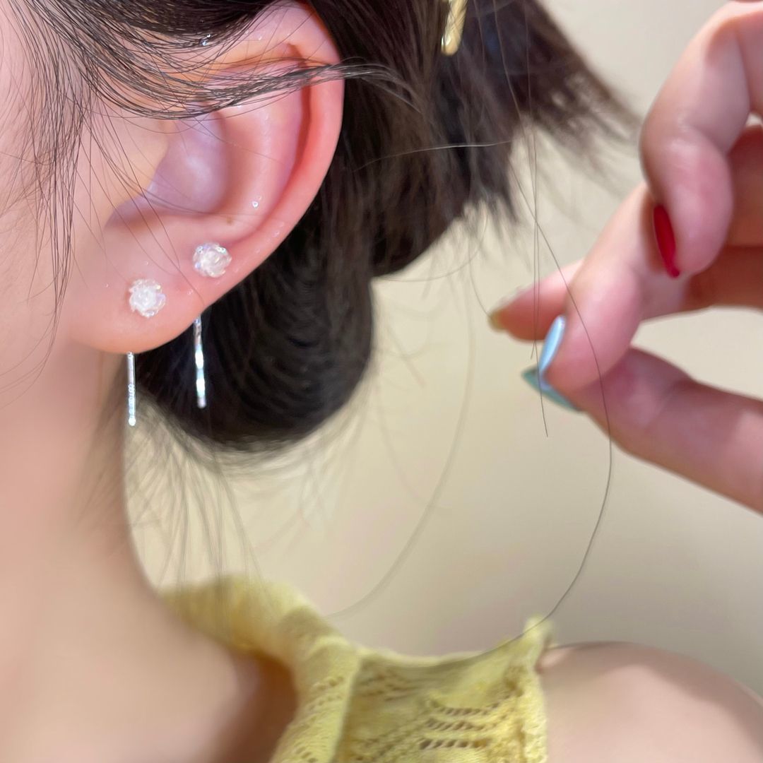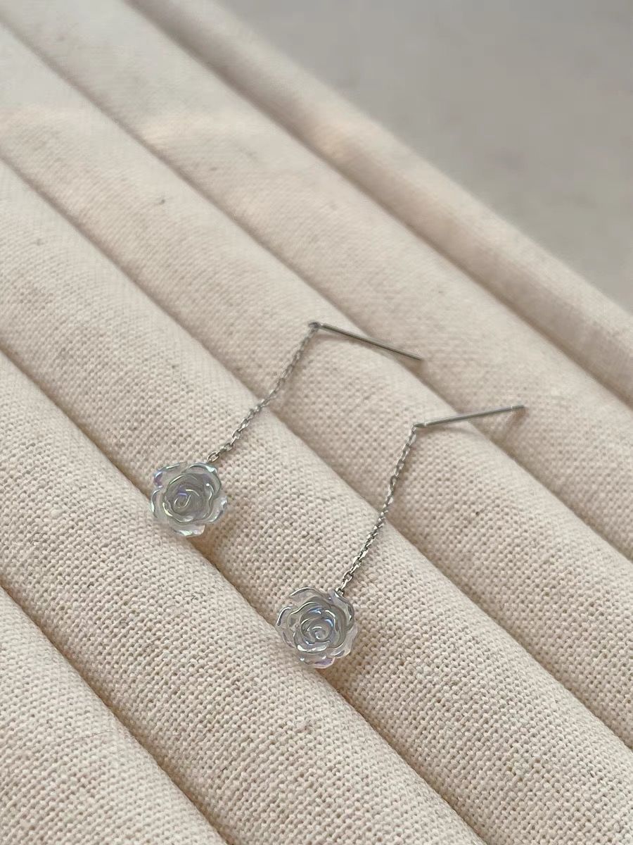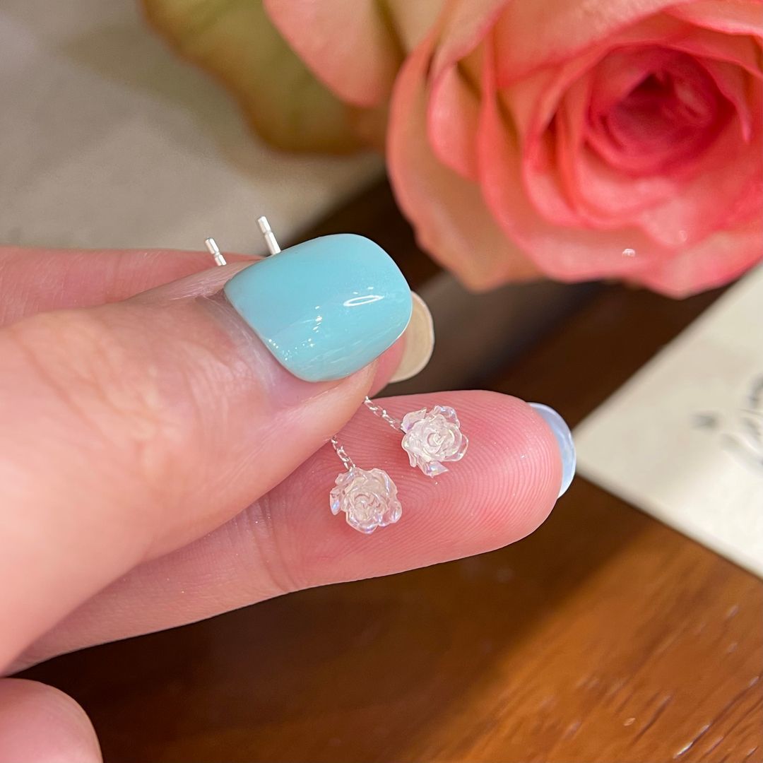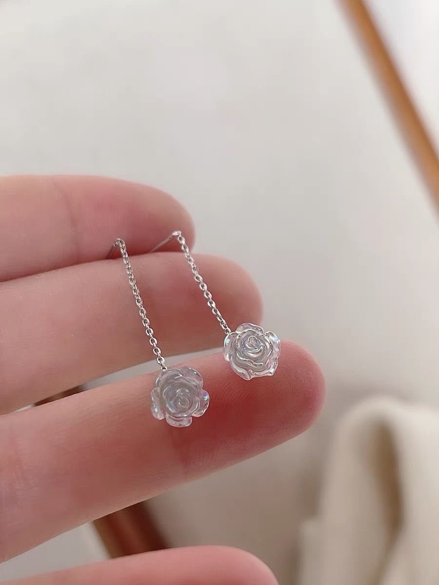 s925银玫瑰花朵耳线清新简约超仙小众设计小花朵防过敏气质耳环