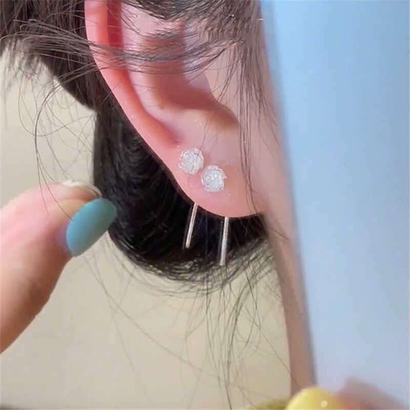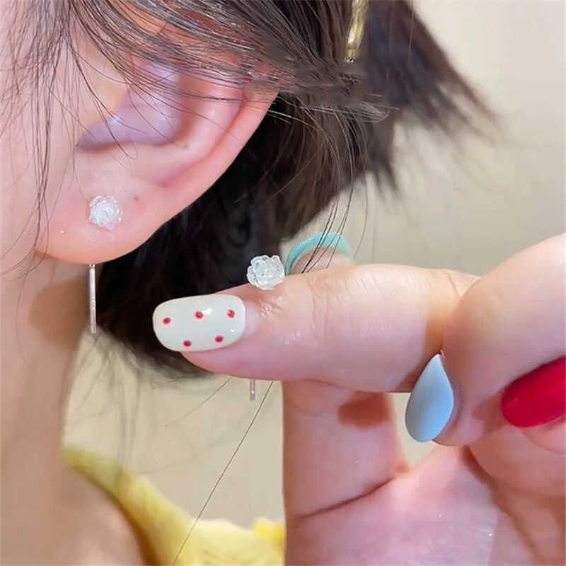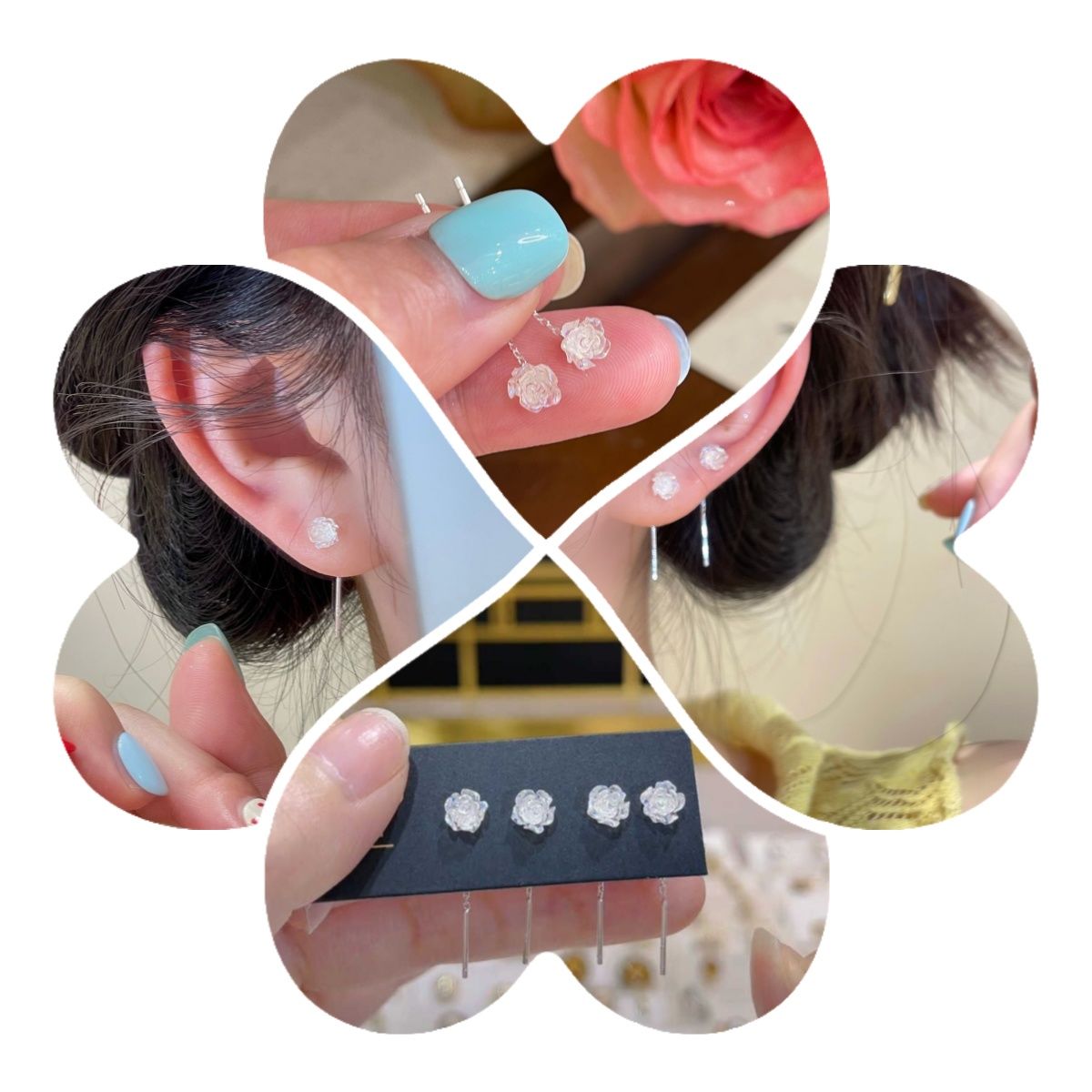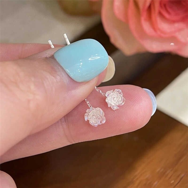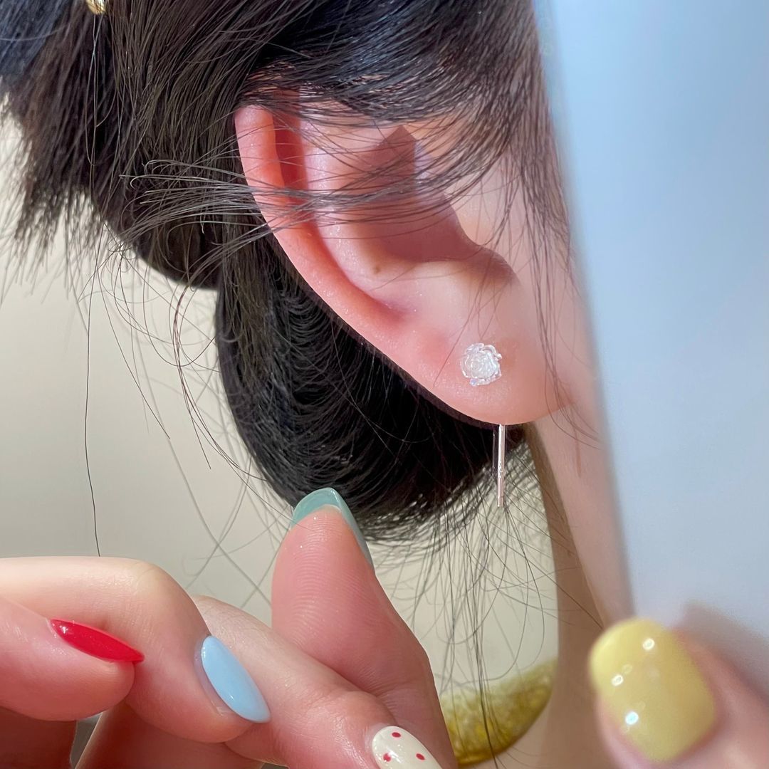 s925银玫瑰花朵耳线清新简约超仙小众设计小花朵防过敏气质耳环