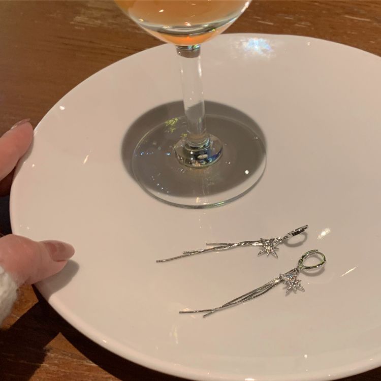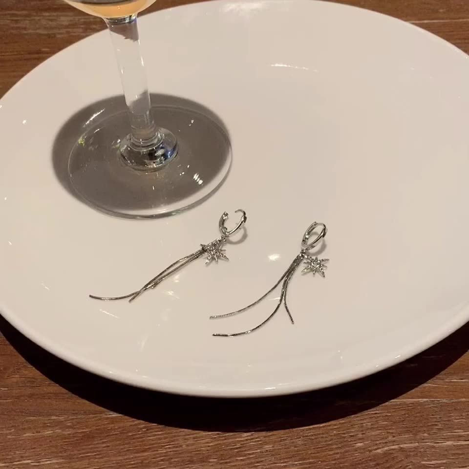 八芒星流苏耳圈耳环女新款潮气质高级感ins风轻奢耳夹耳饰名媛