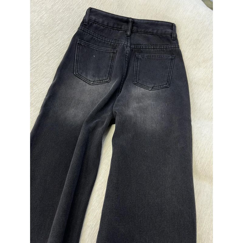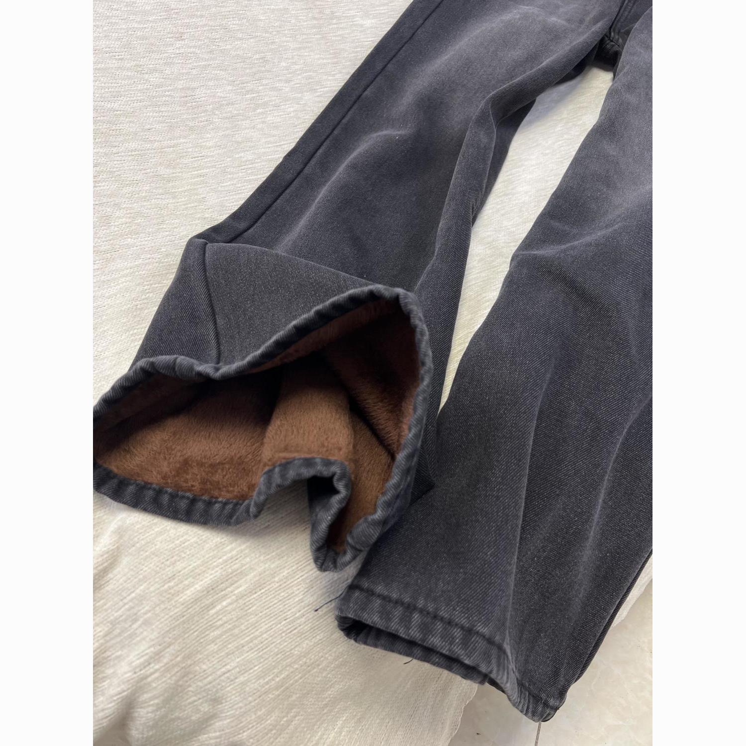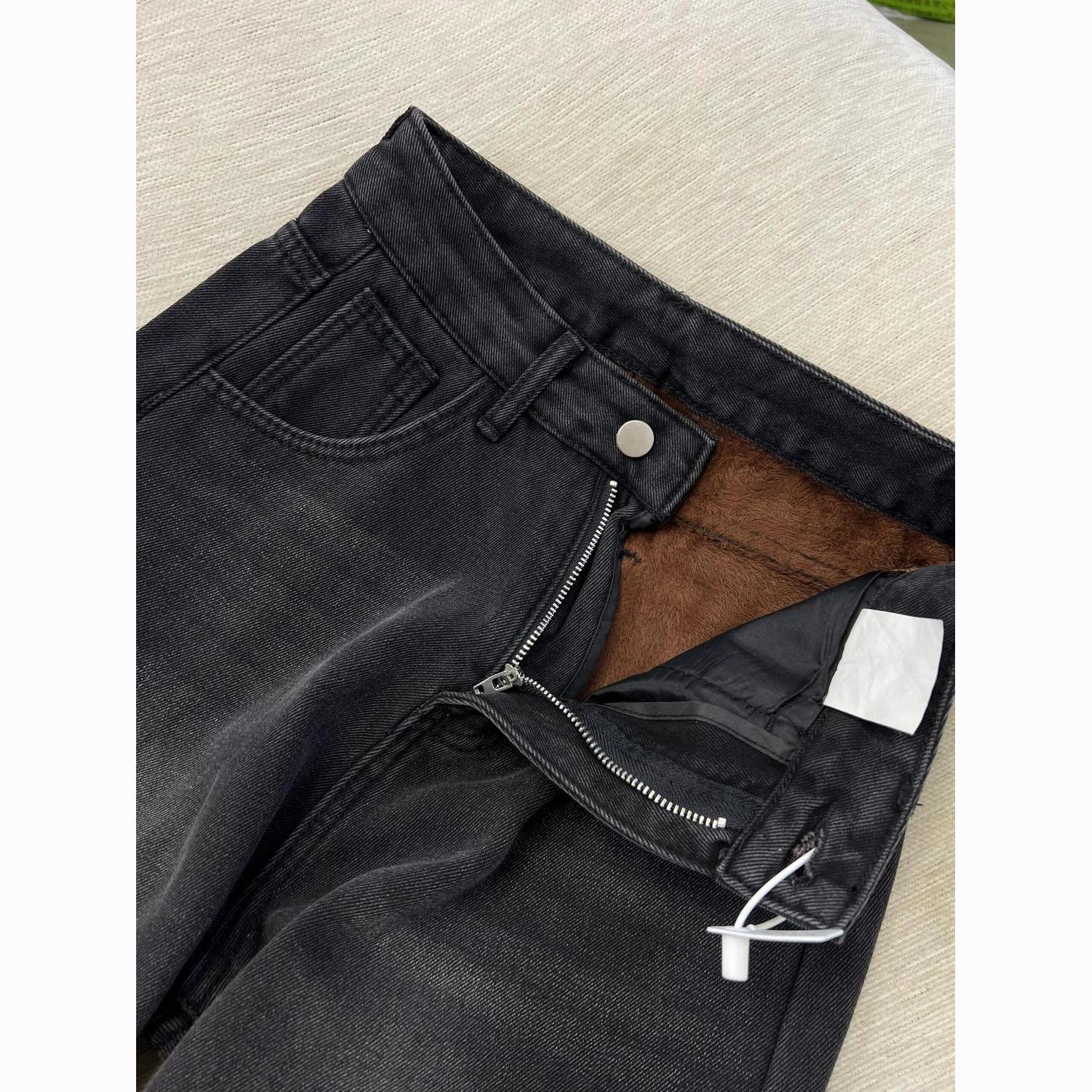 黑灰色加绒保暖宽松直筒牛仔裤女秋冬新款美式复古高腰垂感阔腿裤