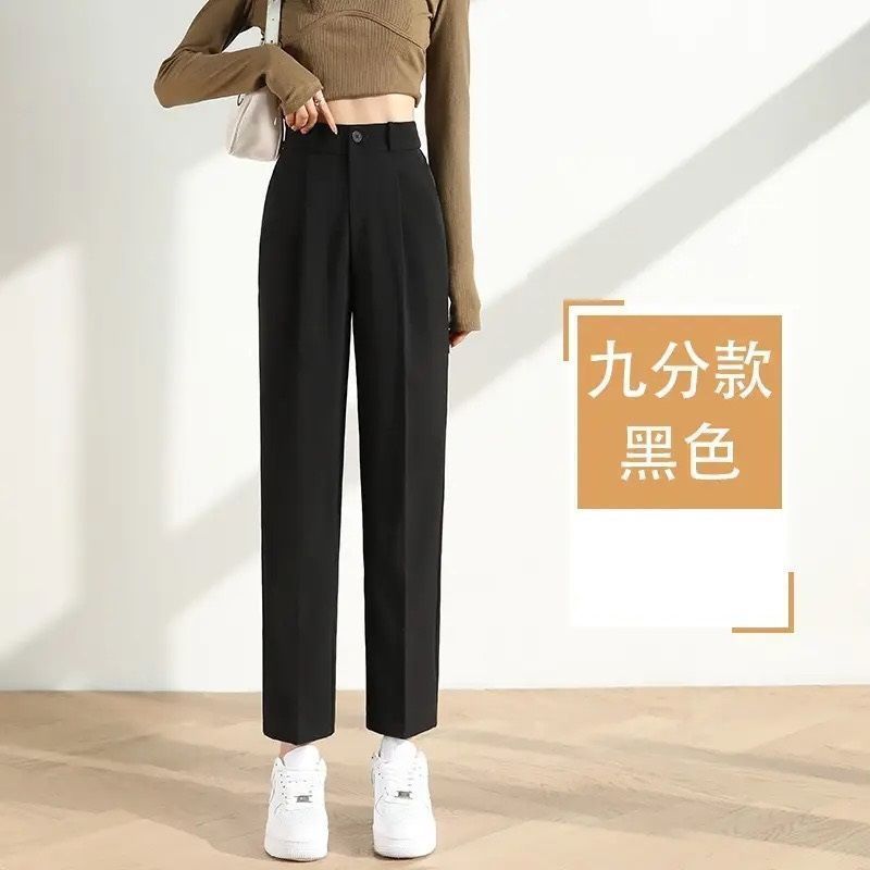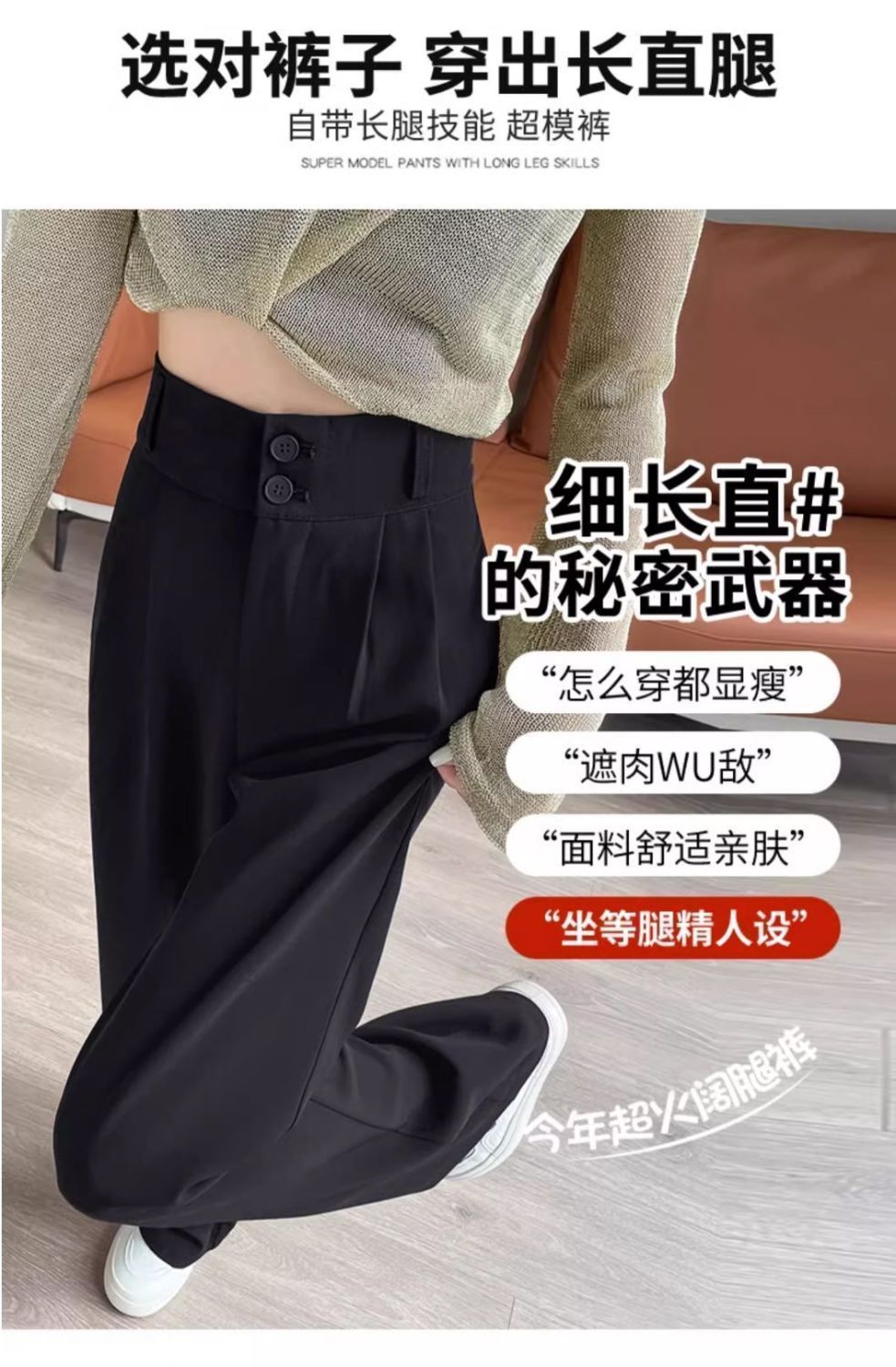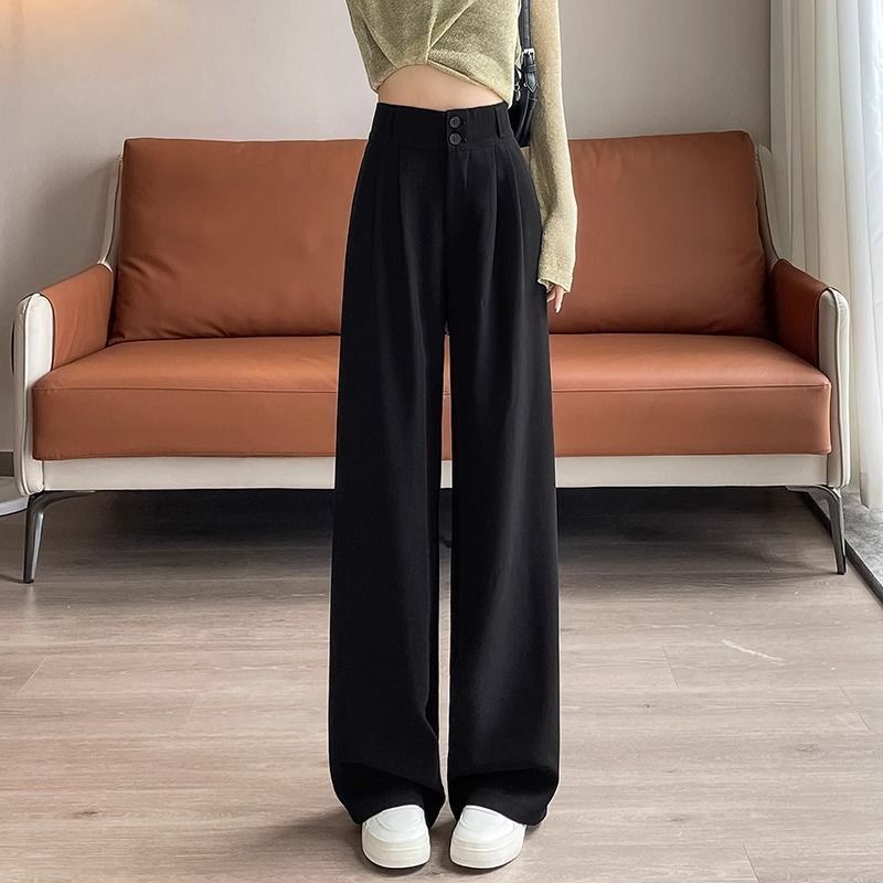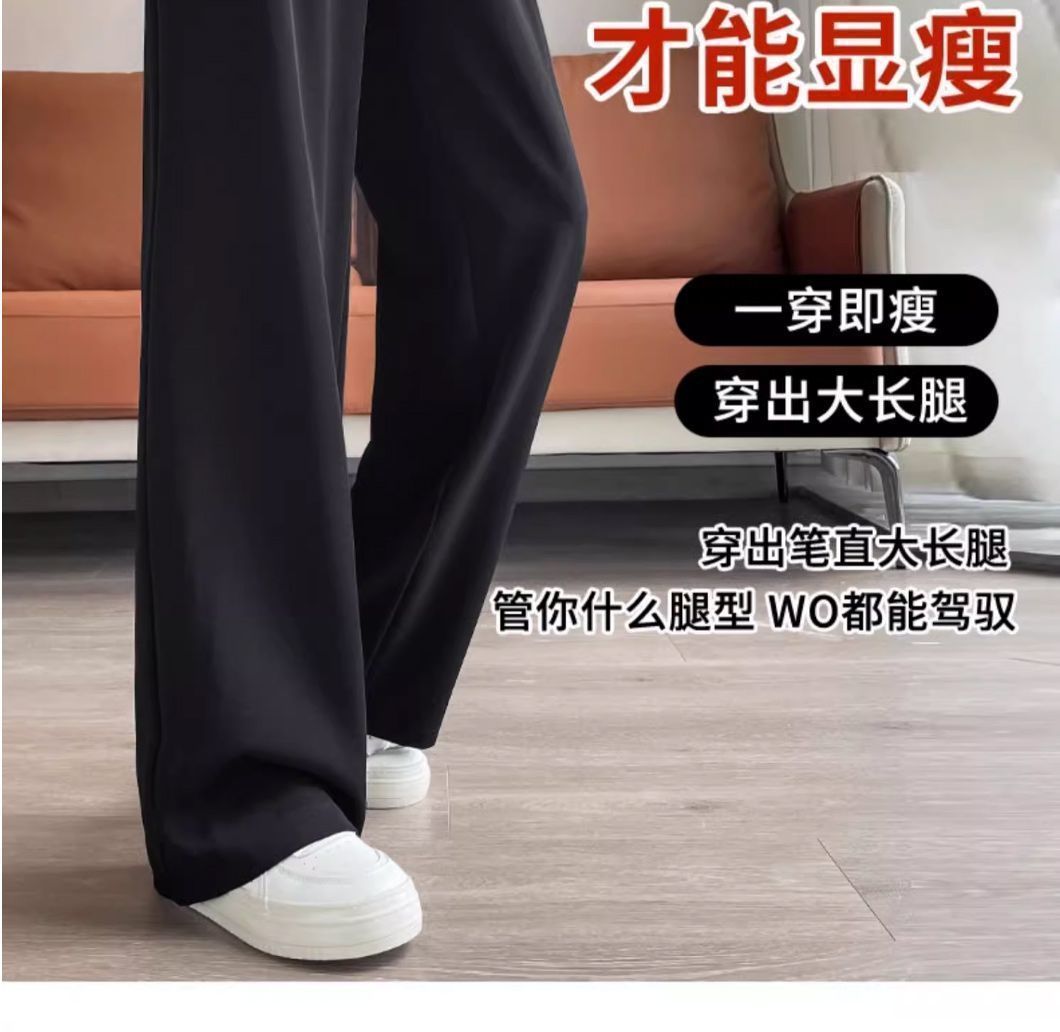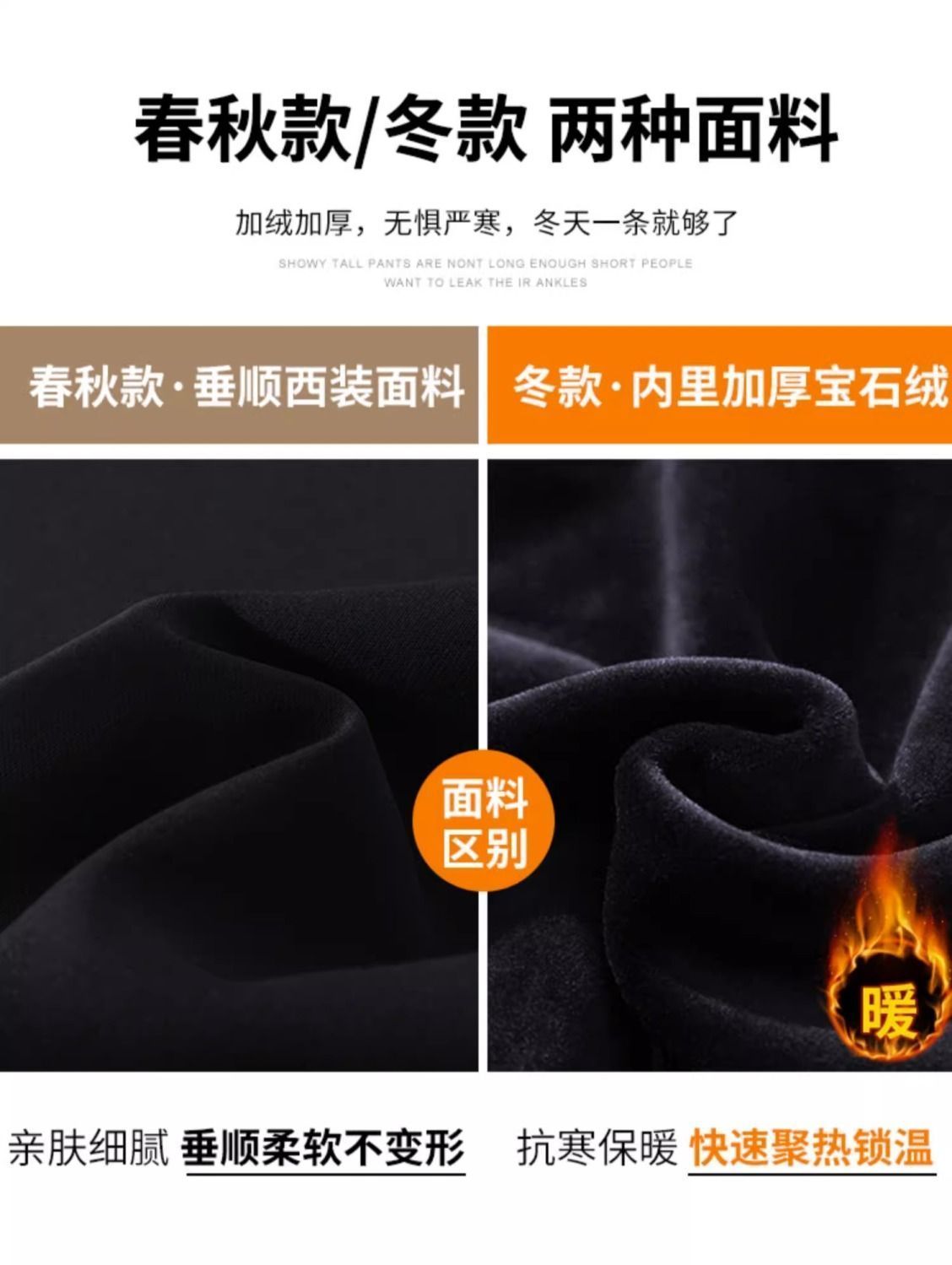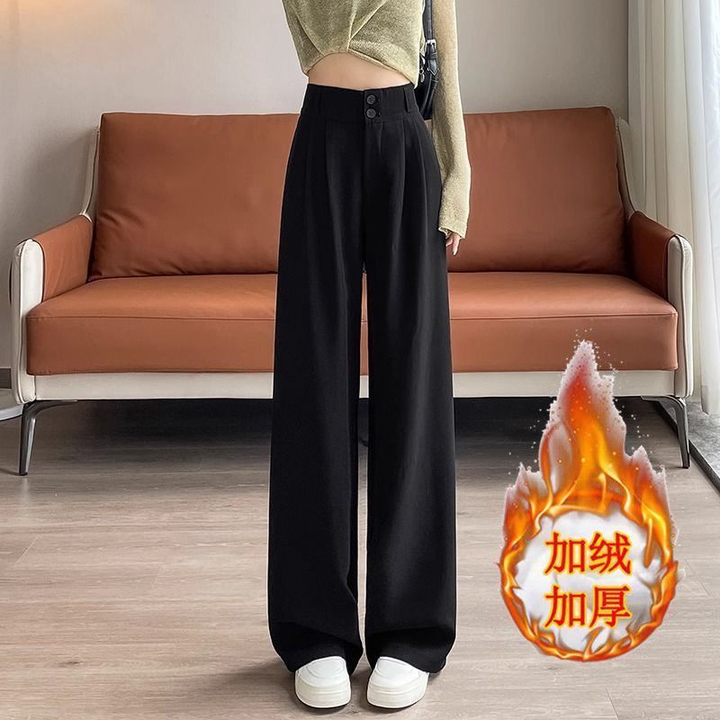 加绒加厚黑色西装裤子女秋冬款2024新款直筒小个子显瘦窄版阔腿裤