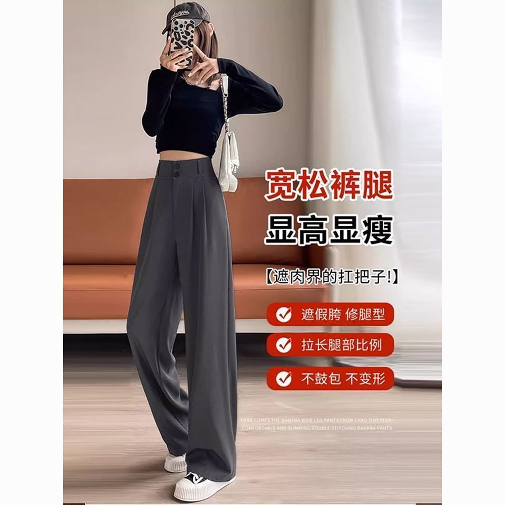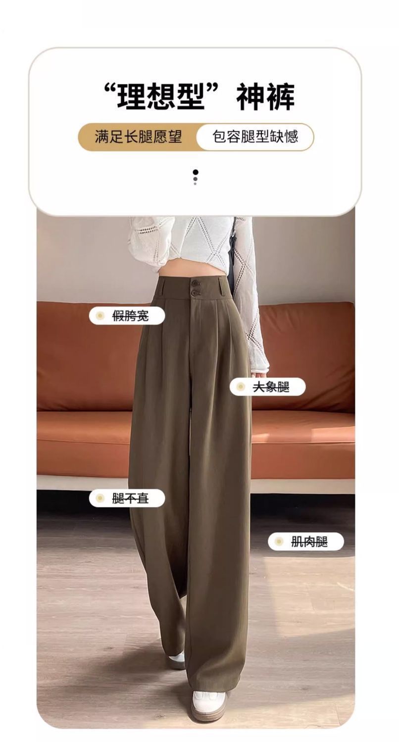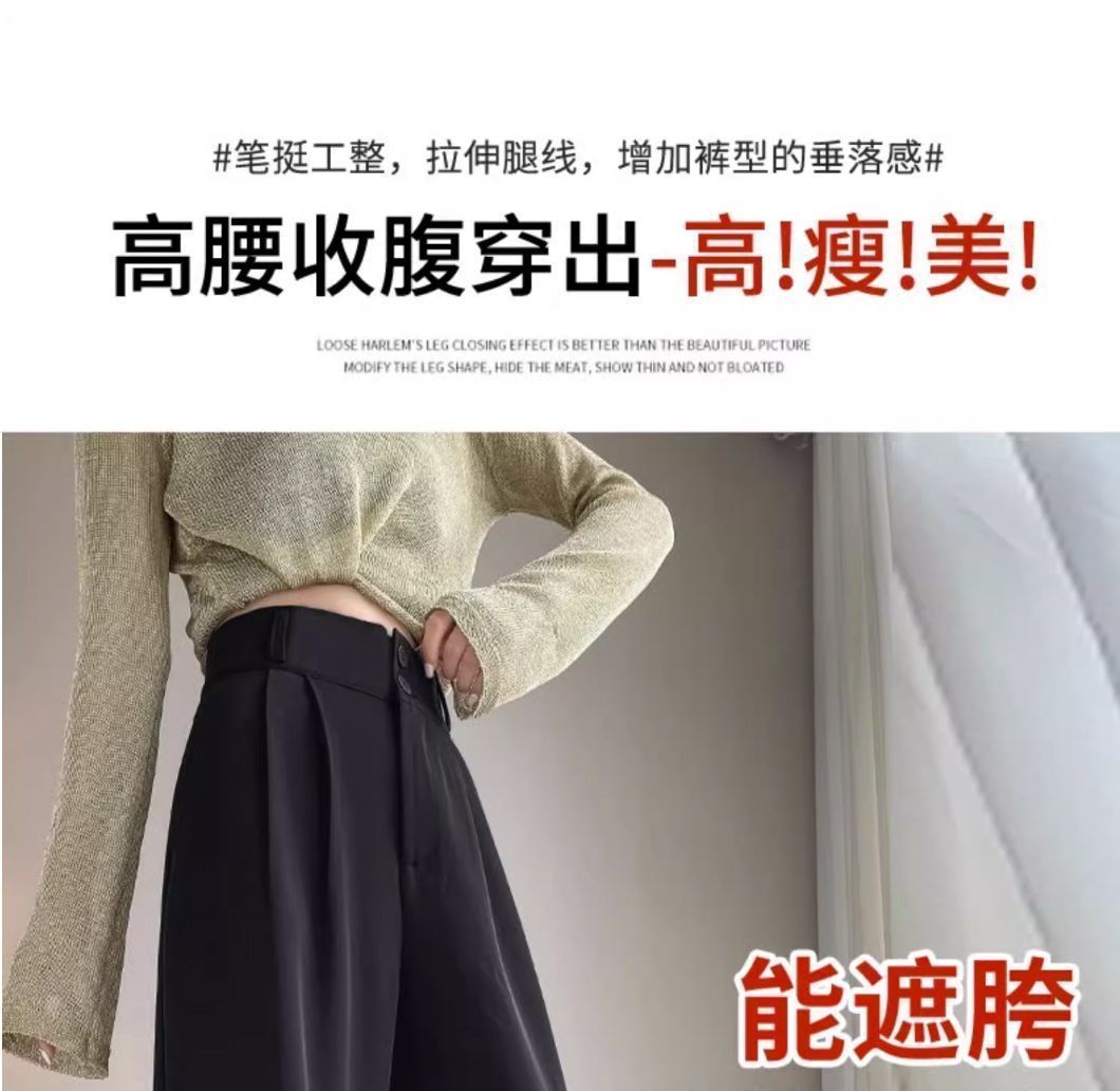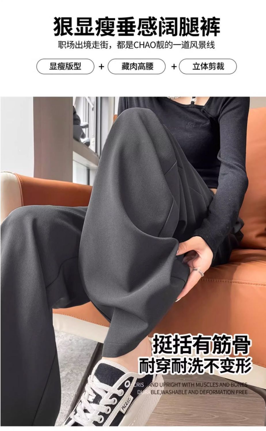 加绒加厚黑色西装裤子女秋冬款2024新款直筒小个子显瘦窄版阔腿裤