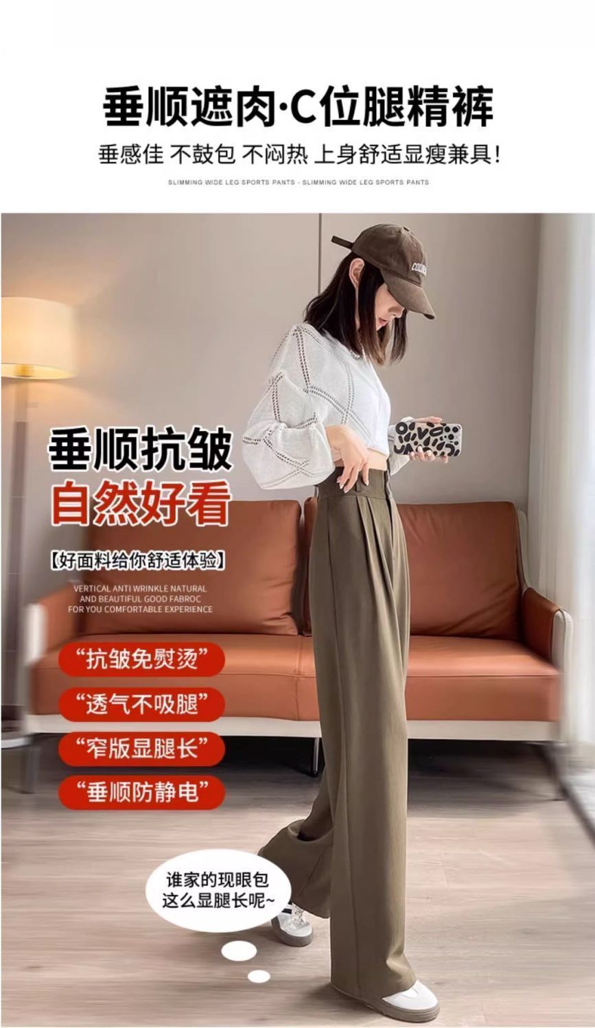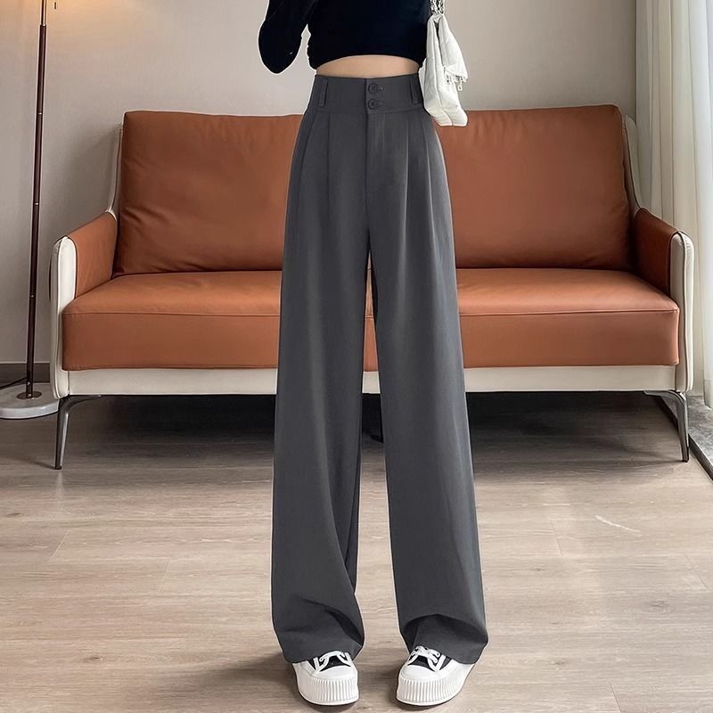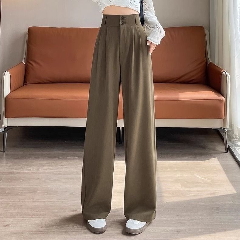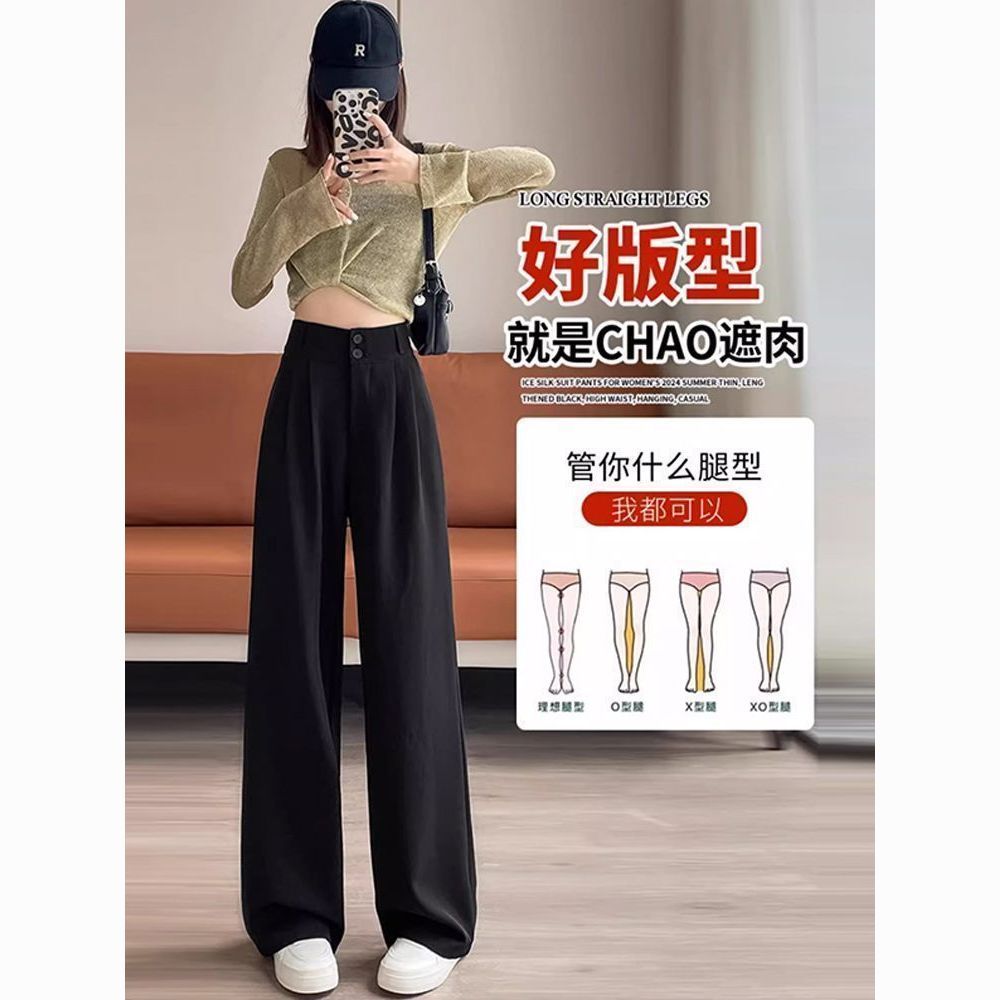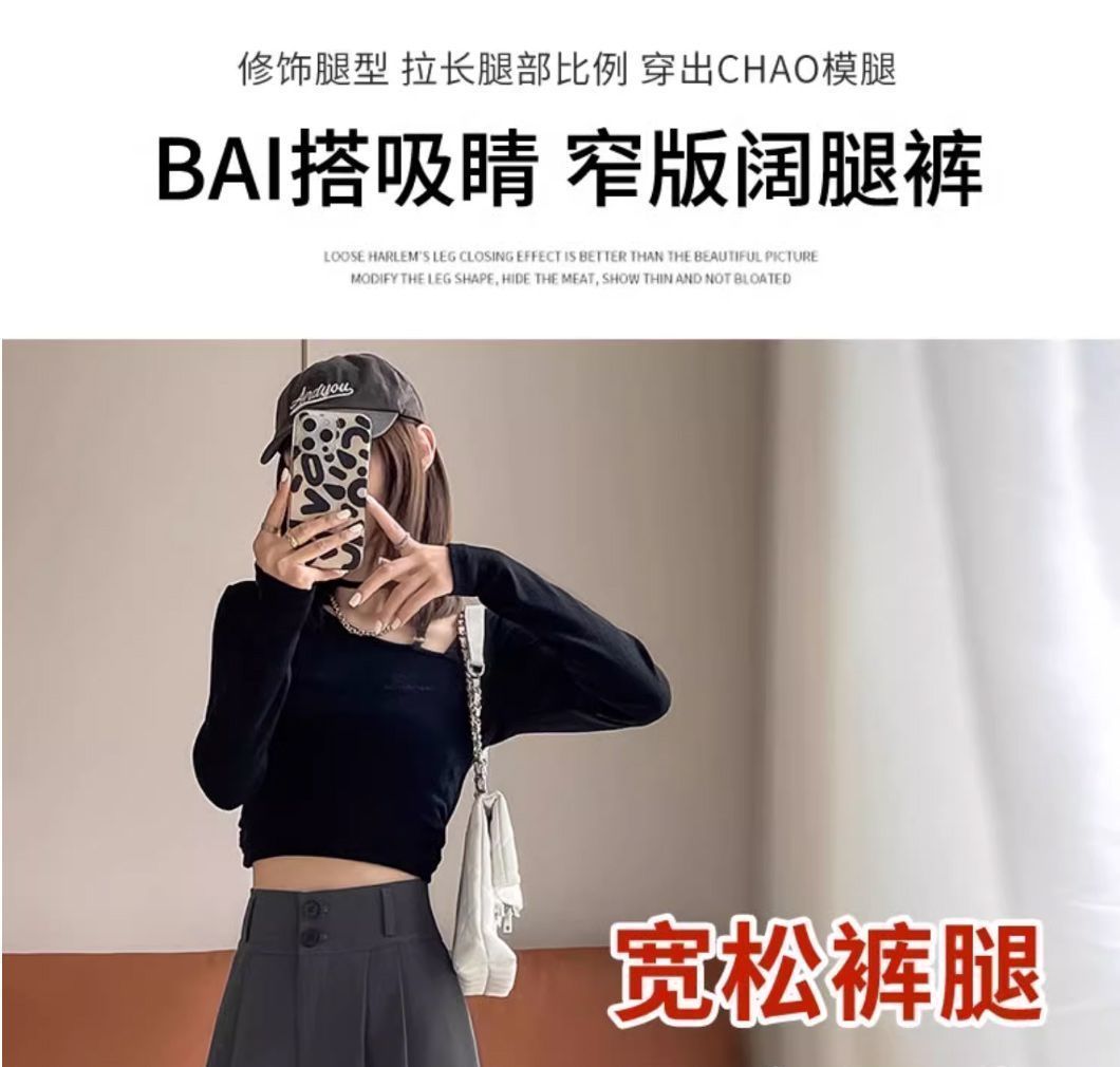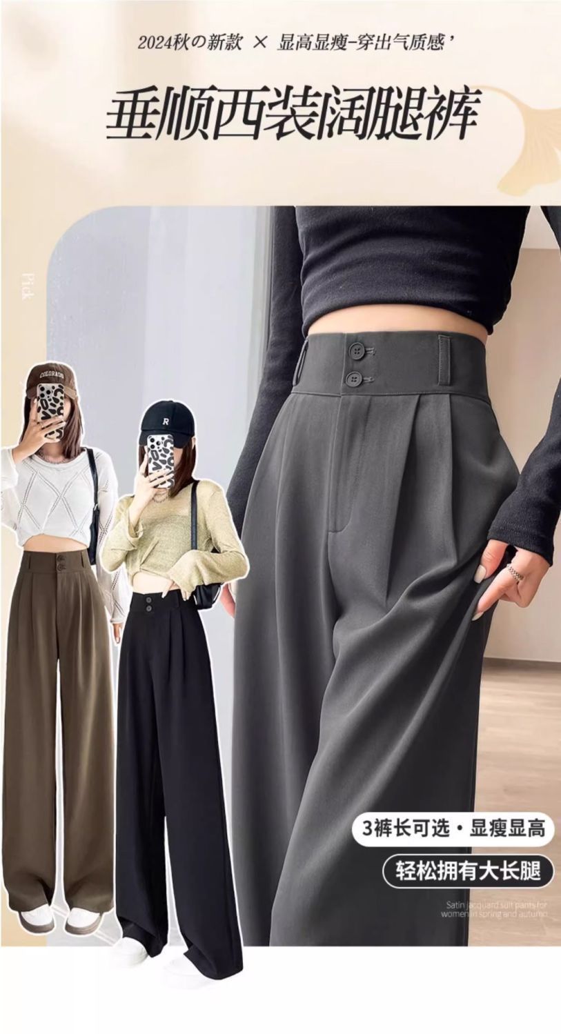 加绒加厚黑色西装裤子女秋冬款2024新款直筒小个子显瘦窄版阔腿裤