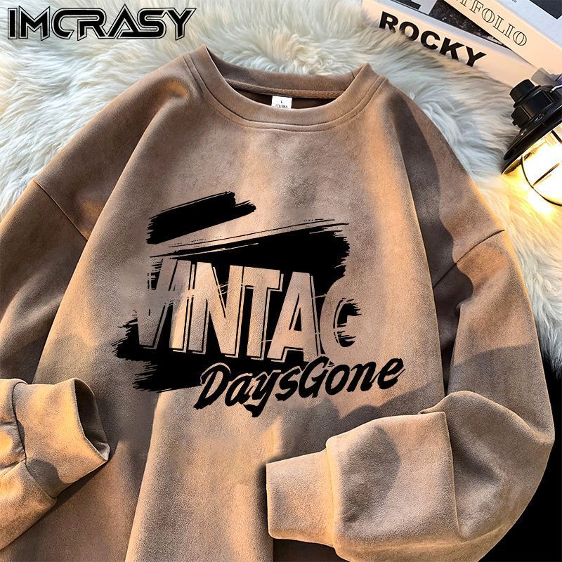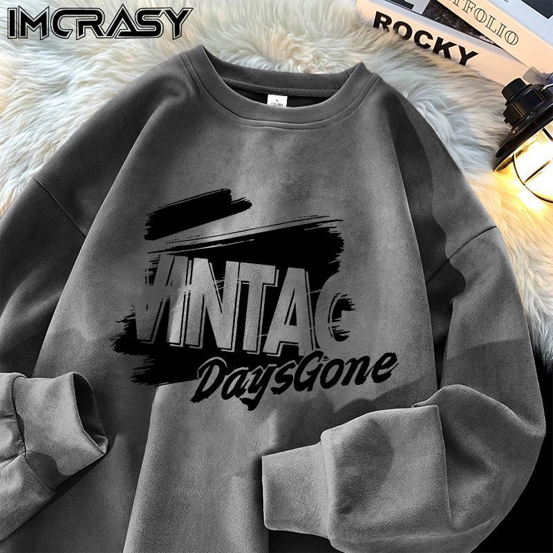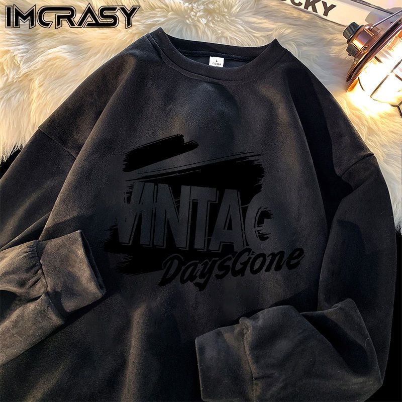 2024秋冬加绒款长袖卫衣男士春秋季新款潮牌圆领休闲印花上衣