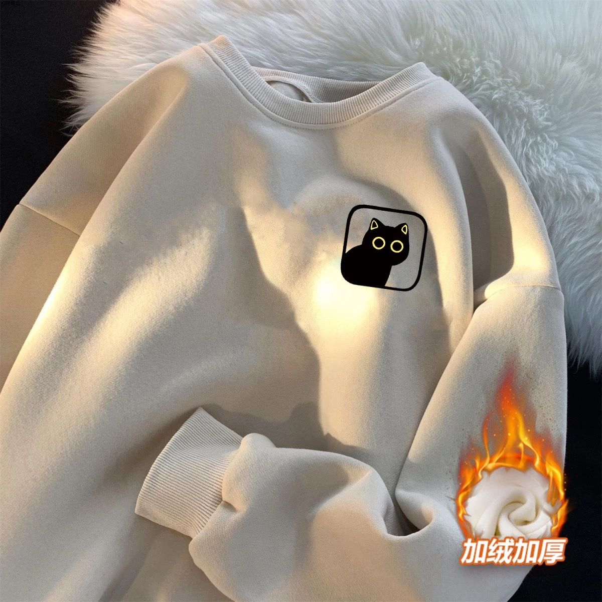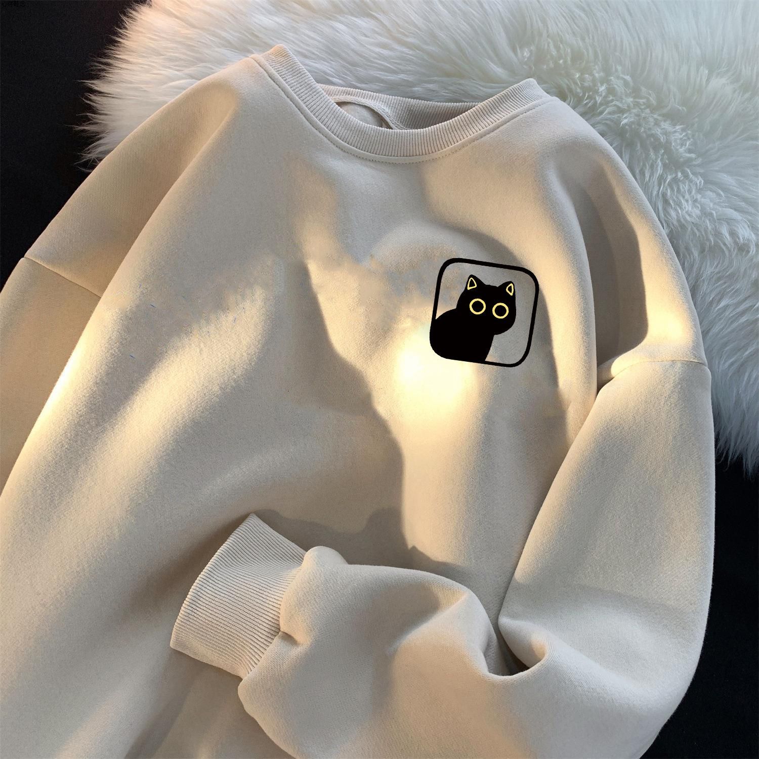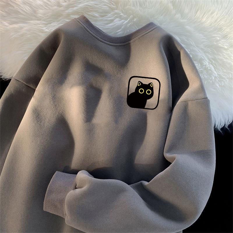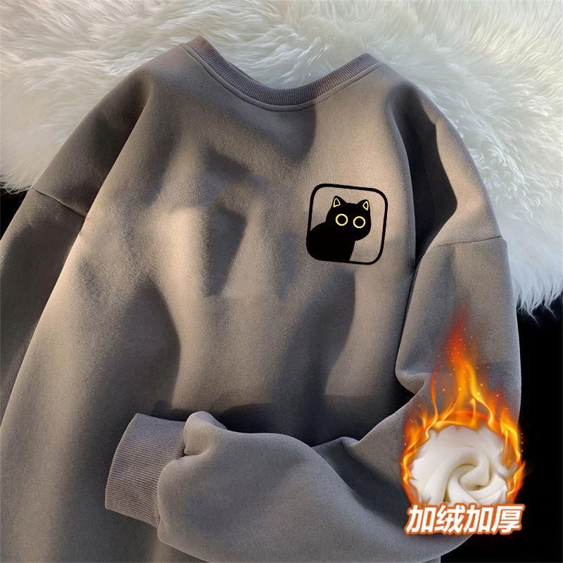卫衣加绒加厚男女简约宽松港风圆领套头ins潮牌百搭印花上衣长袖