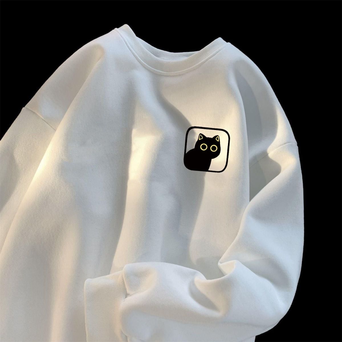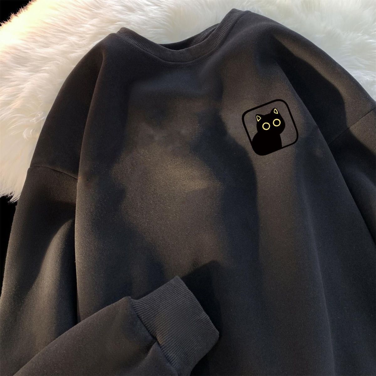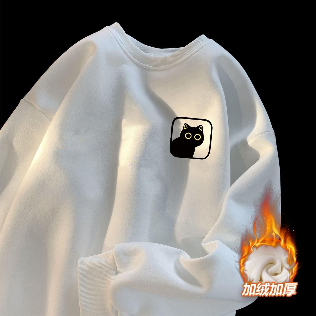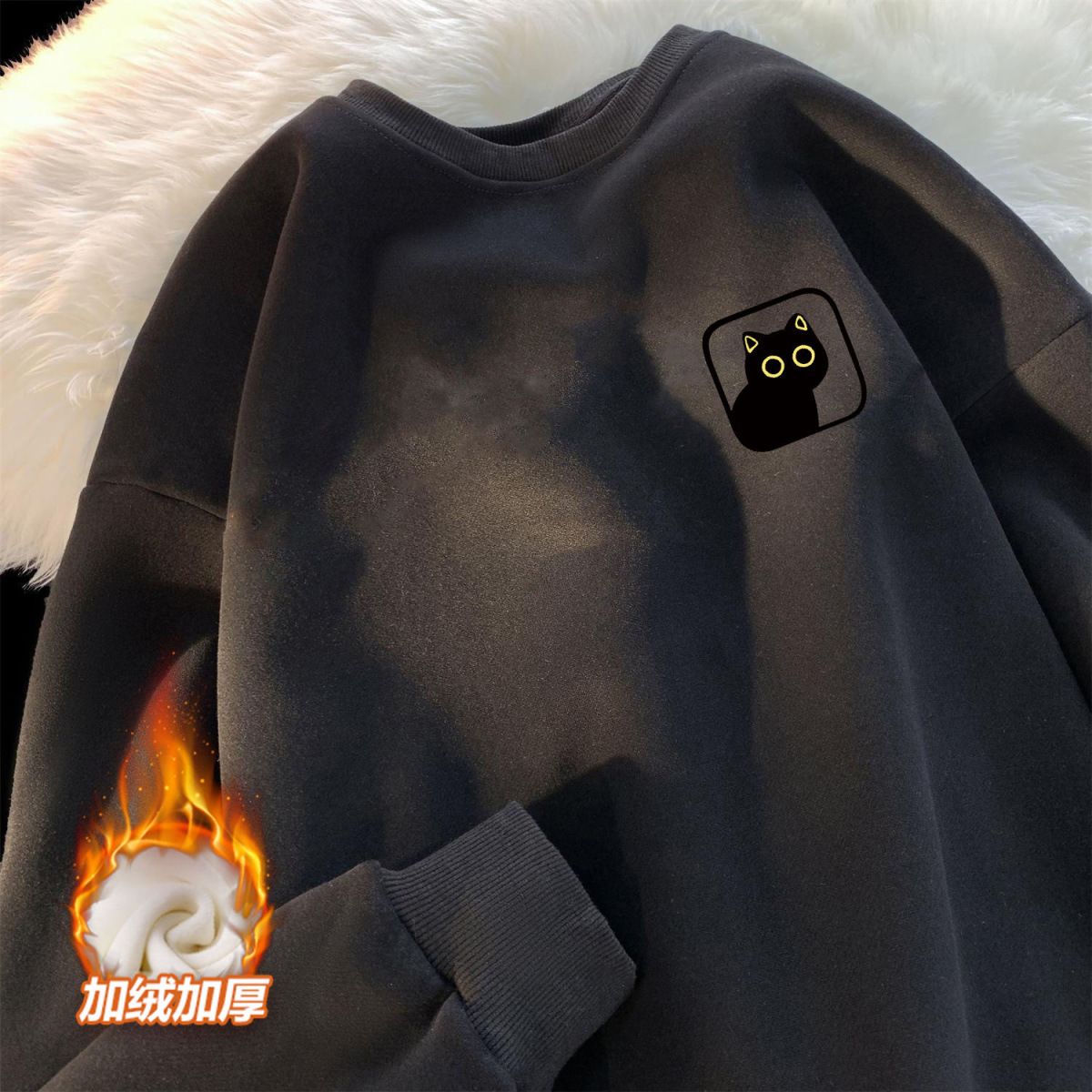 卫衣加绒加厚男女简约宽松港风圆领套头ins潮牌百搭印花上衣长袖