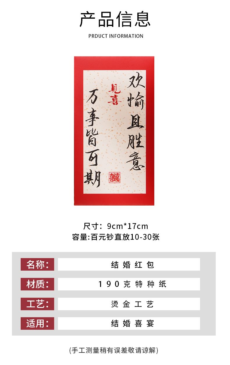 结婚红包2024新款中式手写个性创意千元随礼改口随份子专用利是封