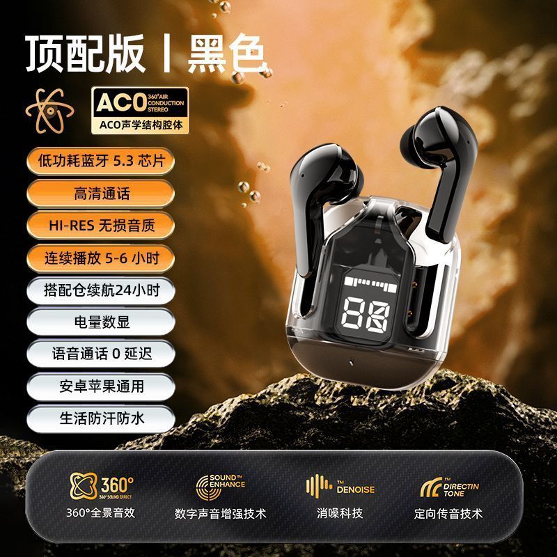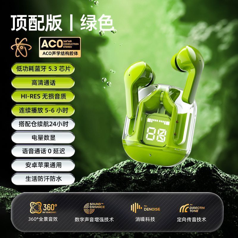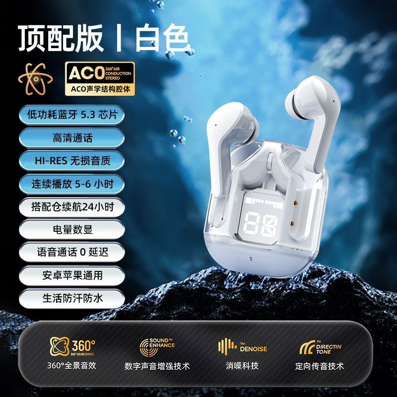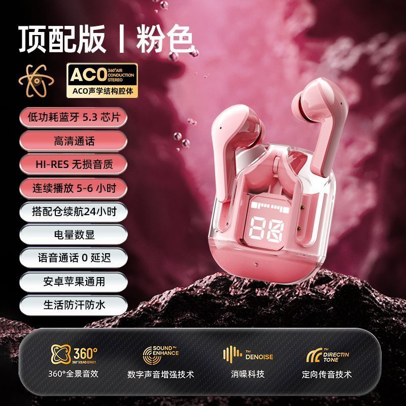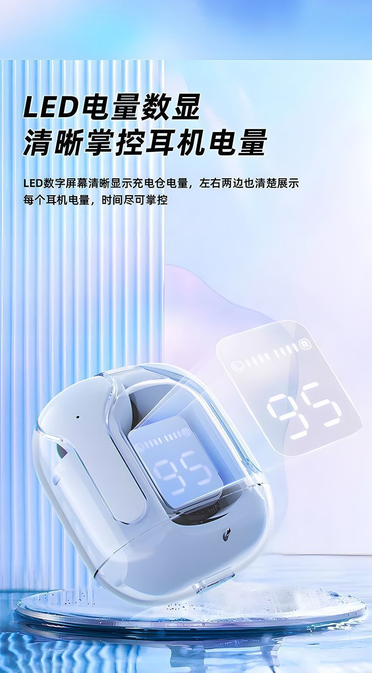 真无线蓝牙耳机数显新款透明入耳式安卓超长续航降噪苹果运动通用