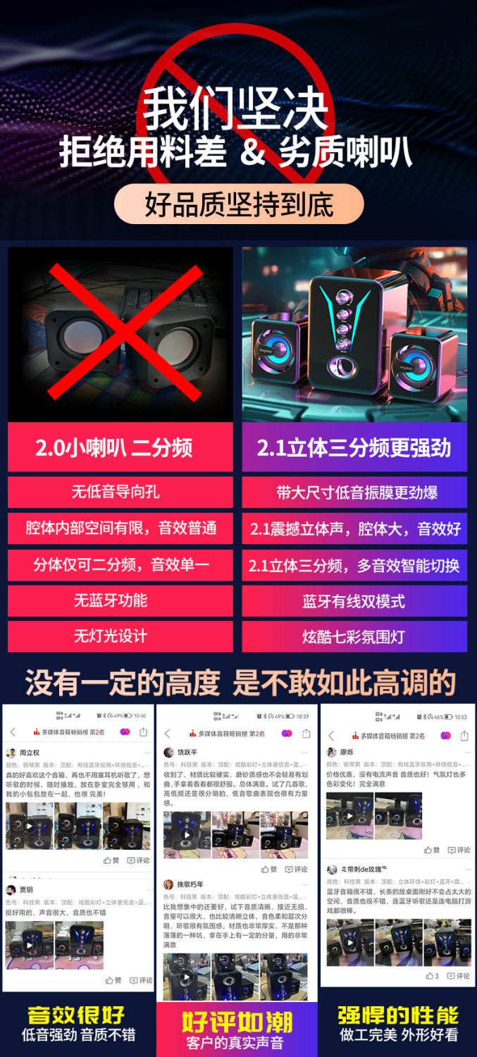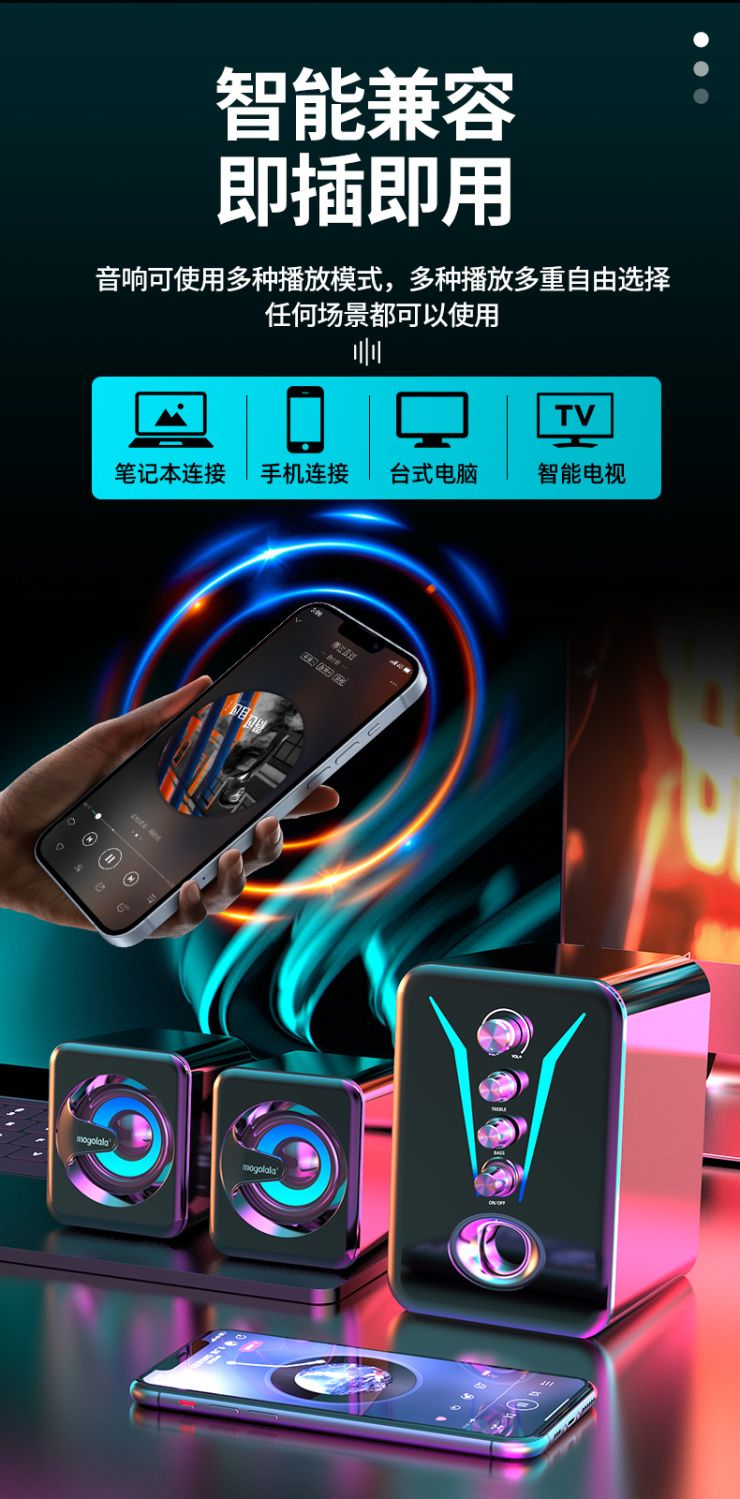 台式电脑音响桌面有线usb音箱大音量炫彩低音炮高音质家用重低音