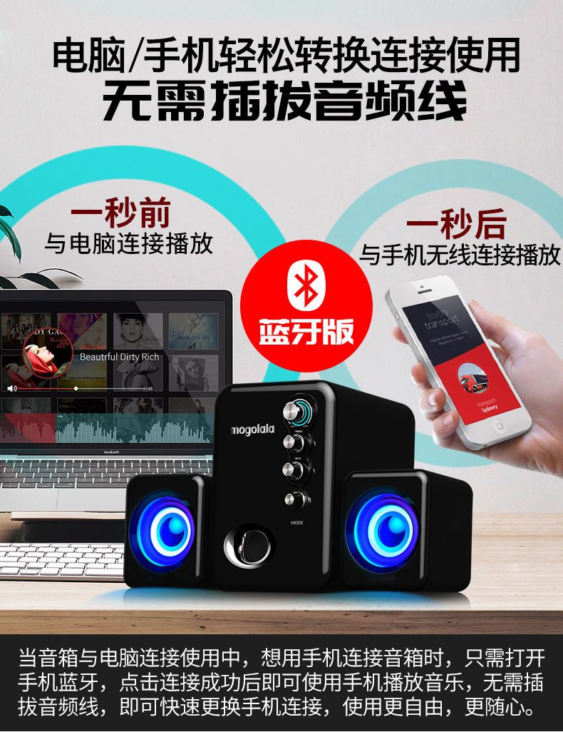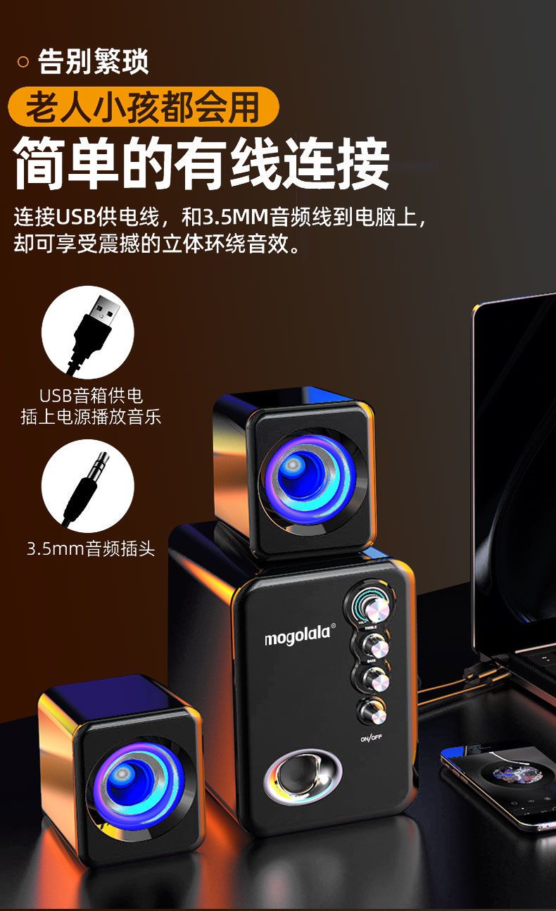 Q8电脑蓝牙音响台式家用大音量高音质有线多媒体小音箱超重低音炮