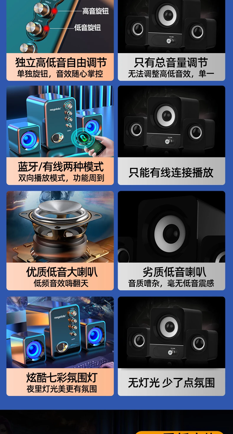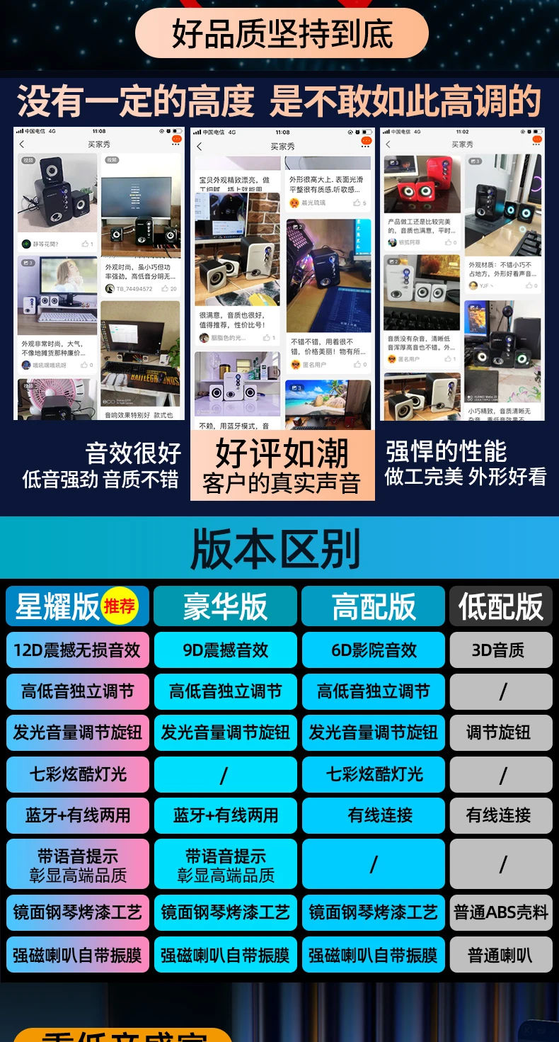 | 高配版:高中低全频音效+有线/蓝牙+炫酷灯 | USD $11.16 | 99999 piece available |