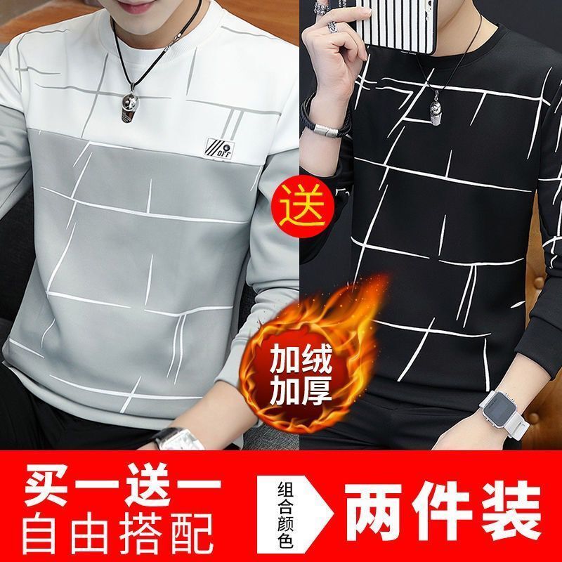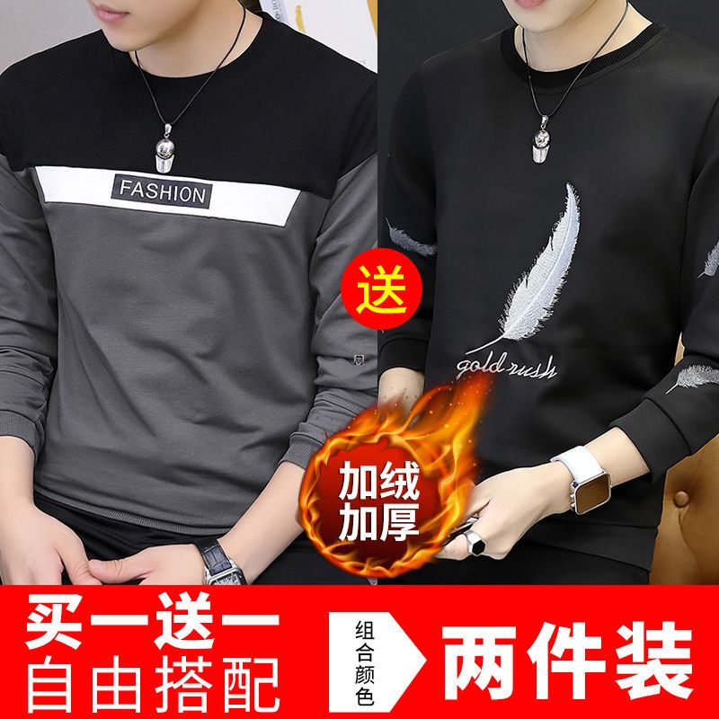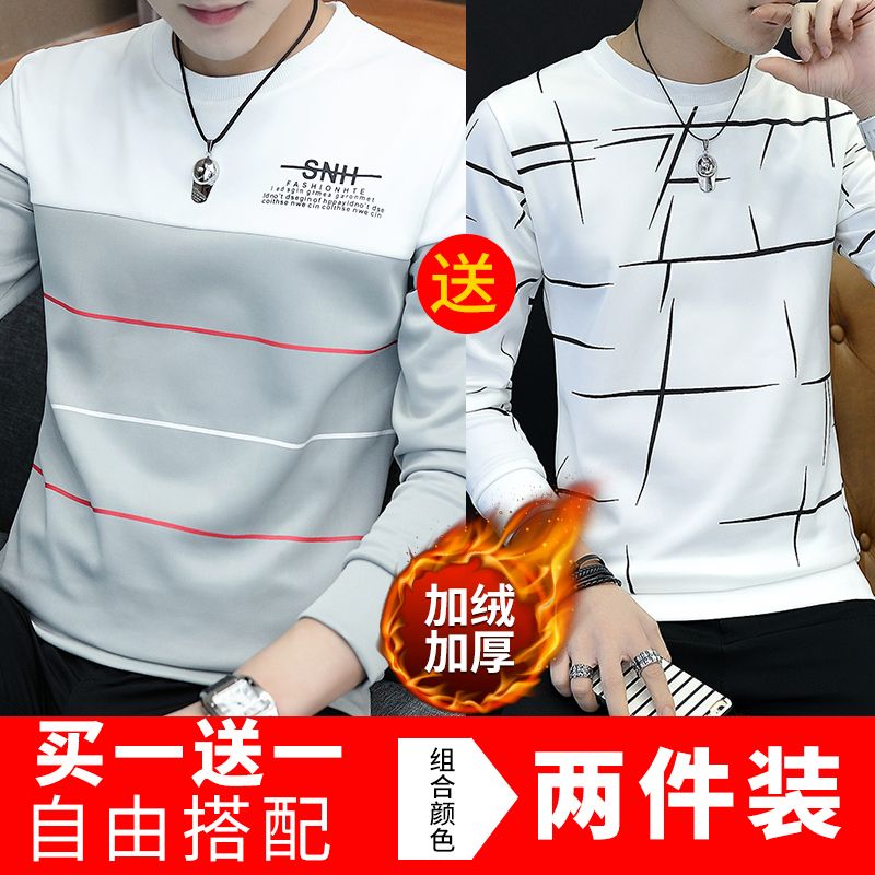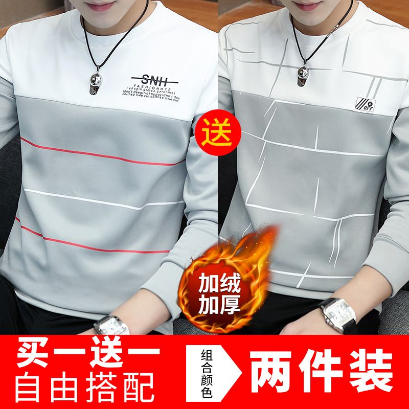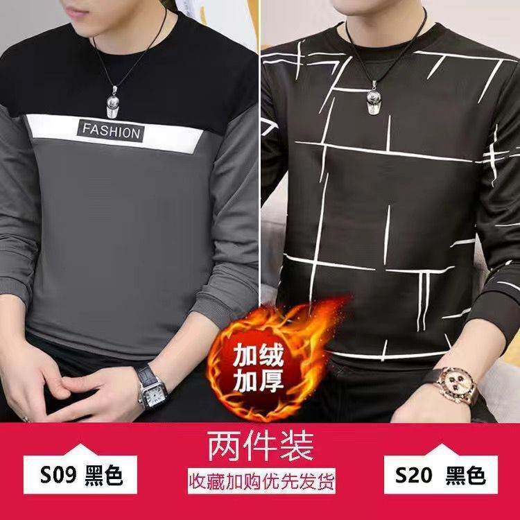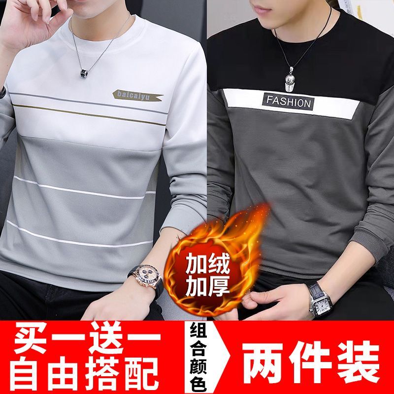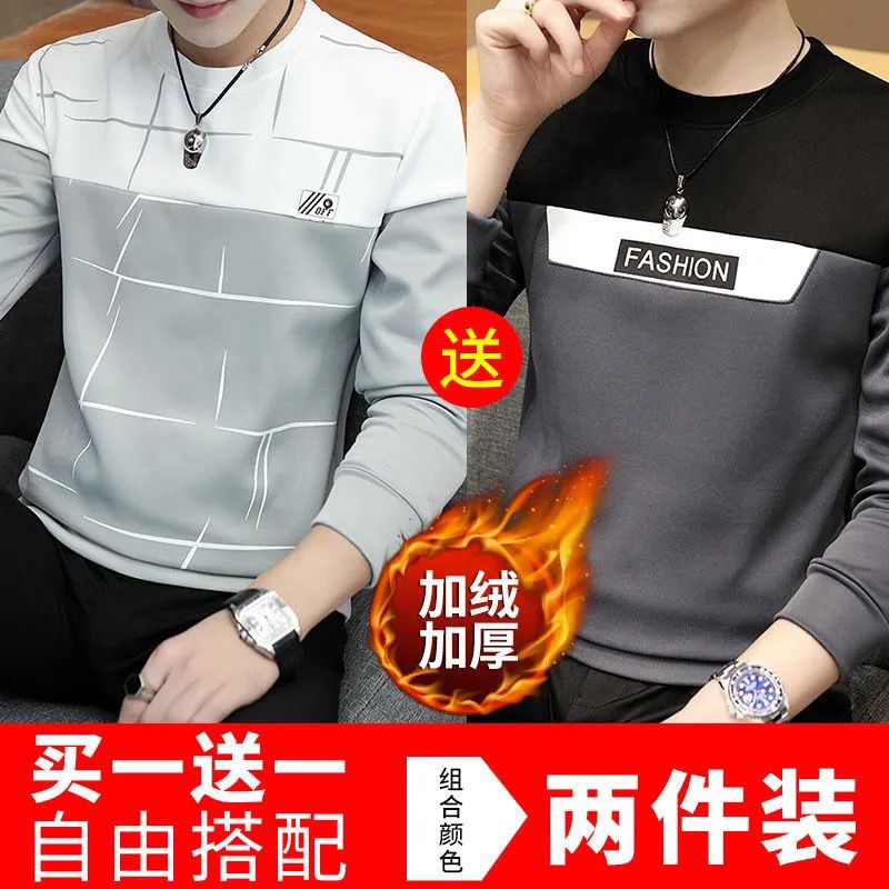 秋冬季男士长袖t恤加绒加厚保暖卫衣男小衫上衣服针织打底衫秋装