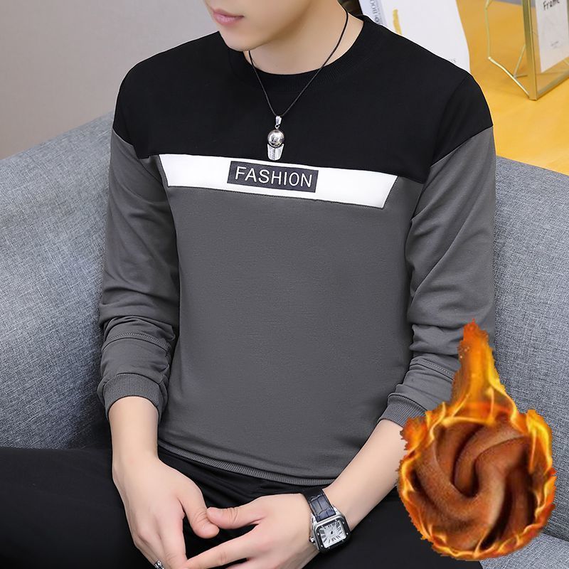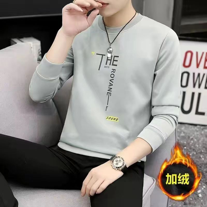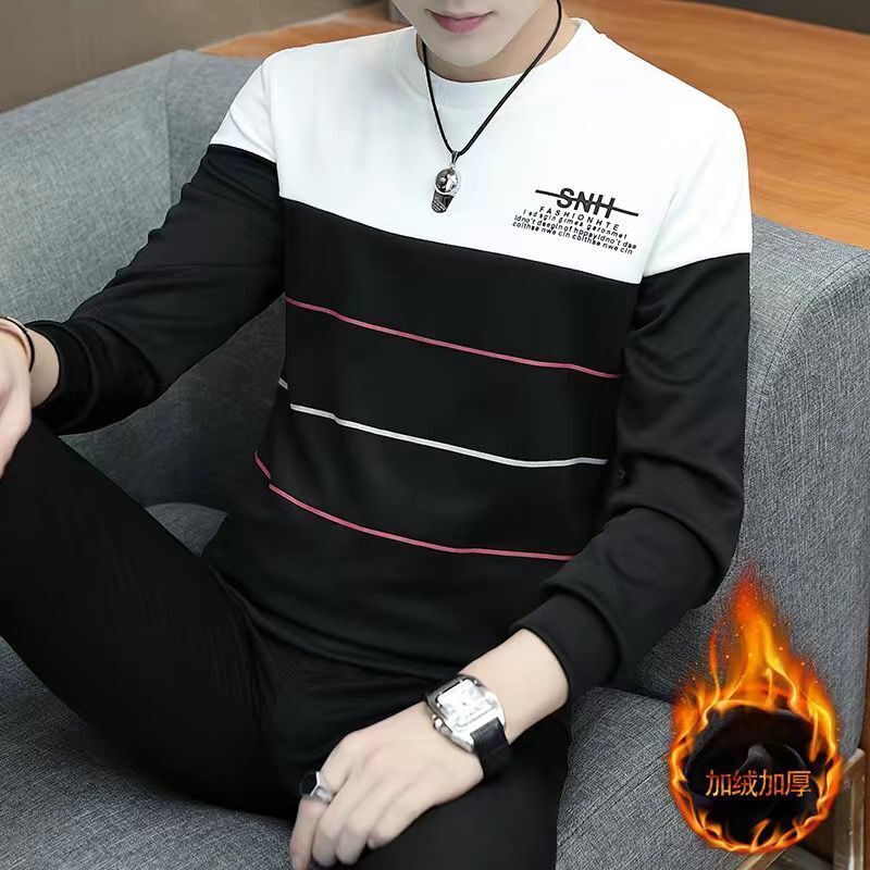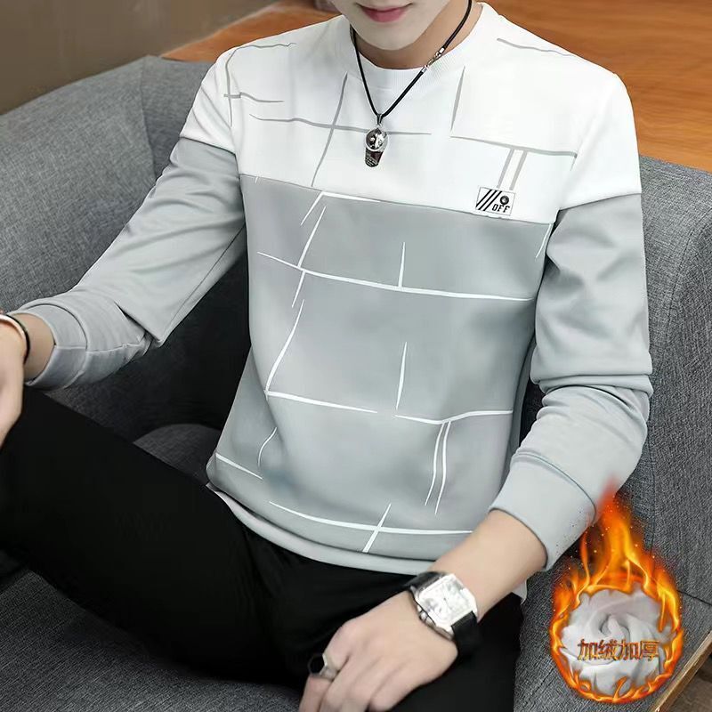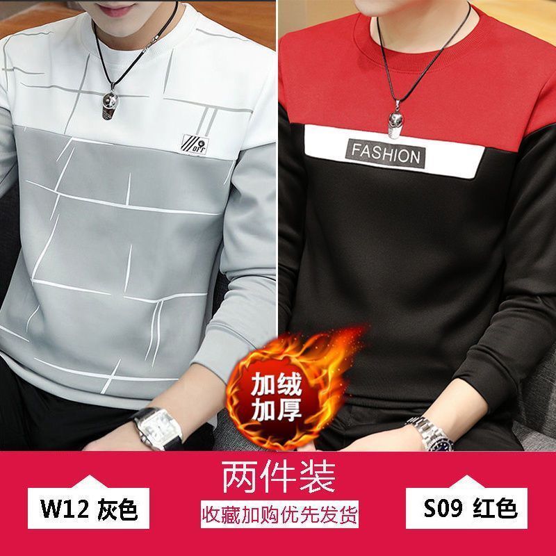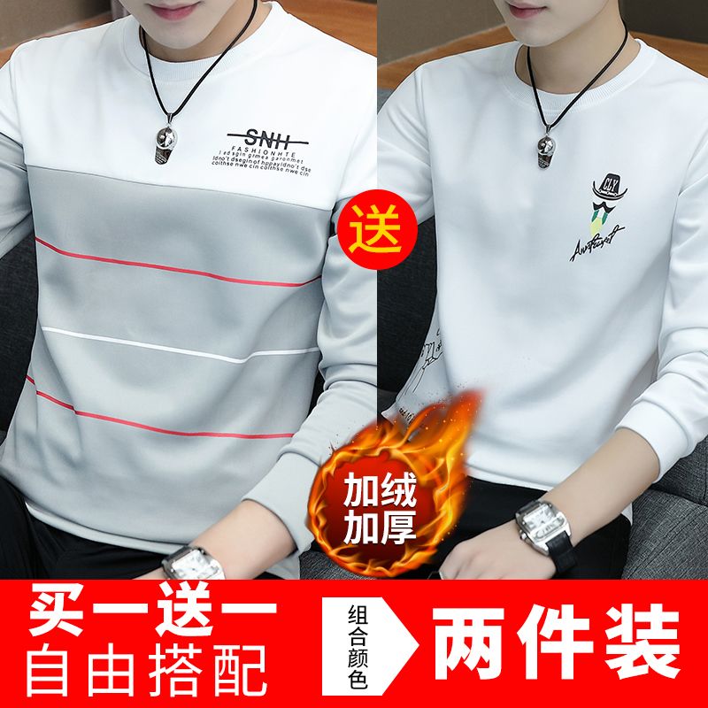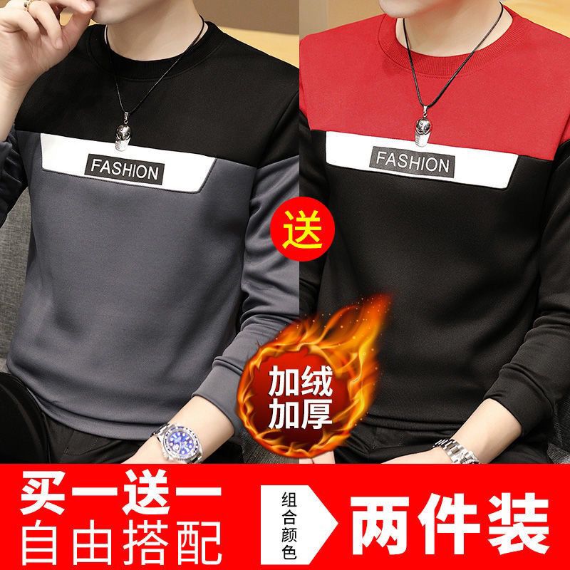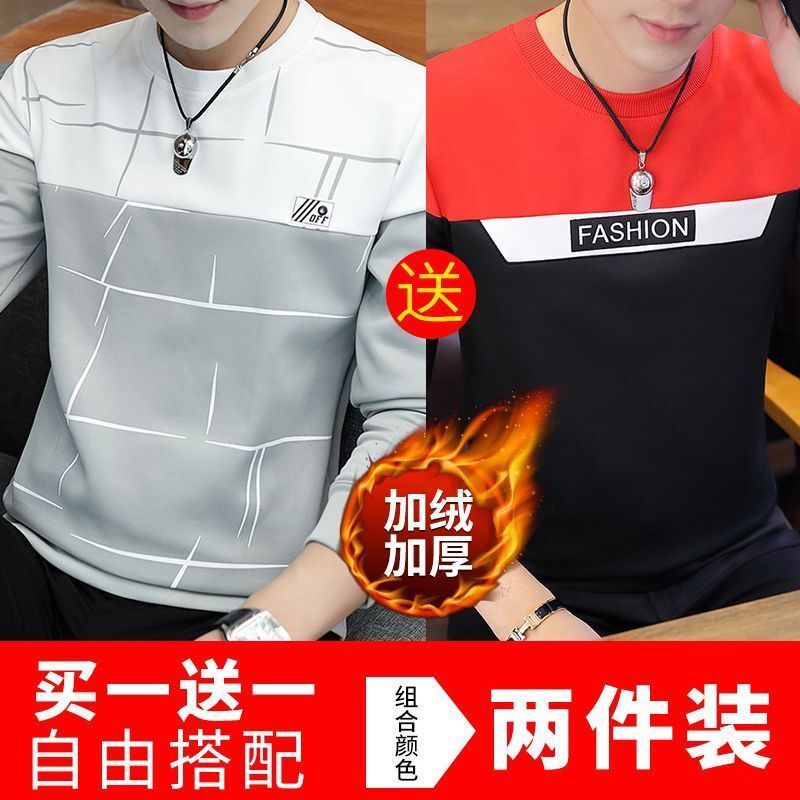 秋冬季男士长袖t恤加绒加厚保暖卫衣男小衫上衣服针织打底衫秋装