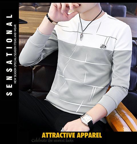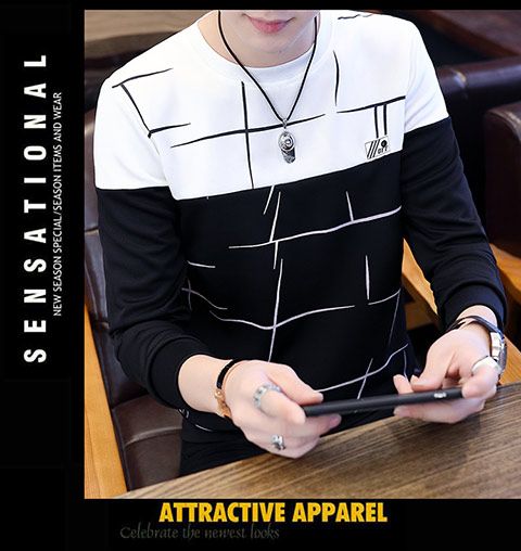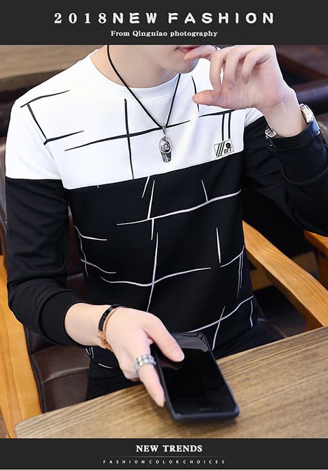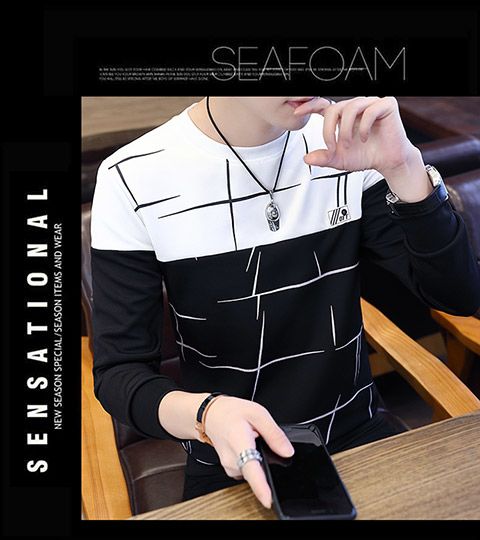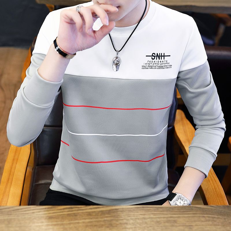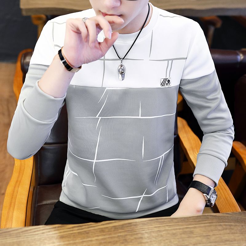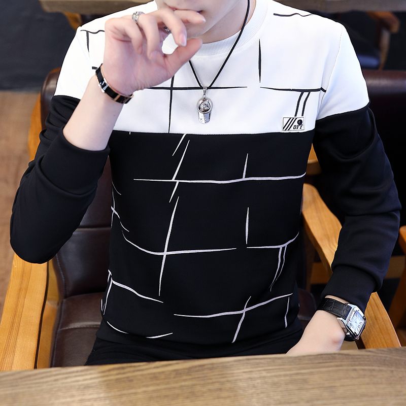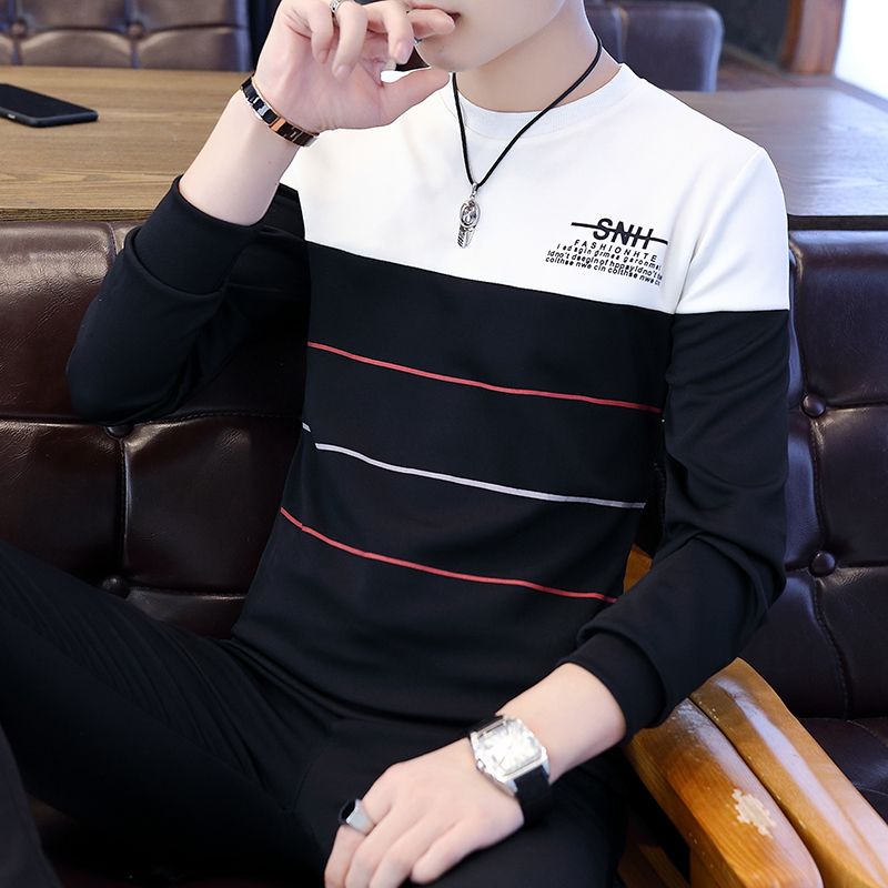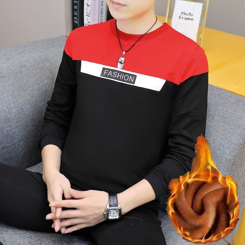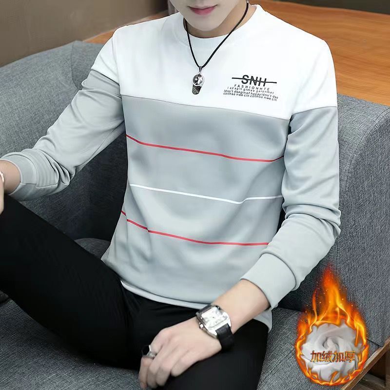 秋冬季男士长袖t恤加绒加厚保暖卫衣男小衫上衣服针织打底衫秋装