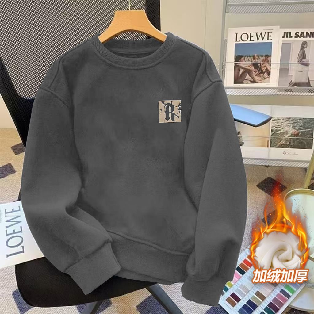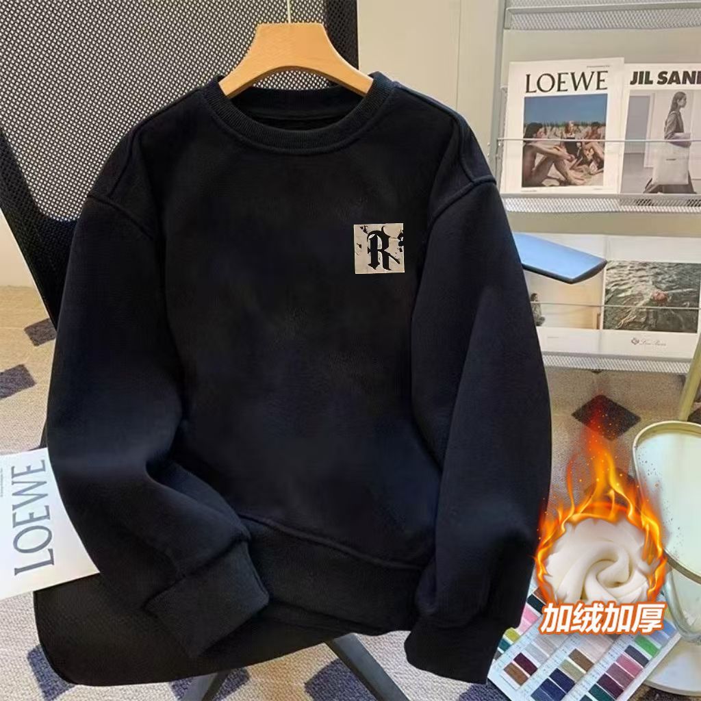 潮牌不起球卫衣男新款宽松百搭套头潮流加绒圆领上衣长袖外套男