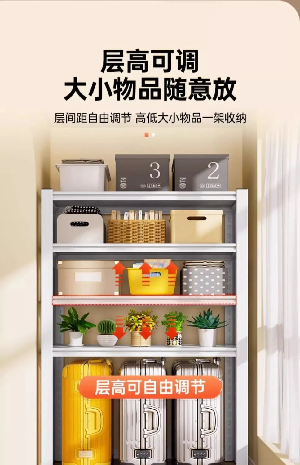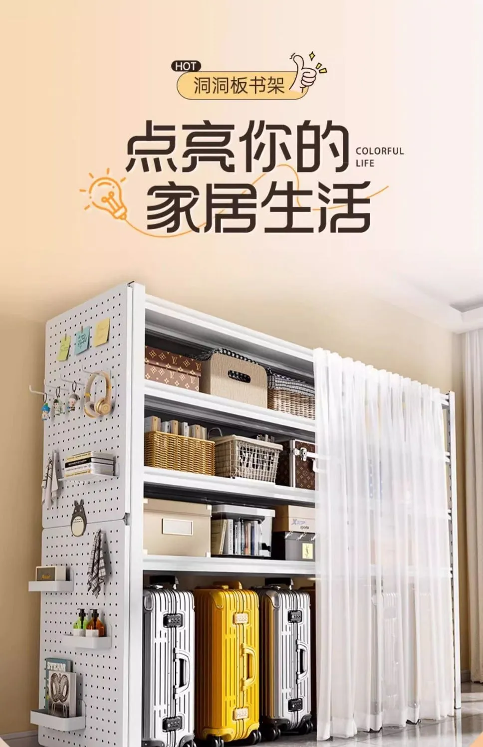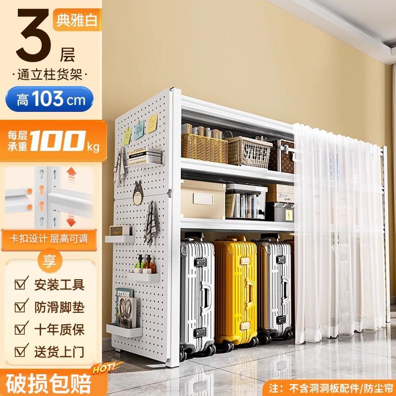 防尘帘置物架多层家用货架行李箱落地客厅收纳架洞洞板储物铁架子