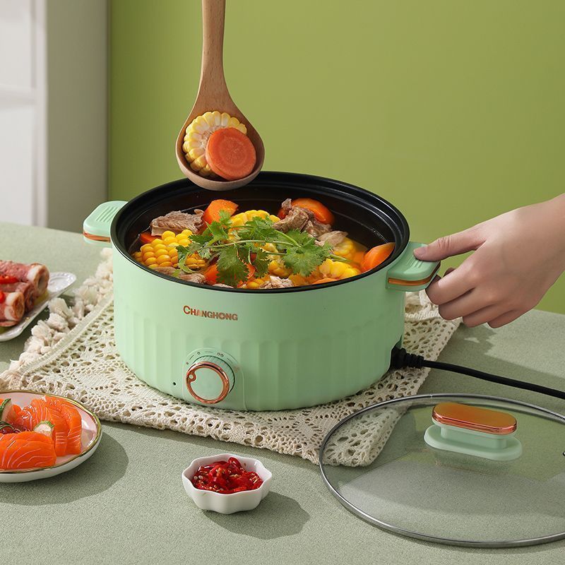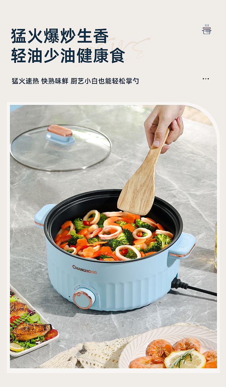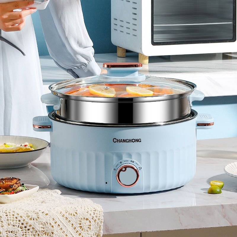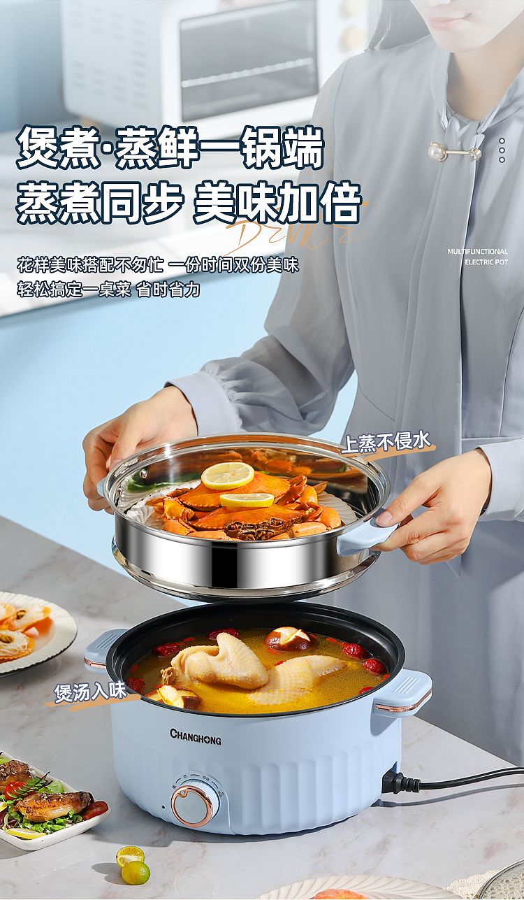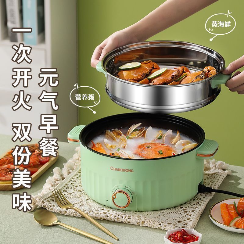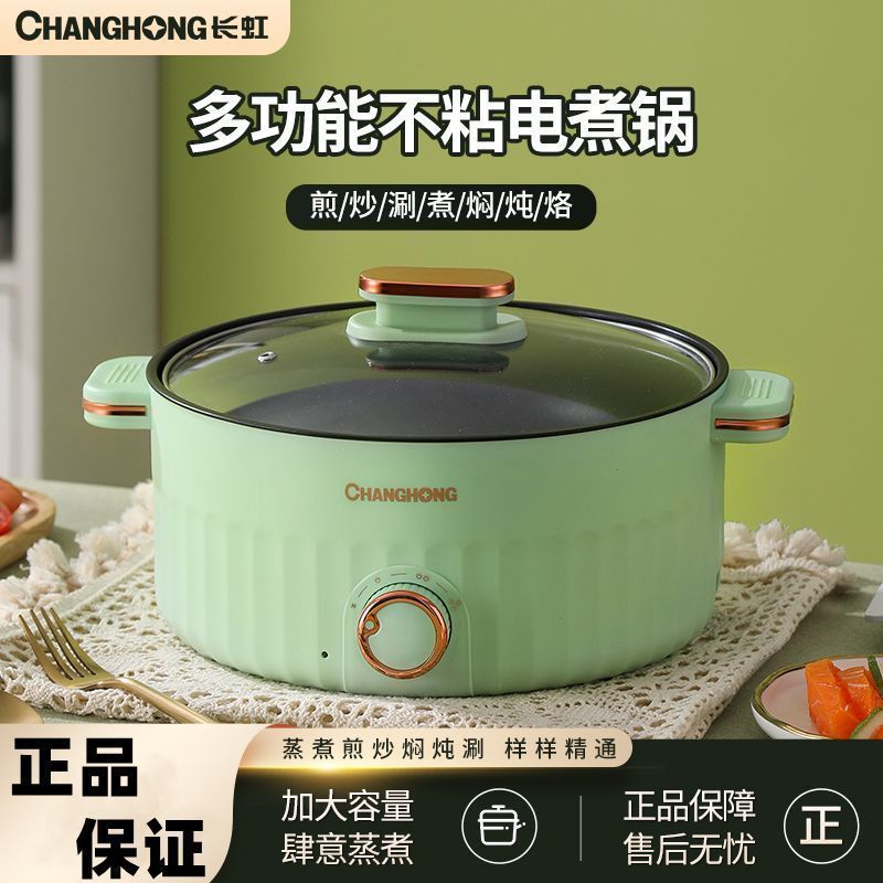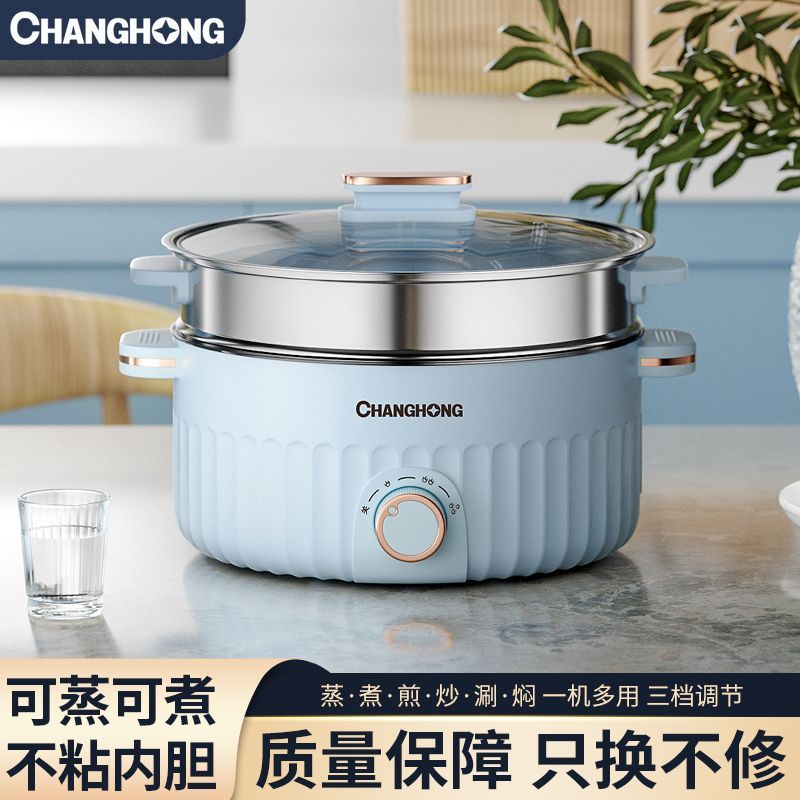 长虹电煮锅家用多功能电炒锅学生宿舍煮面小电锅蒸煮一体电火锅