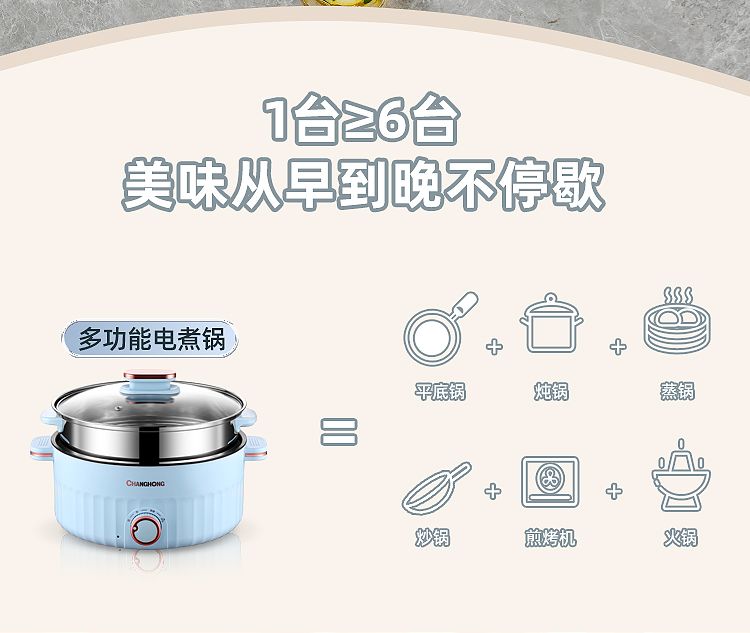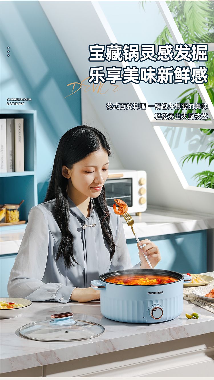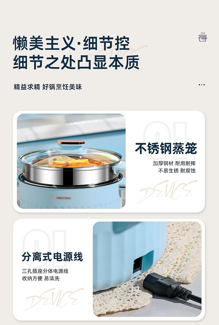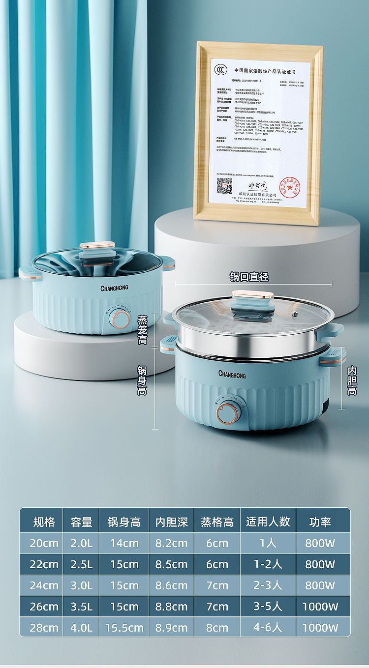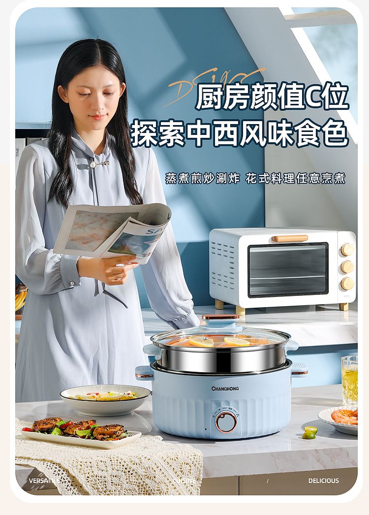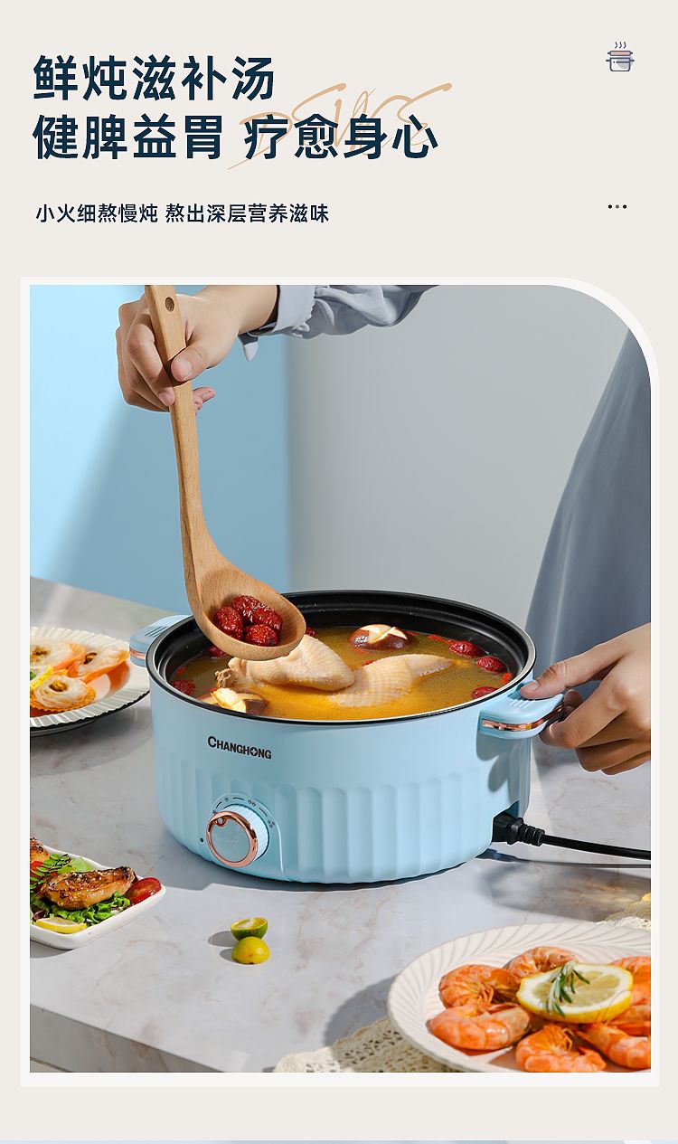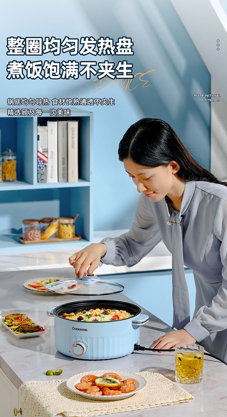 长虹电煮锅家用多功能电炒锅学生宿舍煮面小电锅蒸煮一体电火锅
