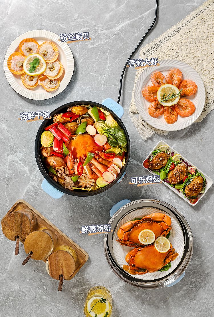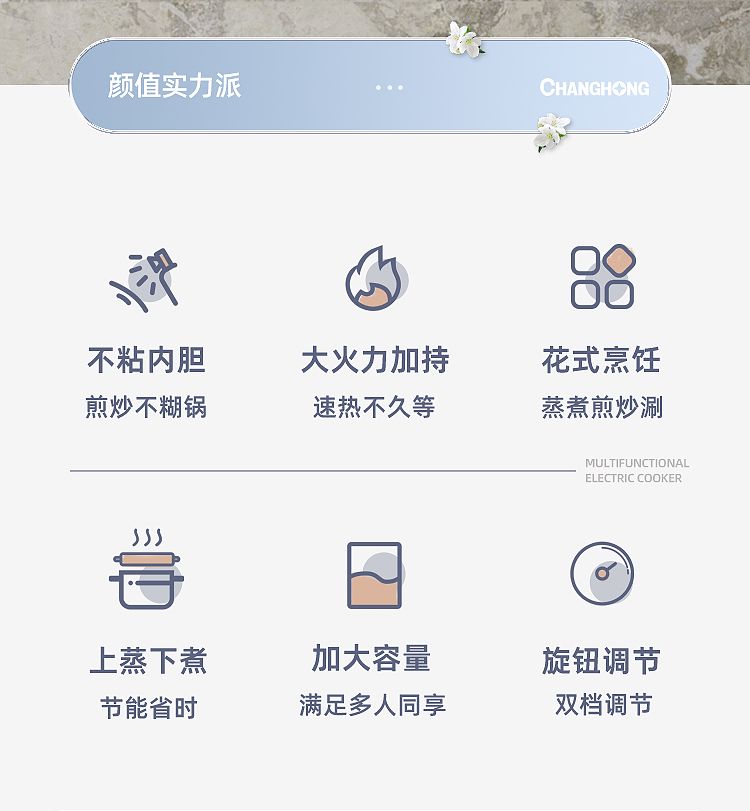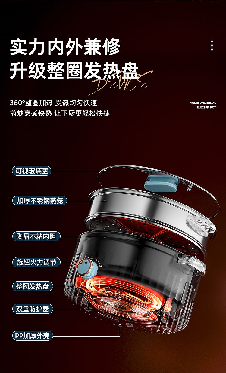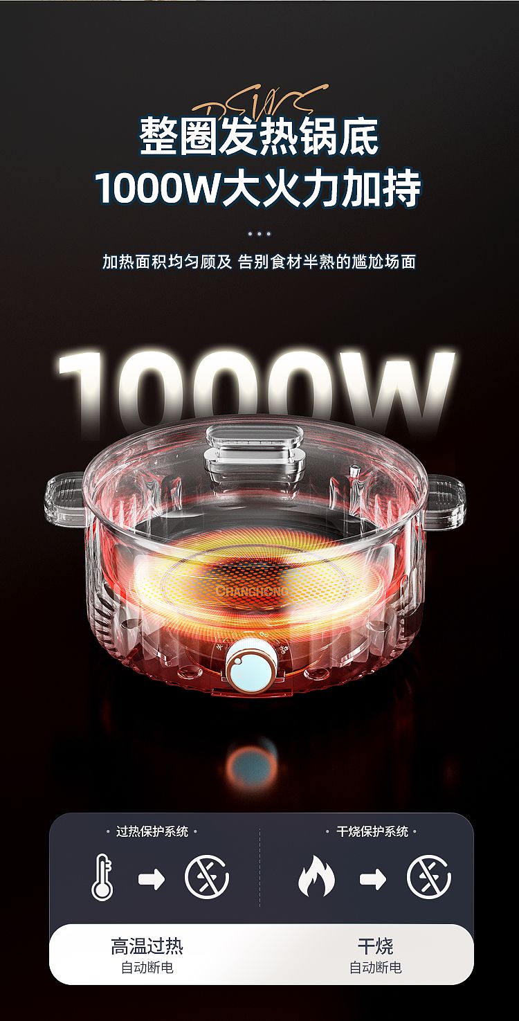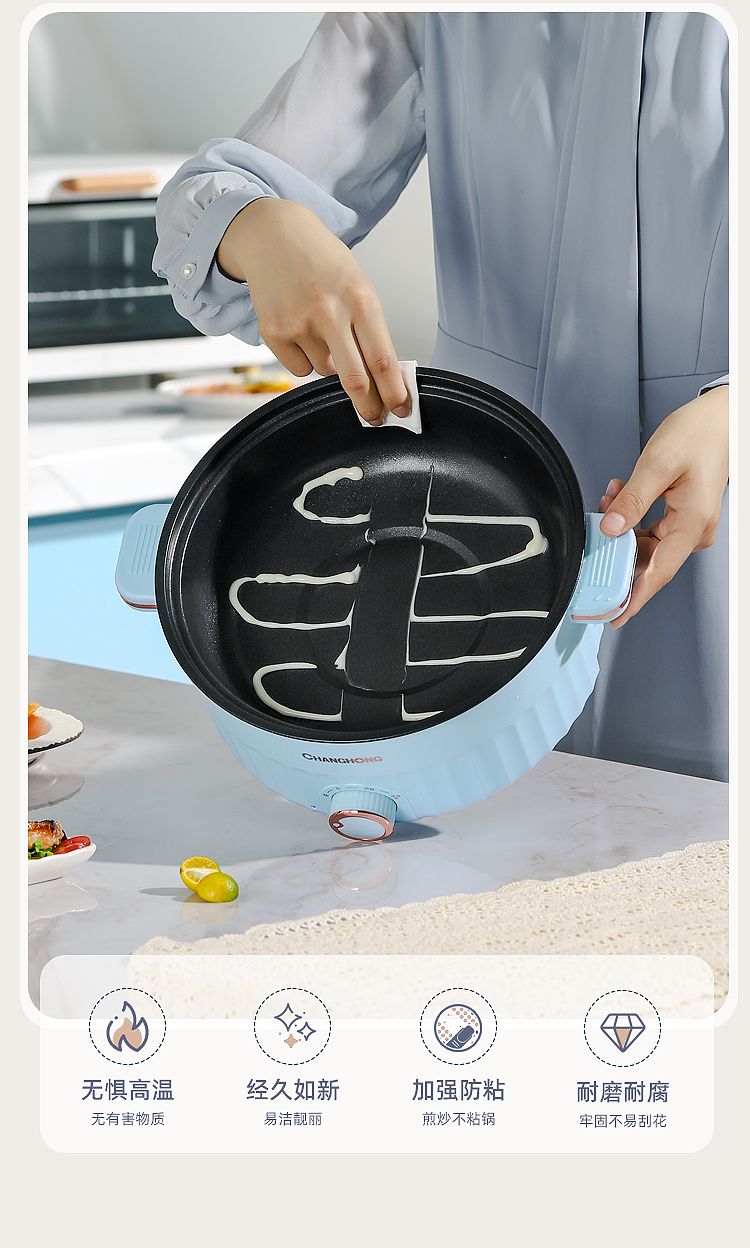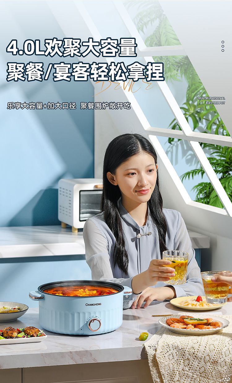 长虹电煮锅家用多功能电炒锅学生宿舍煮面小电锅蒸煮一体电火锅