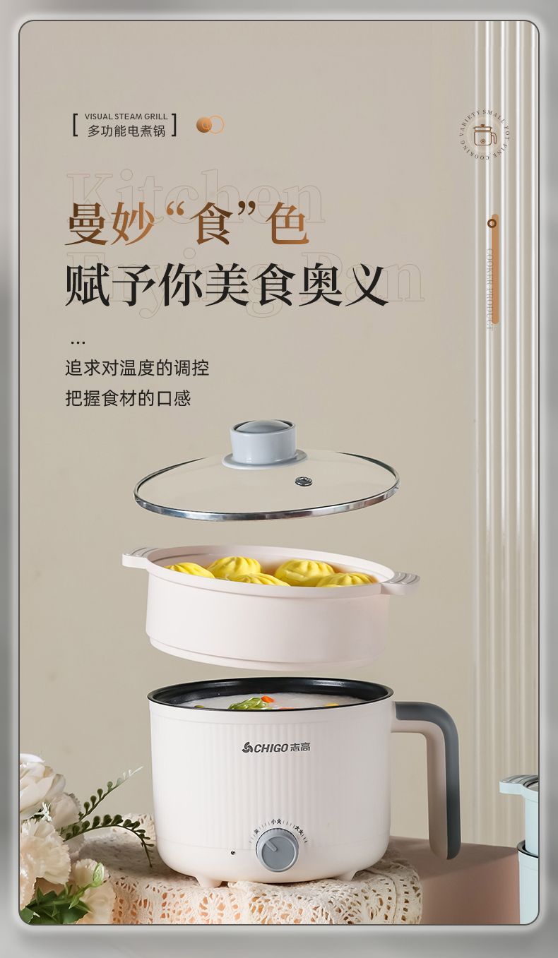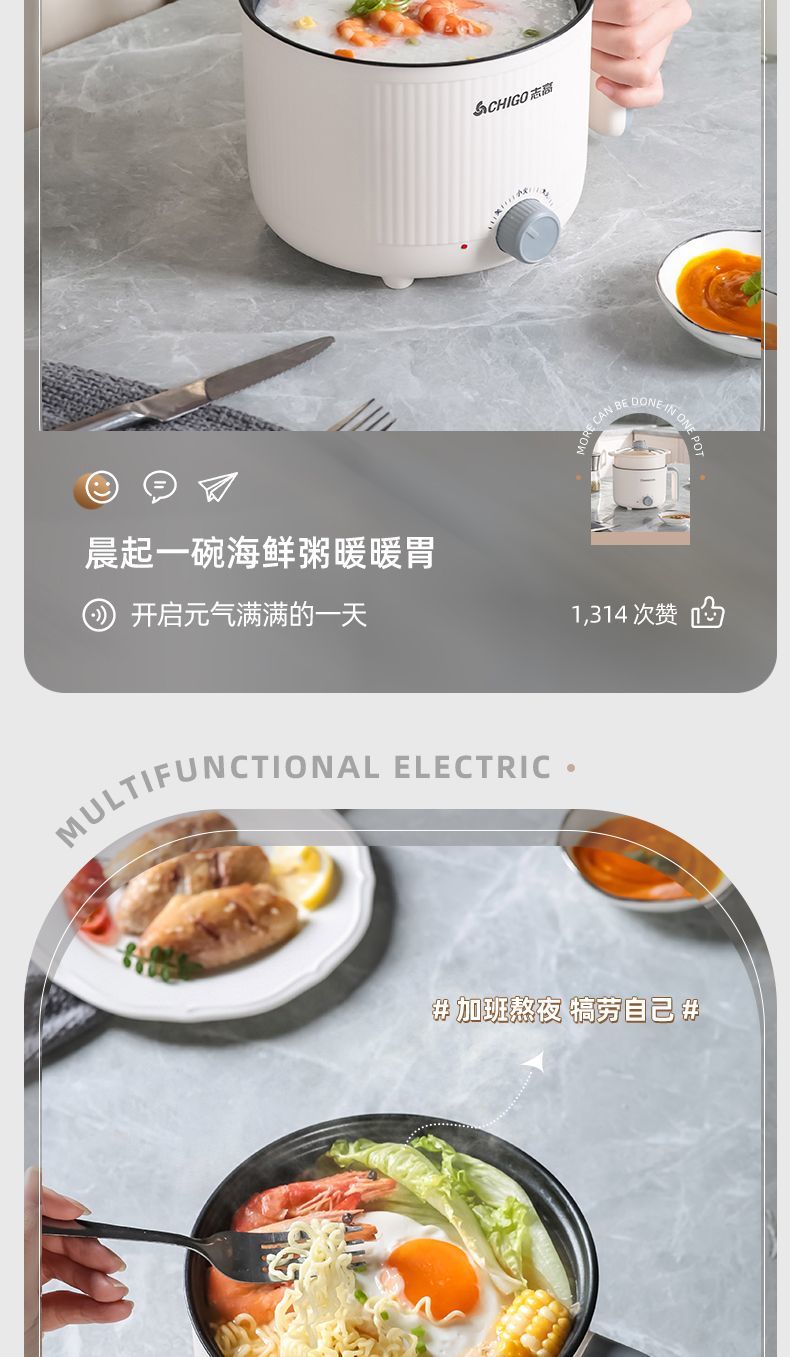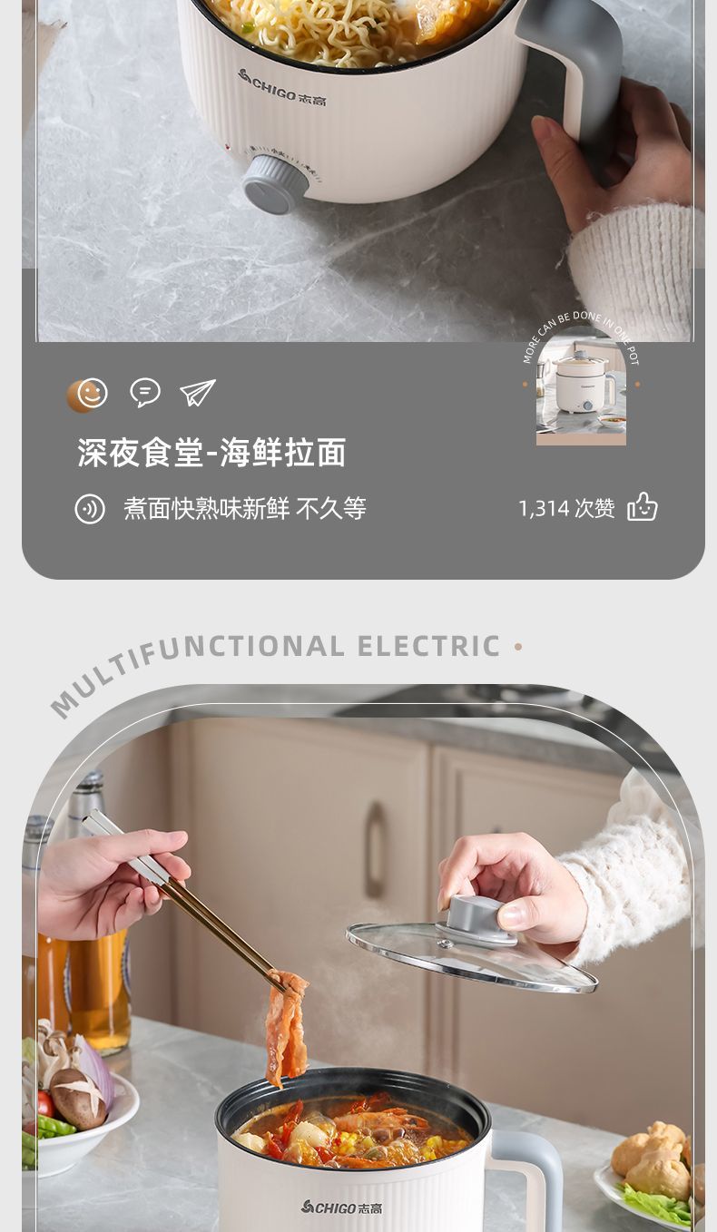 志高电煮锅学生宿舍锅家用电热火锅学生宿舍小锅泡面锅炒菜不粘锅