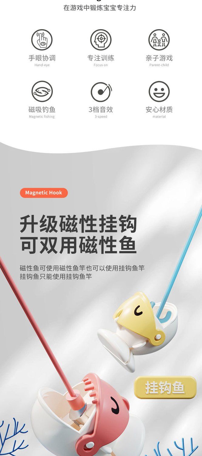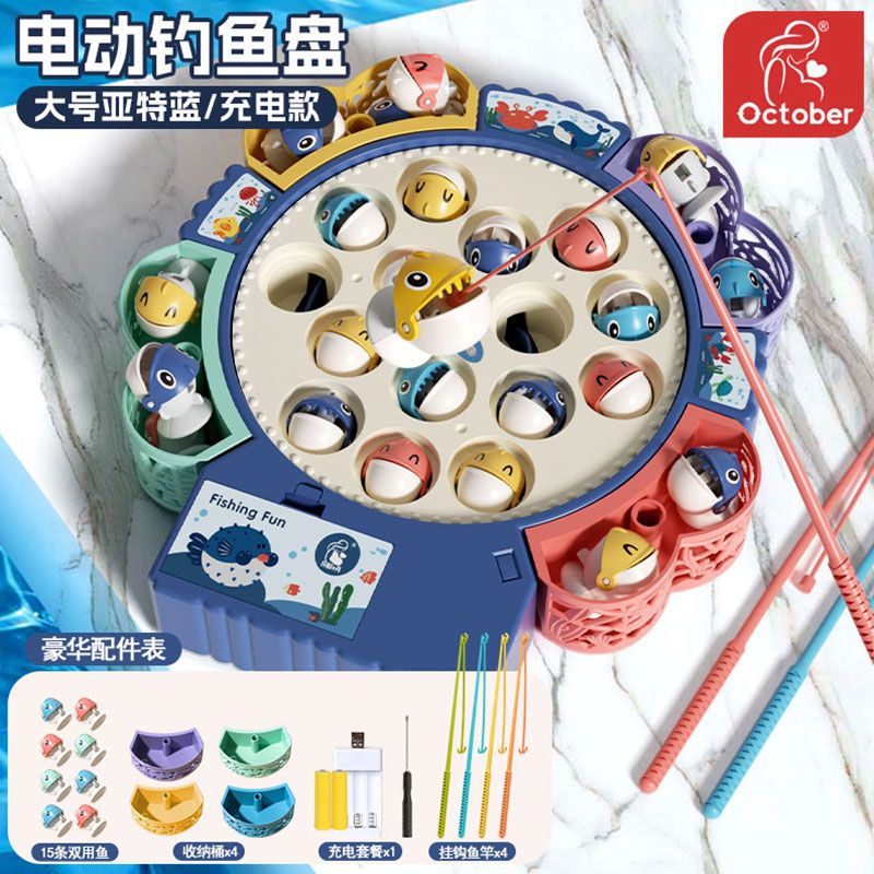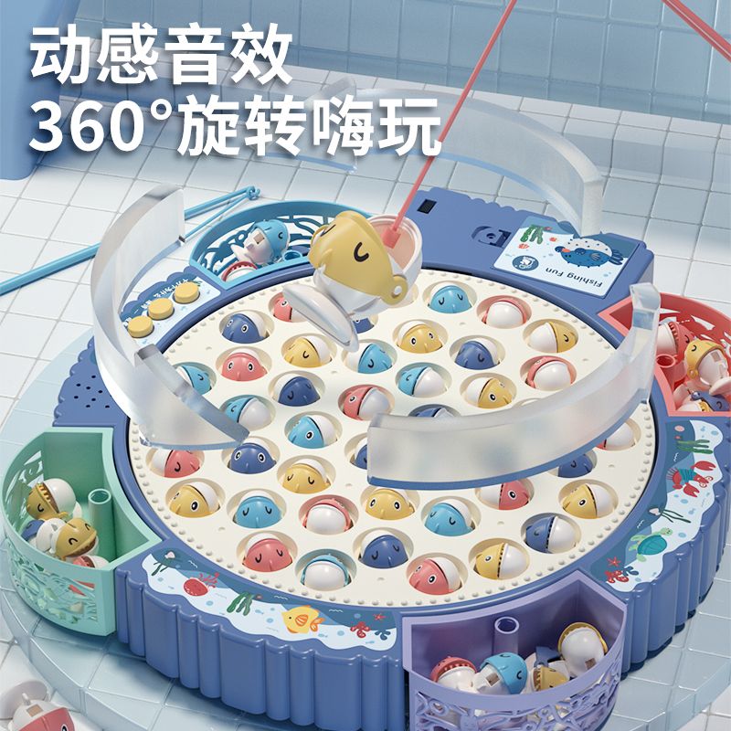 儿童电动钓鱼玩具套装磁性小孩宝宝钓鱼玩具益智智力女孩男孩1一2