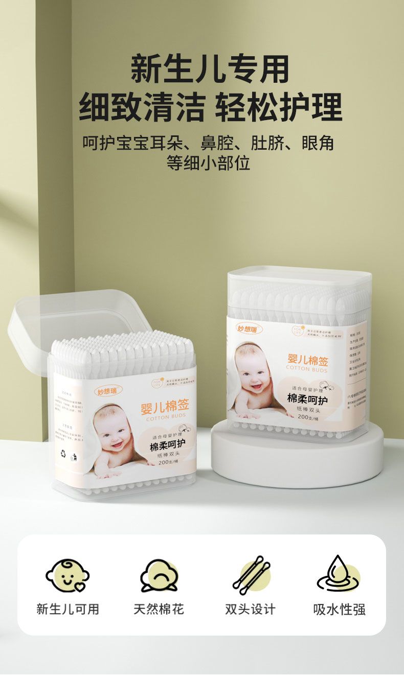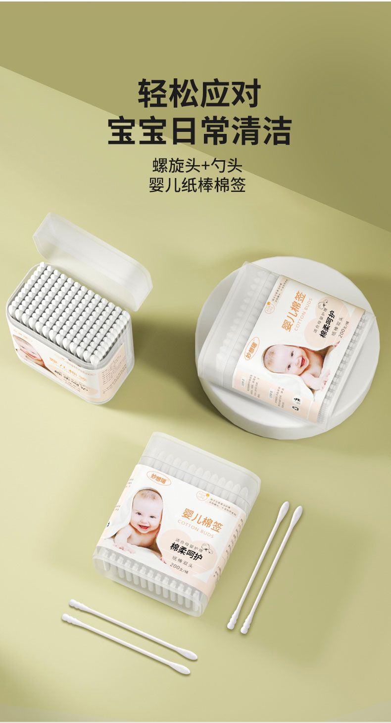 | [baby double ended cotton wwabs] 1 box, 200 pieces in total(【婴儿双头棉签】1盒共200支) | USD $5.43 | 99999 piece available |