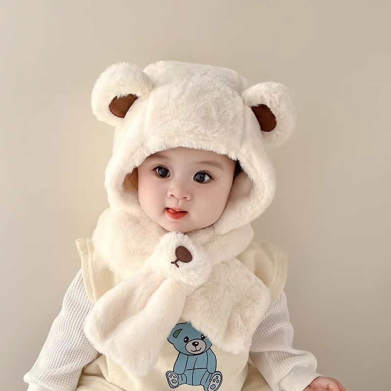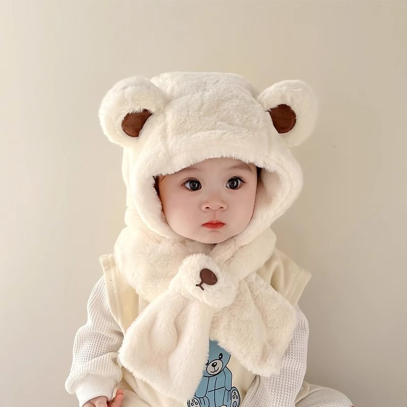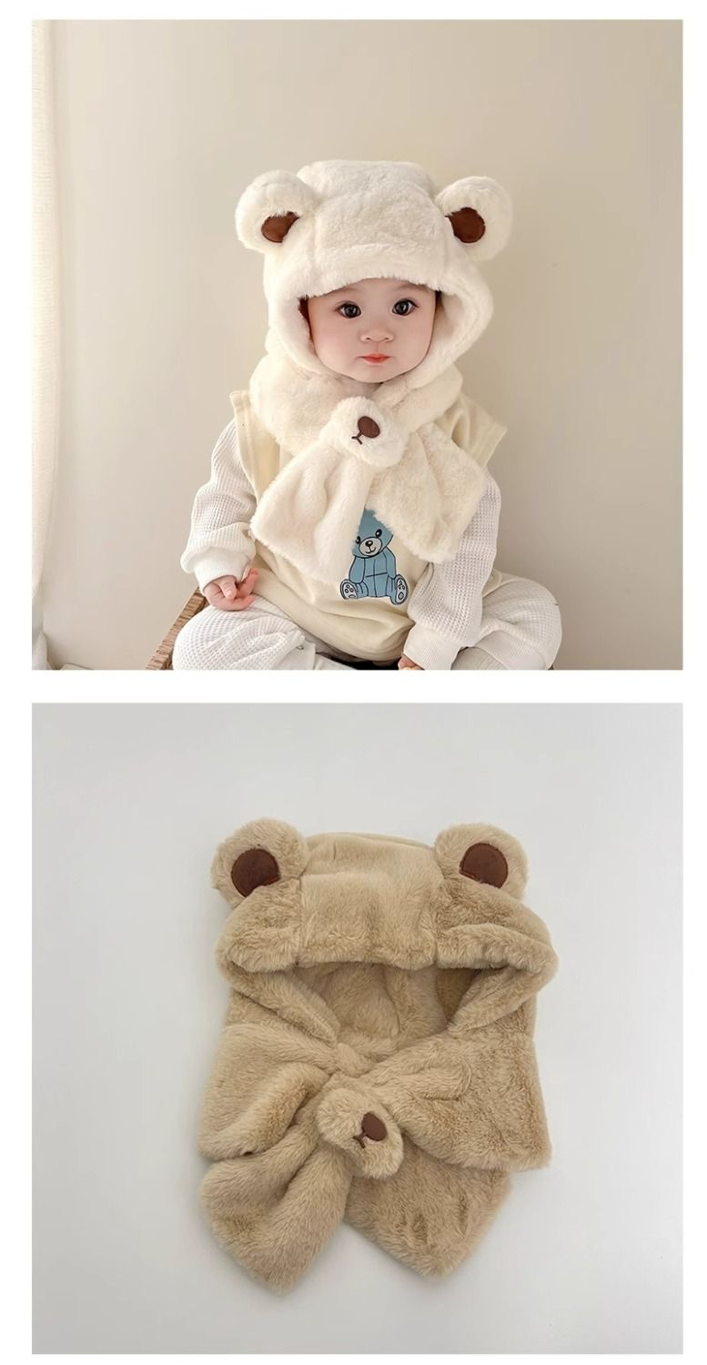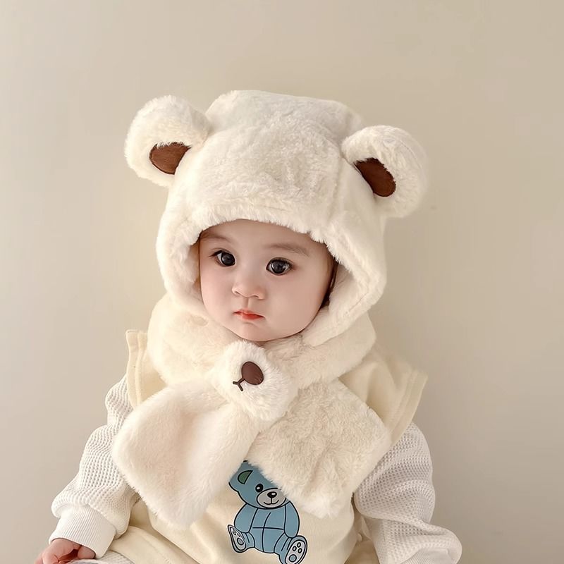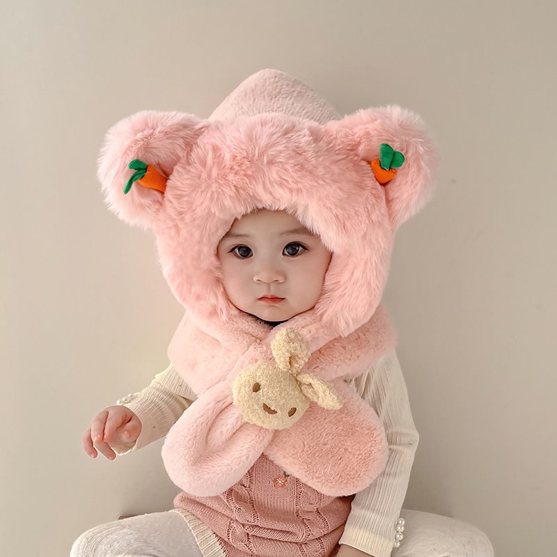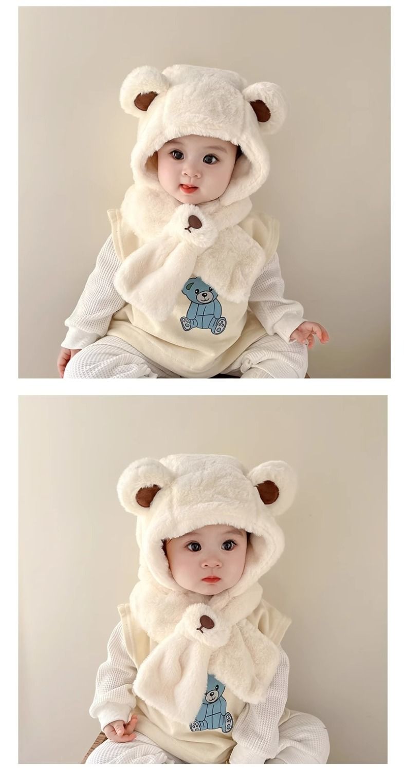 儿童帽子宝宝围巾一体秋冬季可爱超萌帽男女童加厚保暖婴儿护耳帽