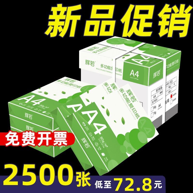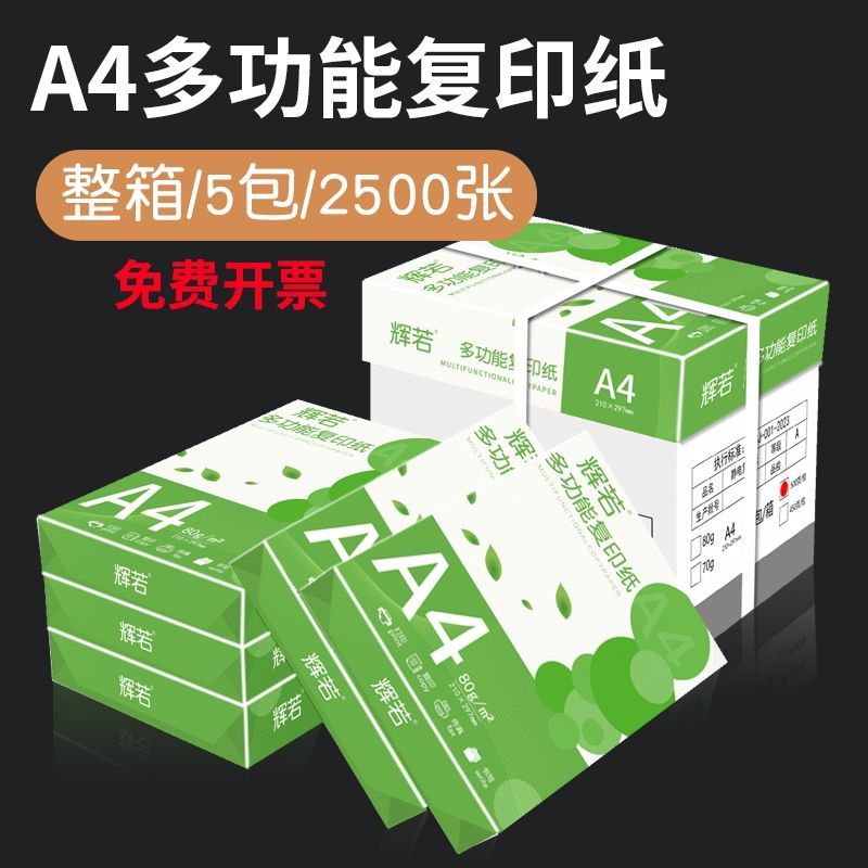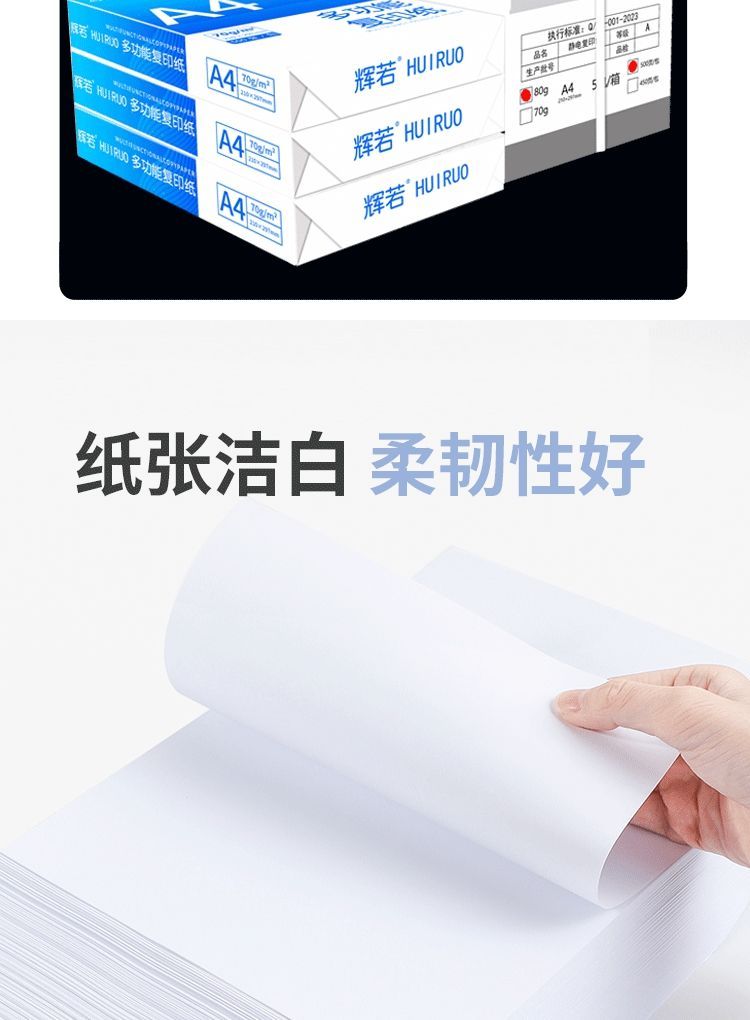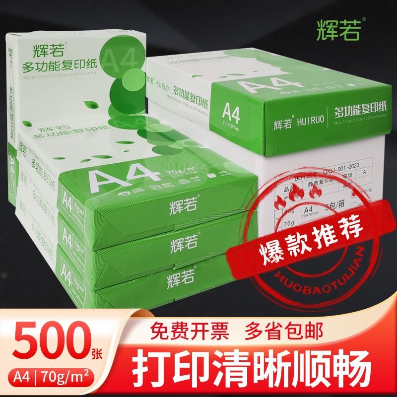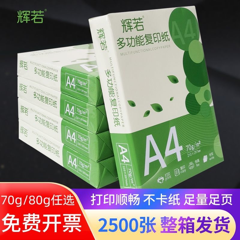 辉若a4打印纸500张草稿复印纸加厚70g学生办公用纸A4整箱批发白纸