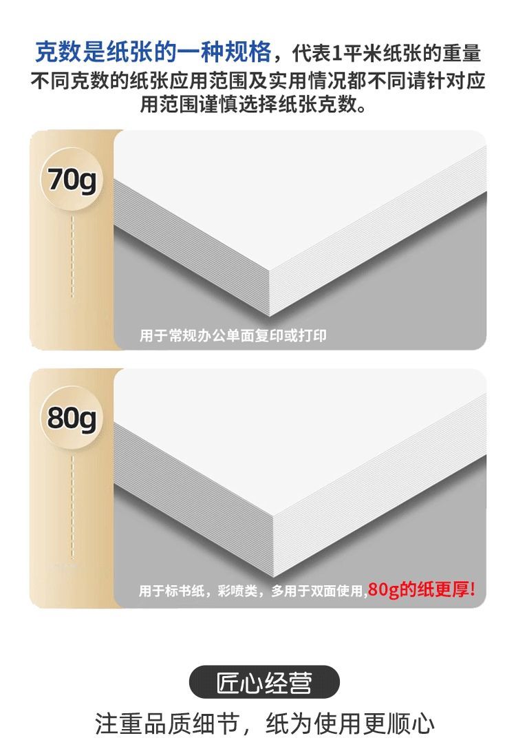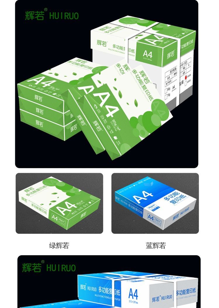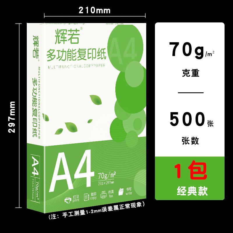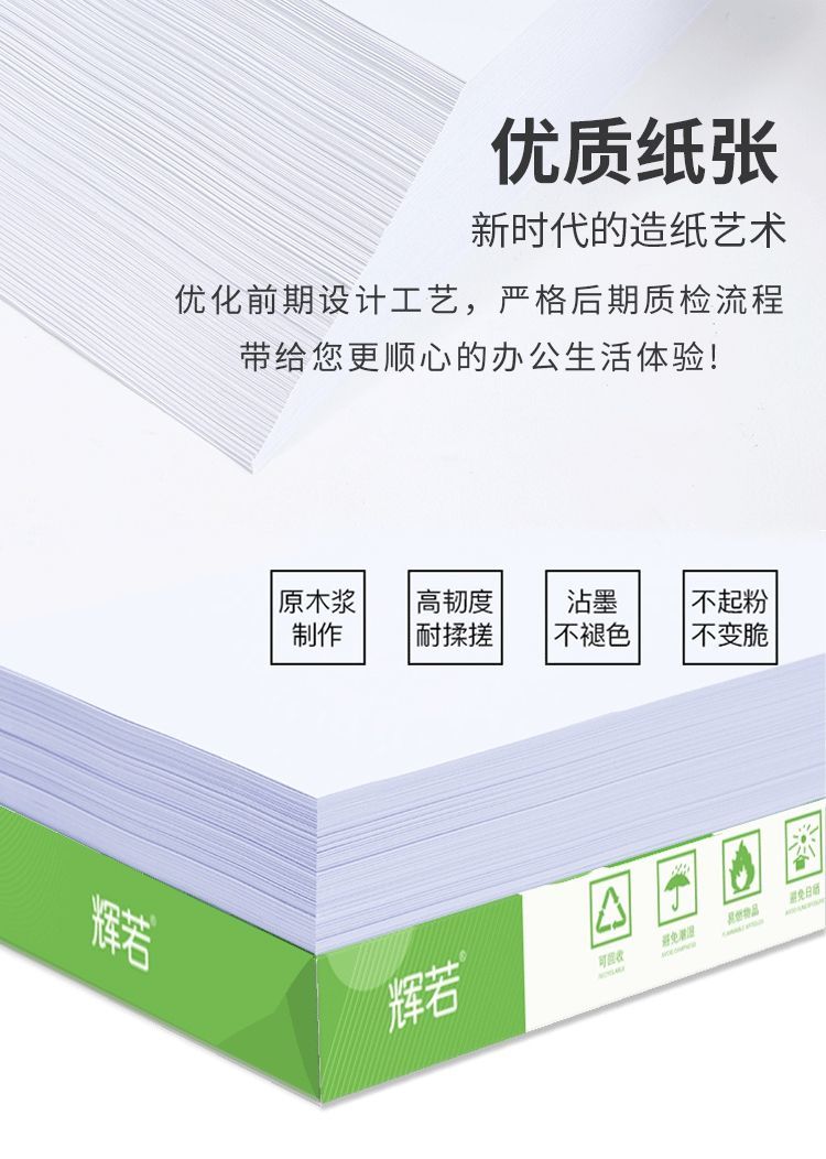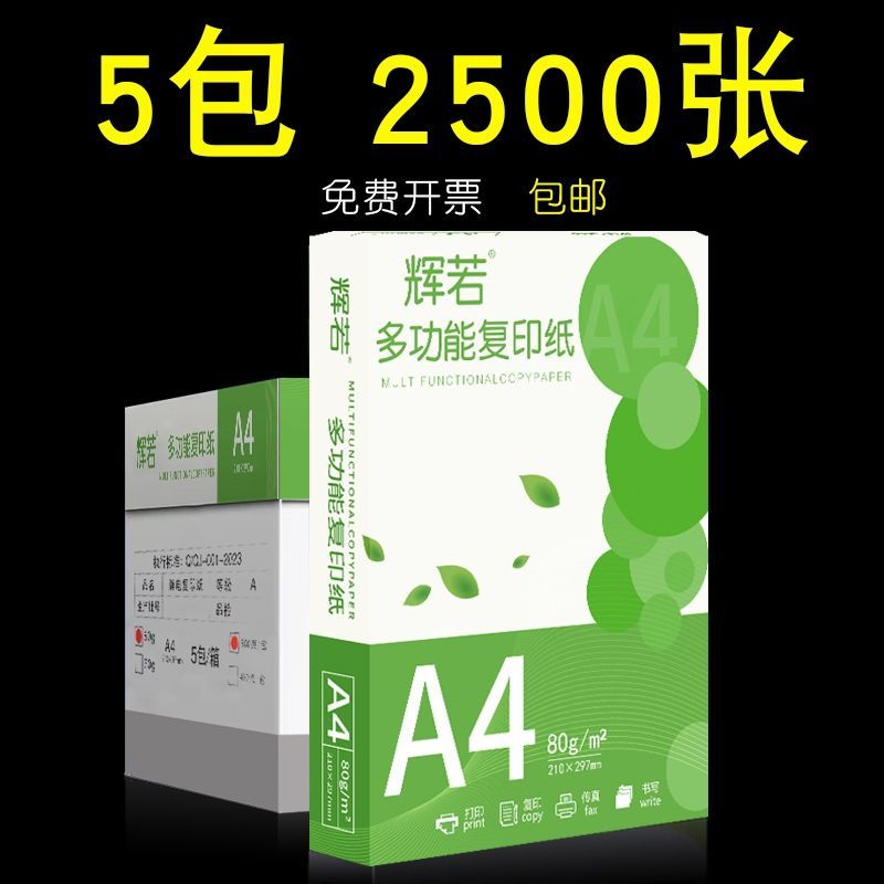 辉若a4打印纸500张草稿复印纸加厚70g学生办公用纸A4整箱批发白纸