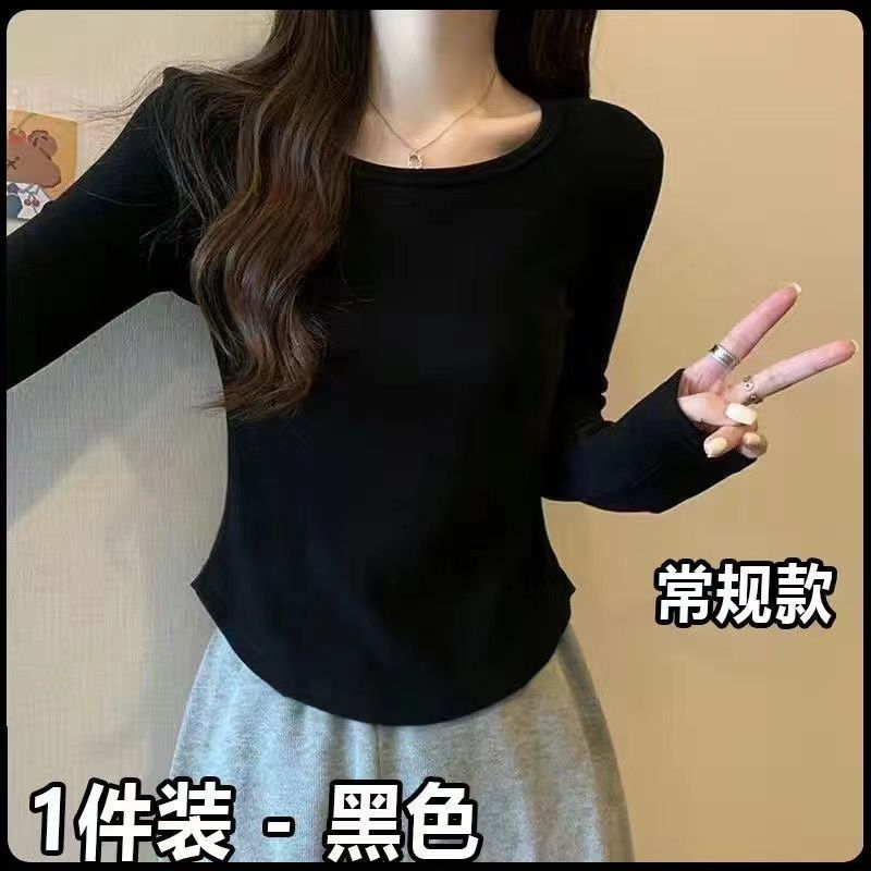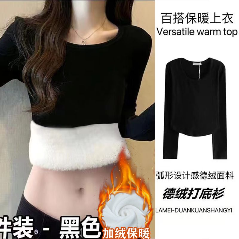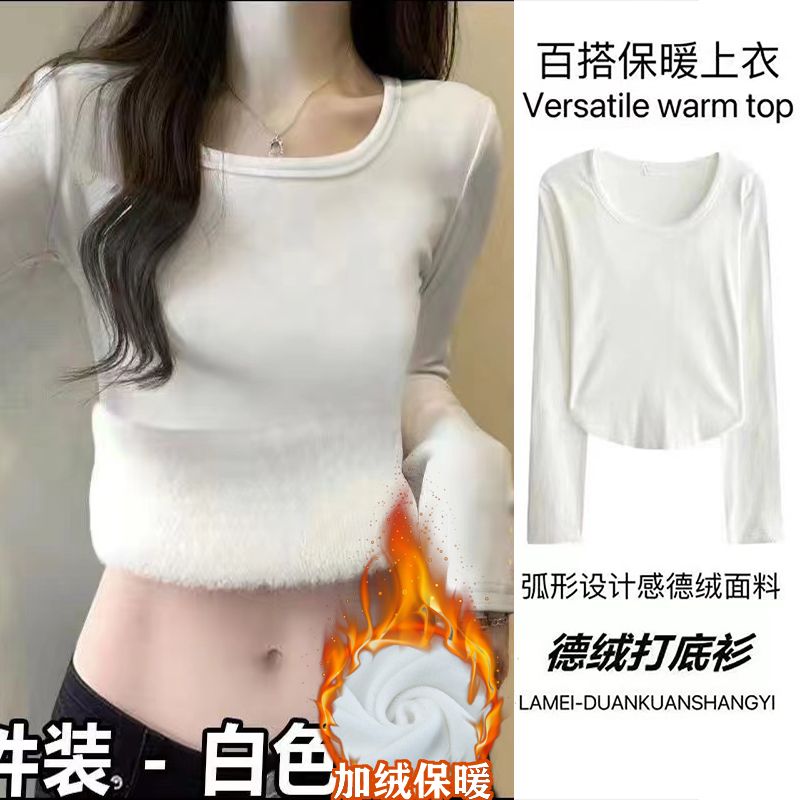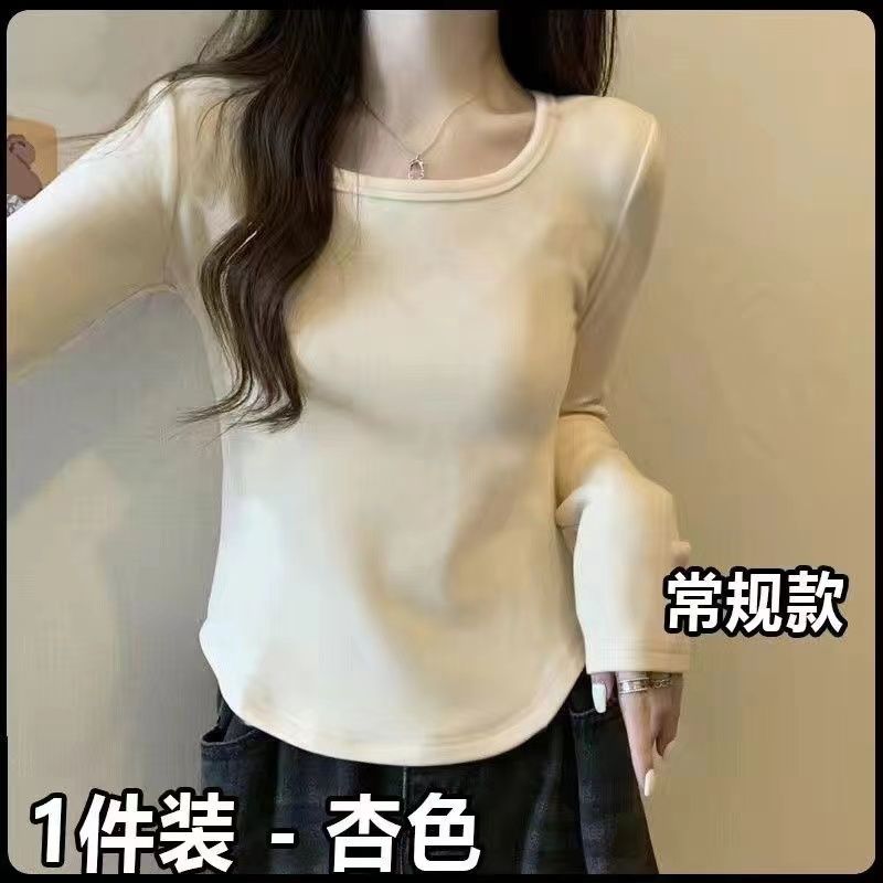 加绒加厚方领正肩长袖T恤女德绒秋冬季甜辣修身显瘦内搭保暖上衣